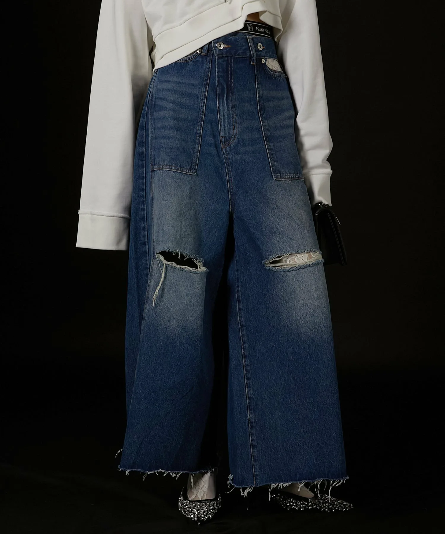 Джинсы с широким, удлиненным силуэтом.