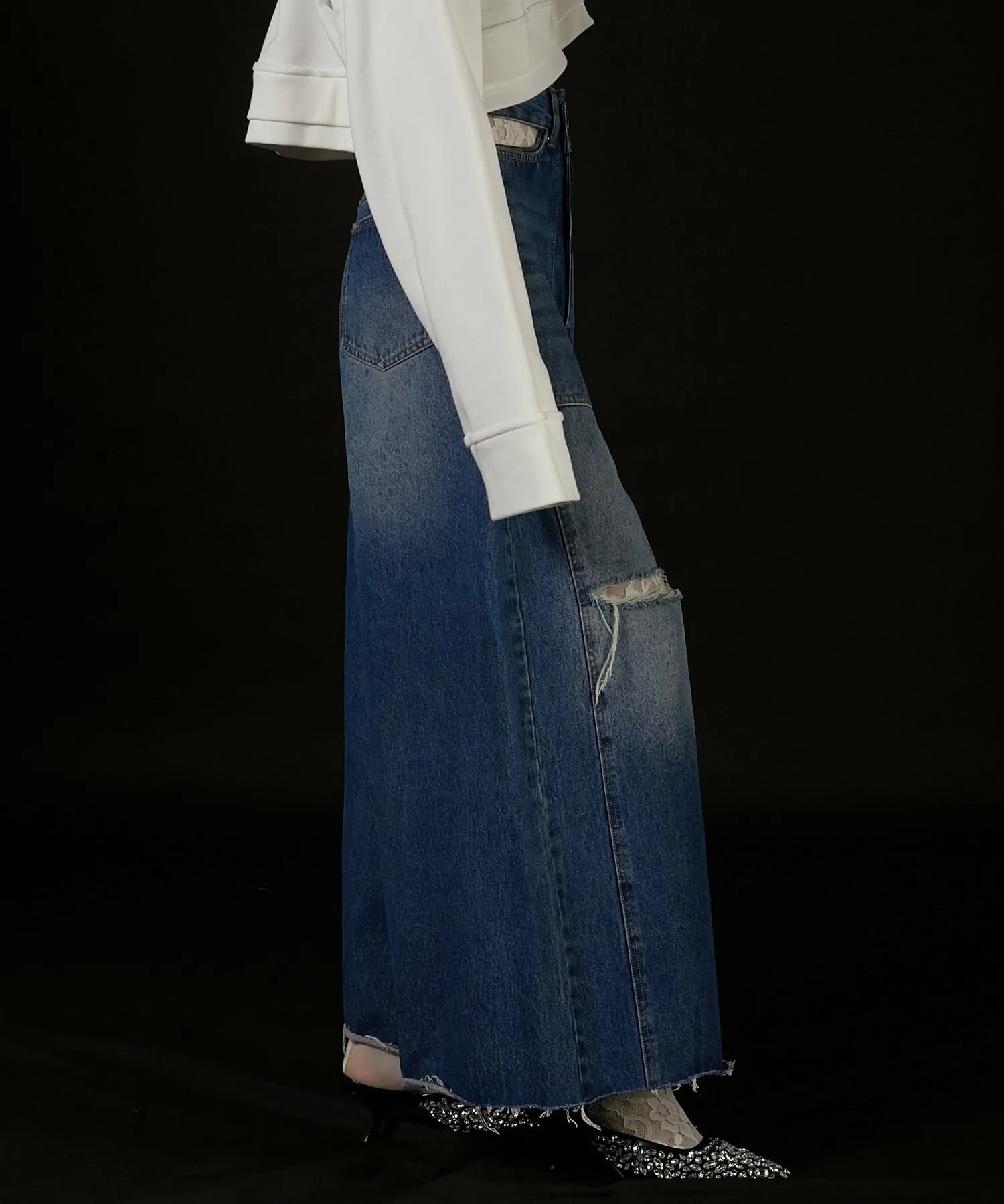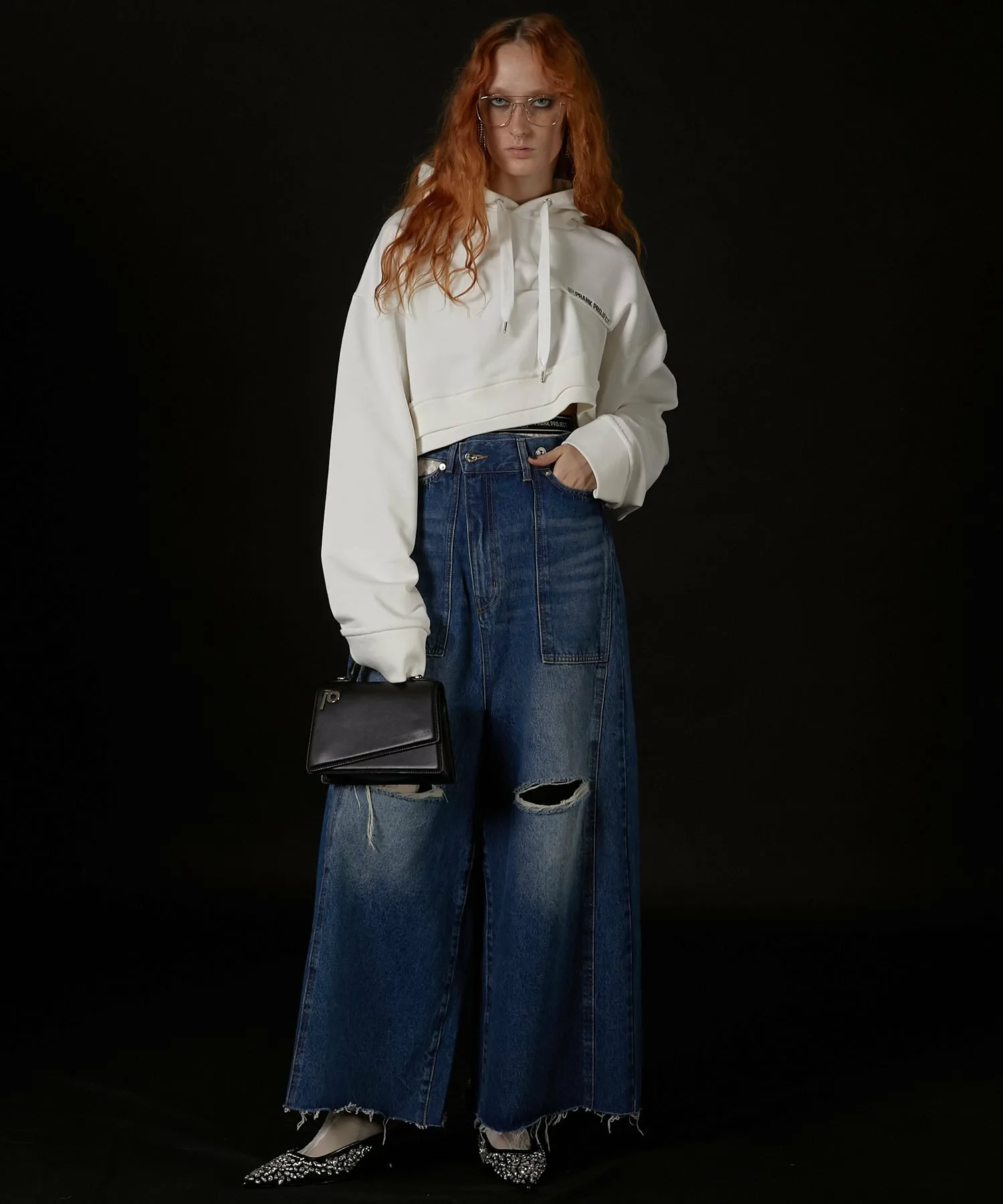 Также рекомендуем сочетать их с объемным топом для создания свободного образа или с колготками, чтобы показать разрезы на коленях.
