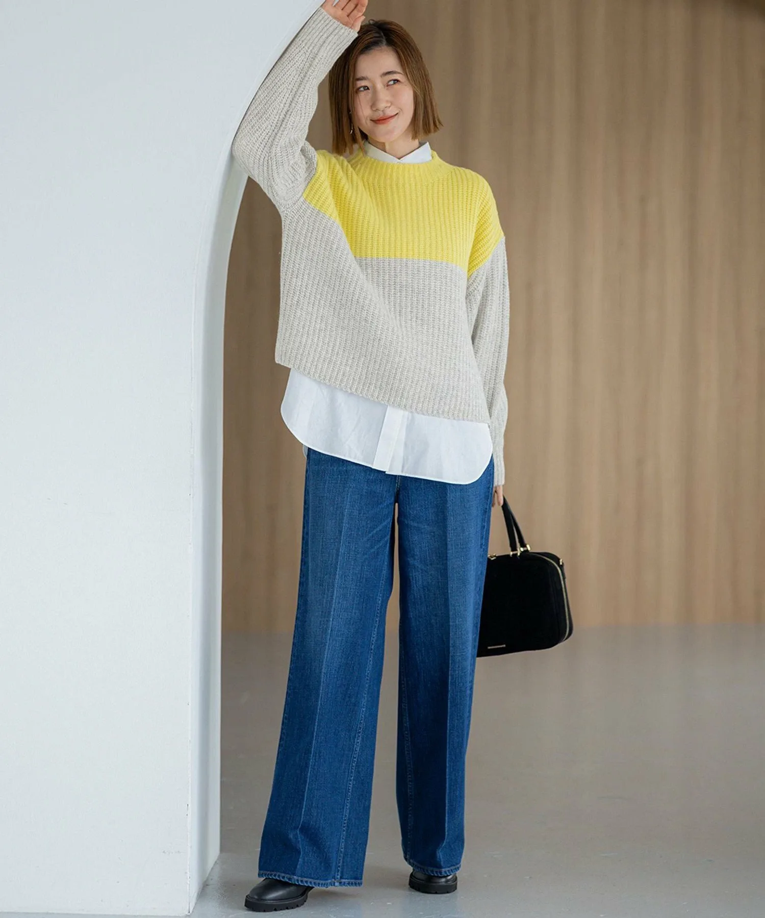 Этот пуловер выполнен из плотной, выразительной ребристой вязки и имеет изысканную цветовую схему с цветовыми блоками. Несмотря на объем, размер тщательно разработан для создания обтекаемого силуэта, подчеркивающего вашу фигуру. Высокий воротник из цельной вязки добавляет тепла и элегантности. Носите его отдельно, чтобы он стал центральным элементом вашего образа, или сочетайте с простыми брюками для создания модного образа. Эта универсальная вещь достаточно универсальна, чтобы носить ее с повседневными джинсами для повседневной носки или с элегантными брюками или юбкой для неформальных прогулок. Доступен в четырех цветах: элегантный и сдержанный светло-бежевый и темно-синий (#233), шикарный и изысканный светло-серый и средне-серый (#203), яркий и насыщенный лимонный и светло-серый (#242), а также освежающий и мягкий саксофон и бежевый (#272).