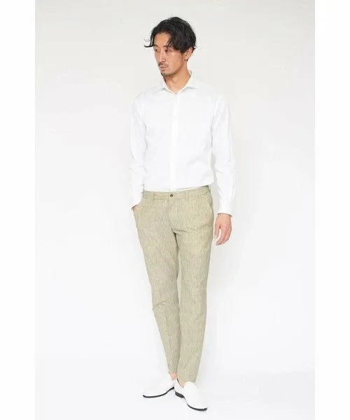 Эти удобные брюки имеют зауженный силуэт и изготовлены из функционального материала с вертикальным меланжевым принтом, что делает их универсальными как для повседневных, так и для нарядных образов.