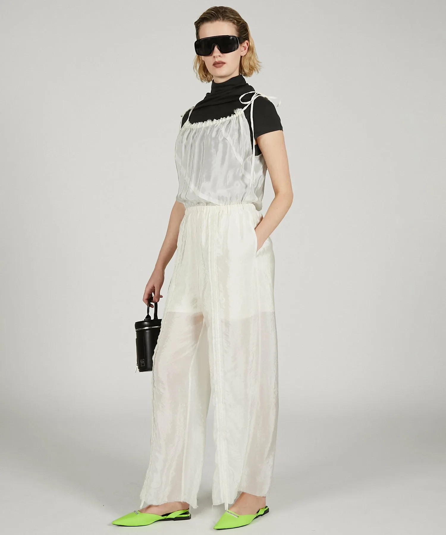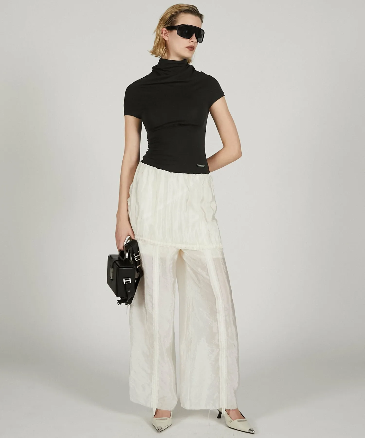 Сняв бретельки и опустив нижнюю часть, вы можете носить его как брюки поверх юбки.