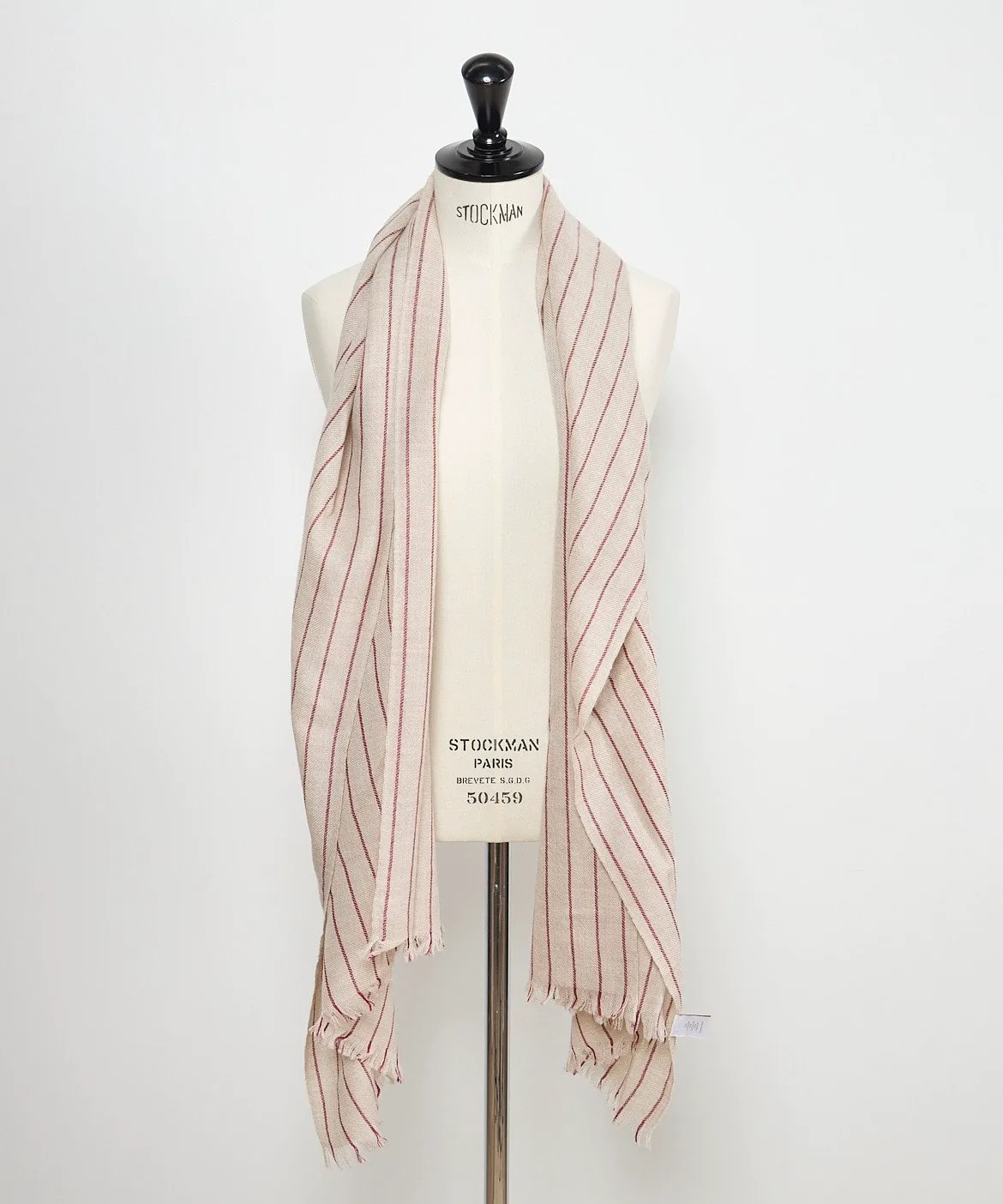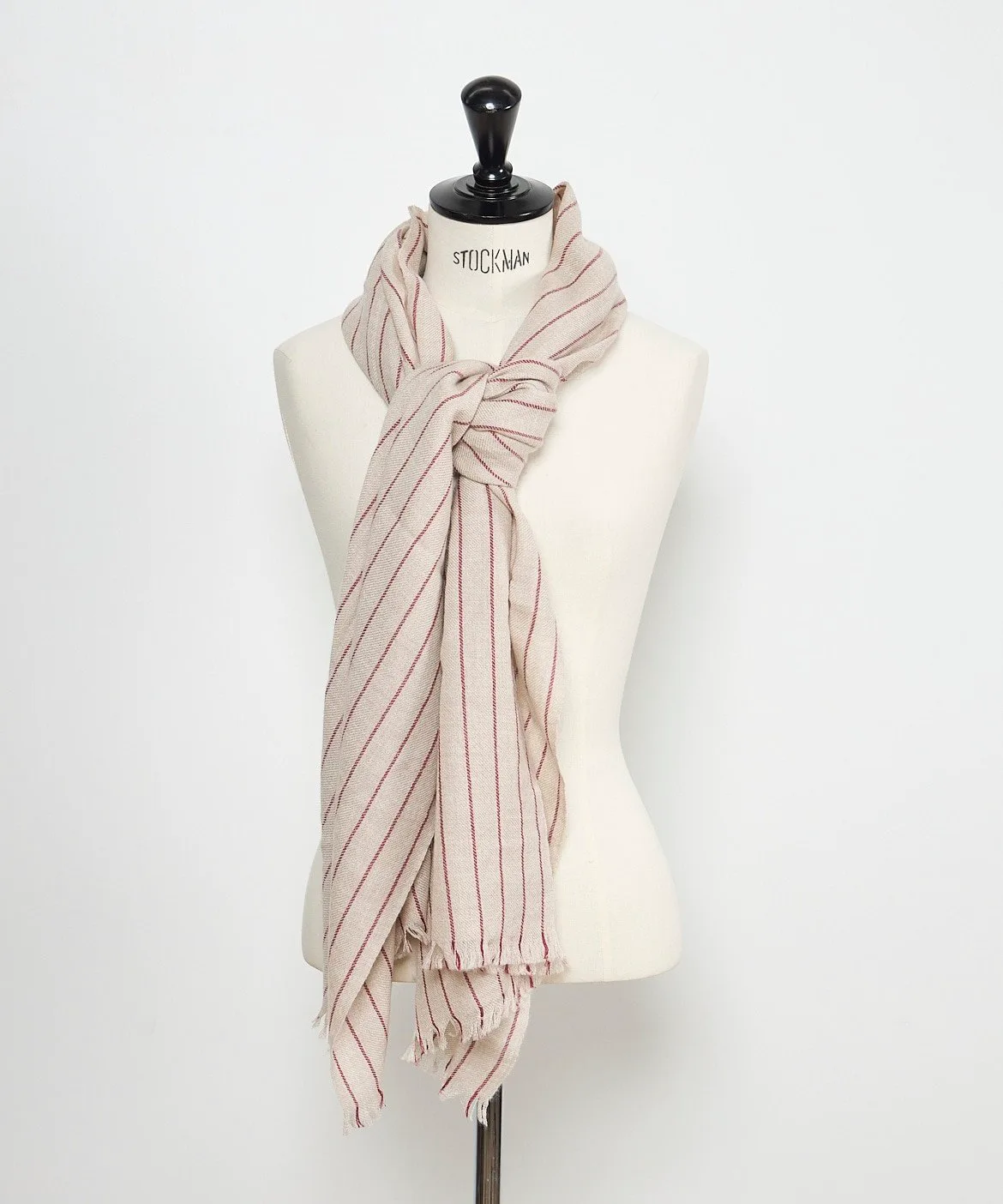 [ARCA] Натуральный палантин из итальянской льняной смеси (красная полоса)
