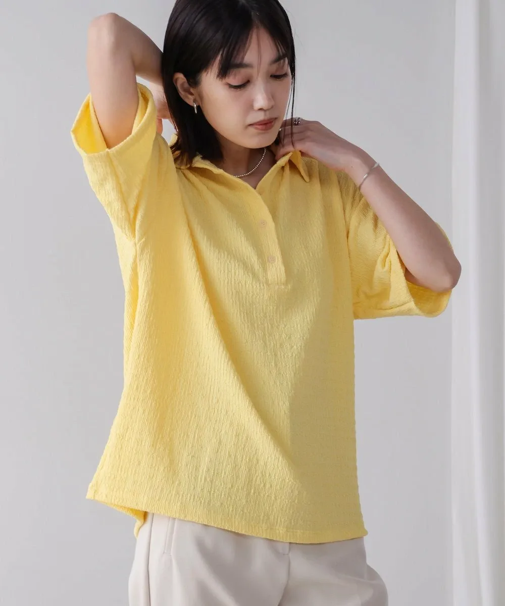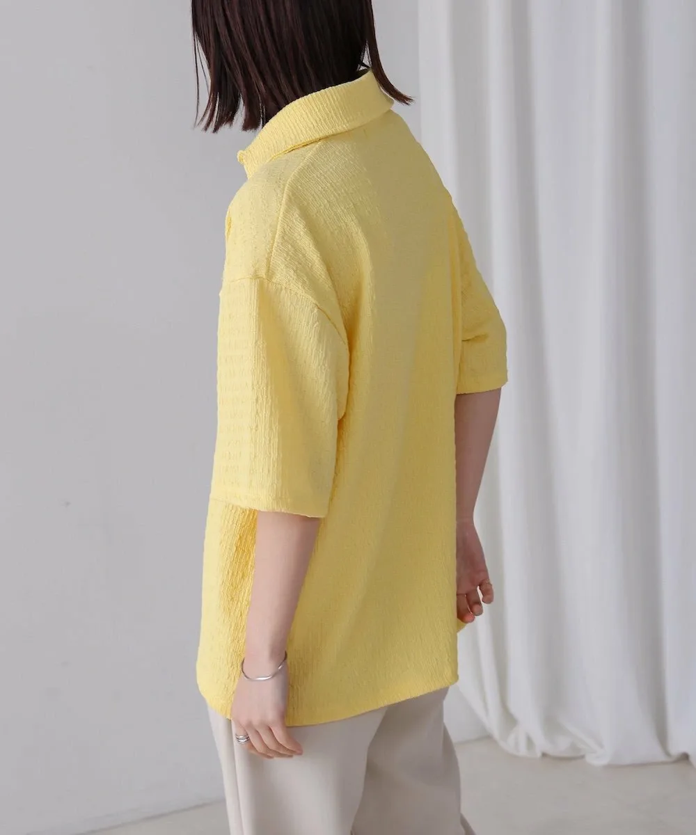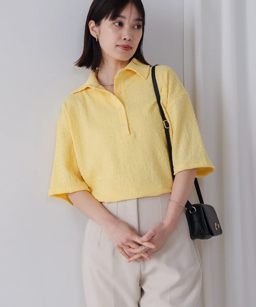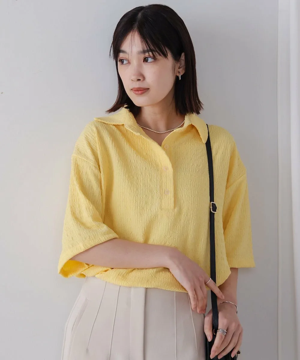 ТОЧКАПредставляем легкий и воздушный топ, создающий освежающий образ. Трехмерная ткань придает ему слегка богатый вид. Воротник-стойка обеспечивает превосходный баланс между формальностью и повседневностью. Яркие и освежающие цвета делают его идеальным как для того, чтобы стать центральным элементом образа, так и в качестве акцентного цвета. Более того, свободный силуэт мягко скрывает линии вашей фигуры.