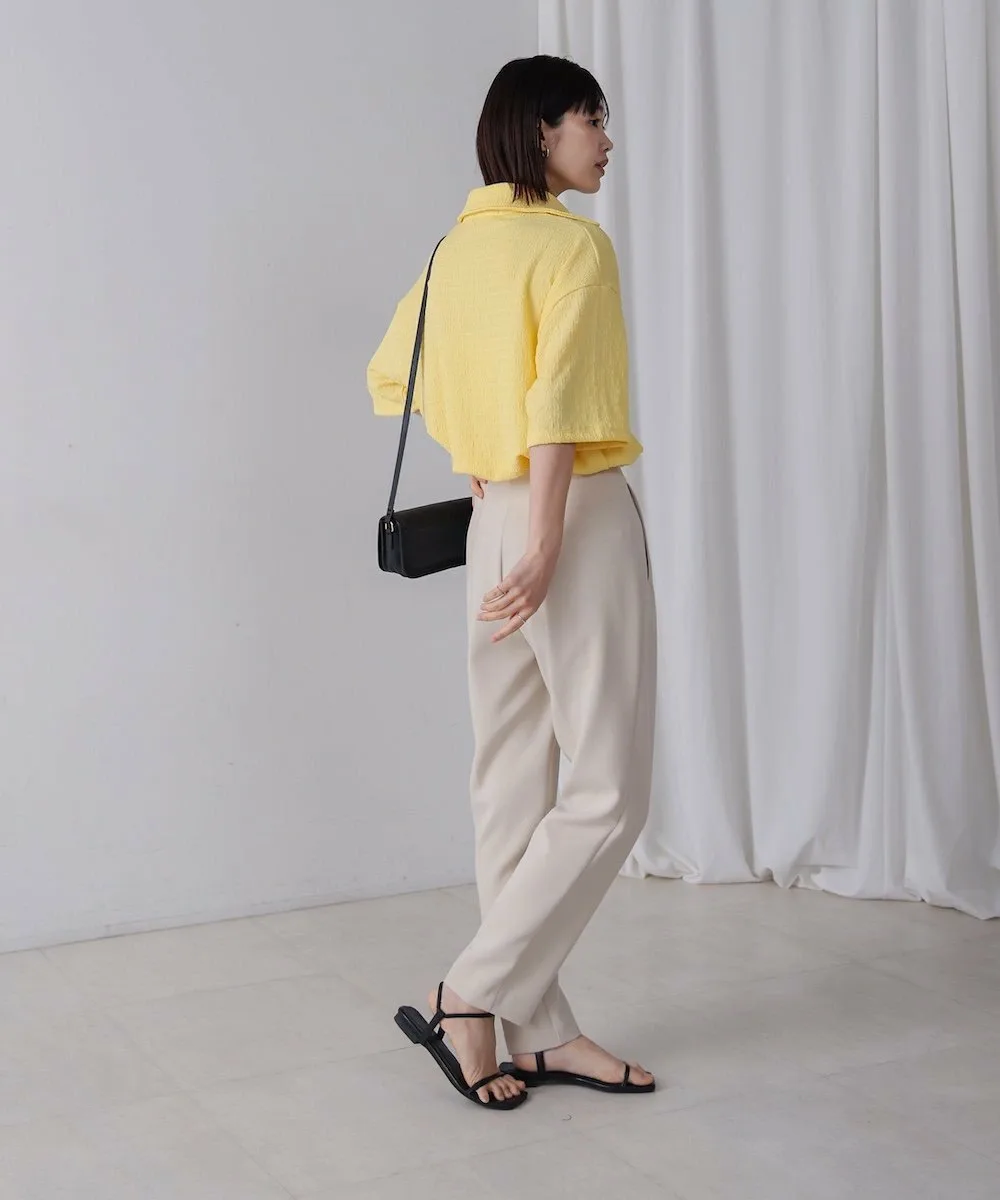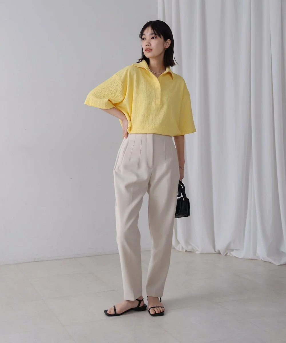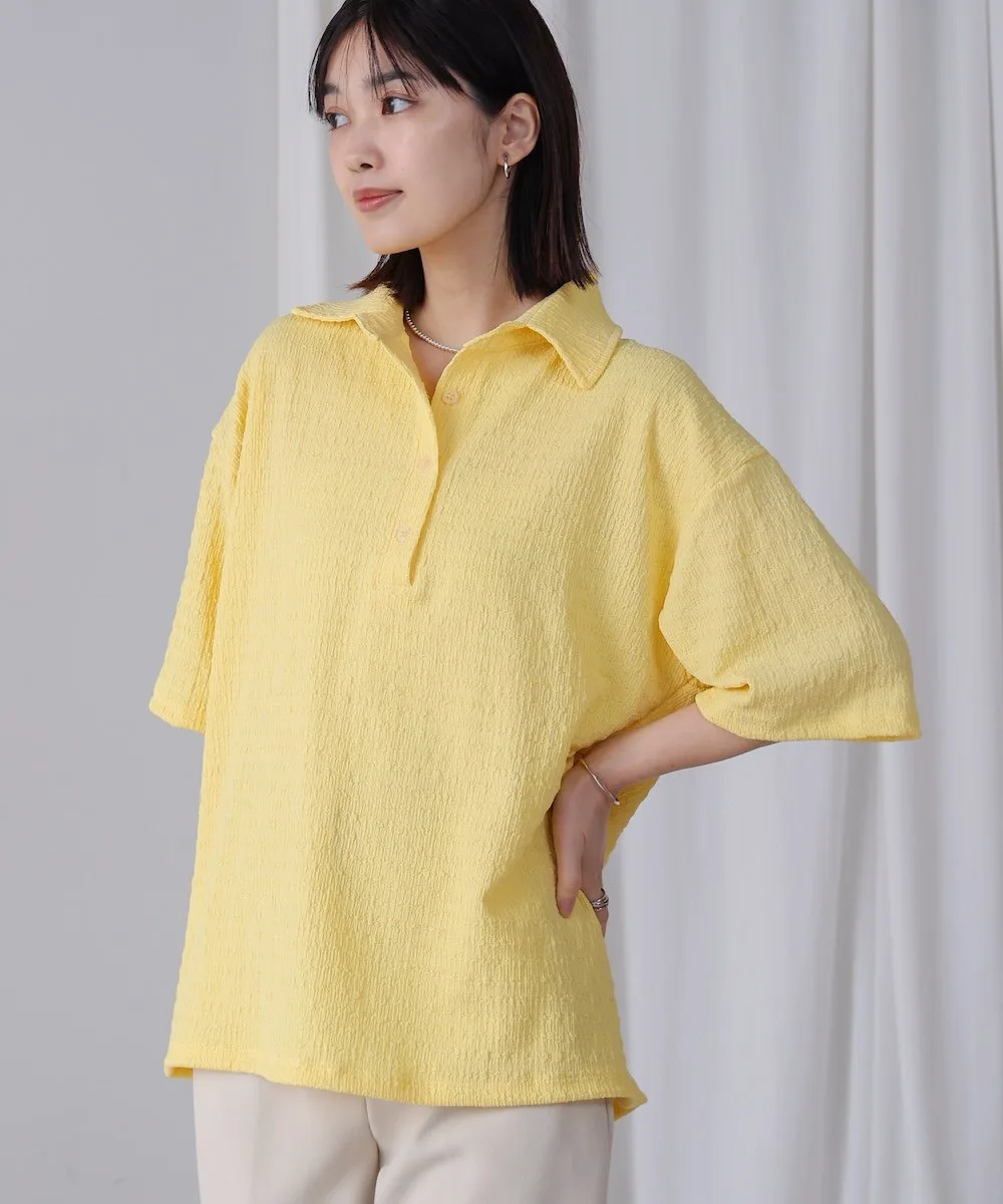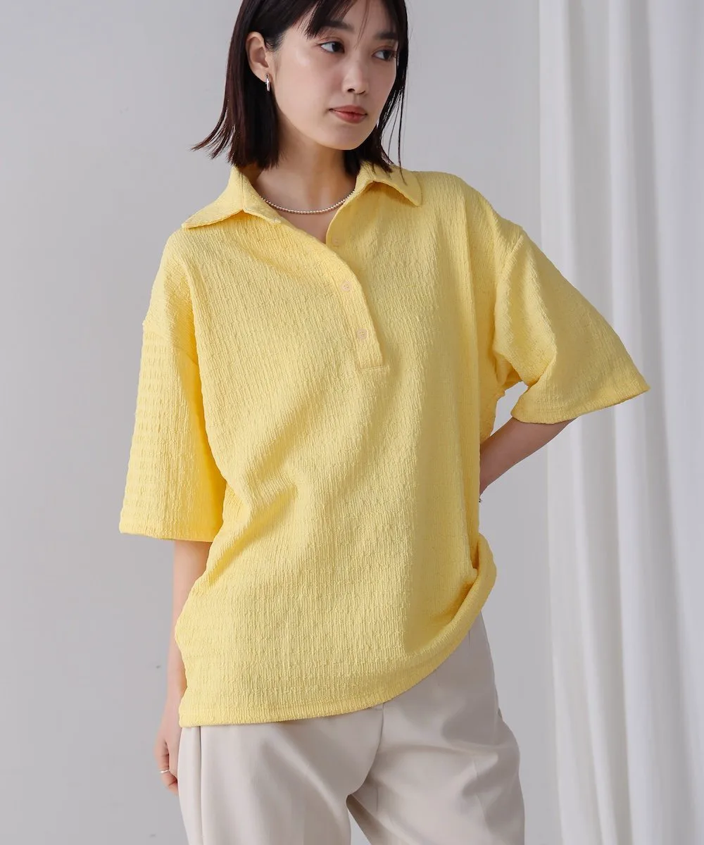 ТОЧКАПредставляем легкий и воздушный топ, создающий освежающий образ. Трехмерная ткань придает ему слегка богатый вид. Воротник-стойка обеспечивает превосходный баланс между формальностью и повседневностью. Яркие и освежающие цвета делают его идеальным как для того, чтобы стать центральным элементом образа, так и в качестве акцентного цвета. Более того, свободный силуэт мягко скрывает линии вашей фигуры.