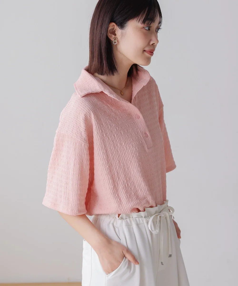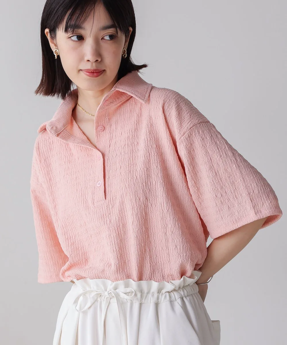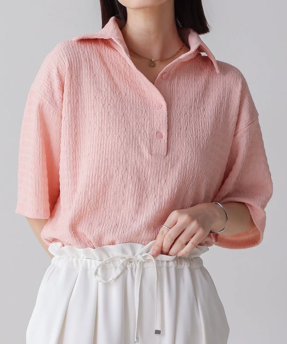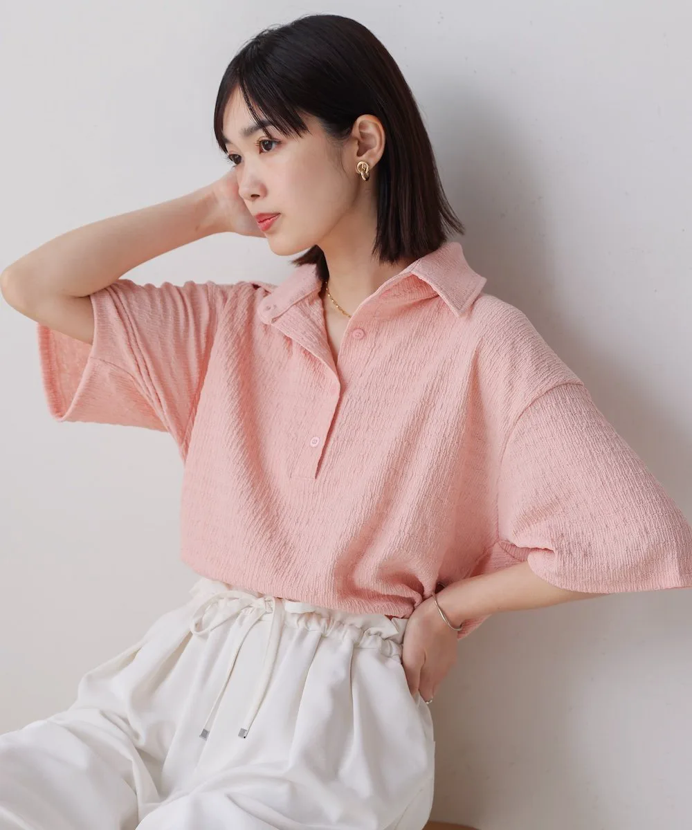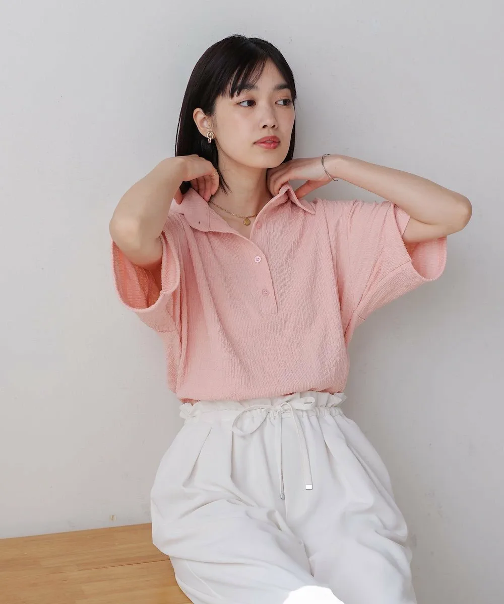 ТОЧКАПредставляем легкий и воздушный топ, создающий освежающий образ. Трехмерная ткань придает ему слегка богатый вид. Воротник-стойка обеспечивает превосходный баланс между формальностью и повседневностью. Яркие и освежающие цвета делают его идеальным как для того, чтобы стать центральным элементом образа, так и в качестве акцентного цвета. Более того, свободный силуэт мягко скрывает линии вашей фигуры.
