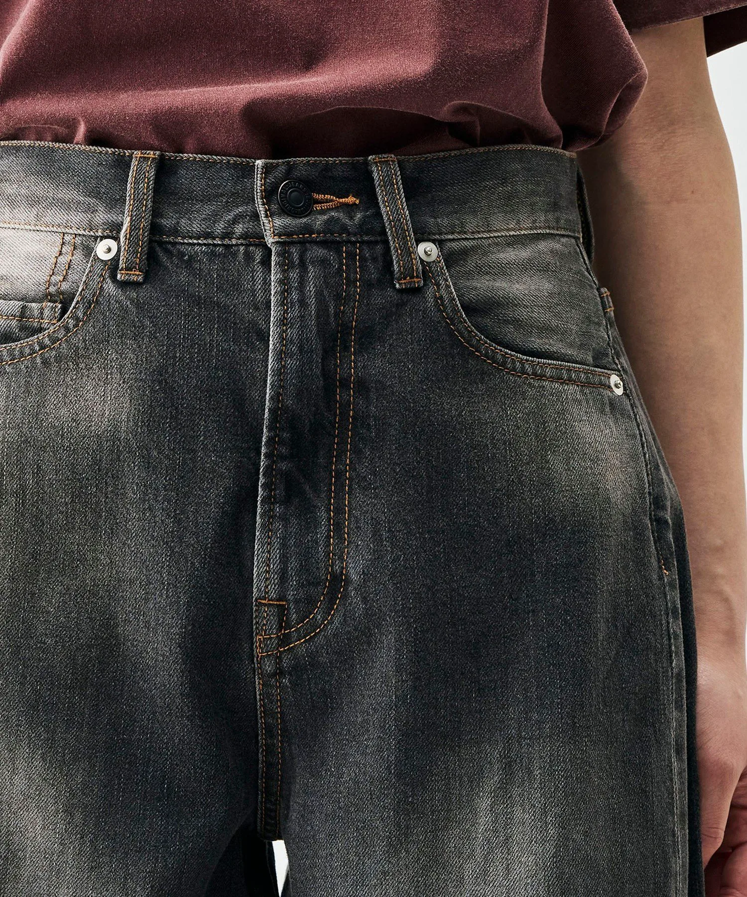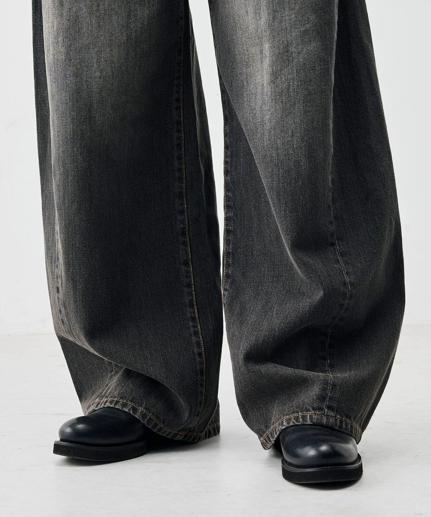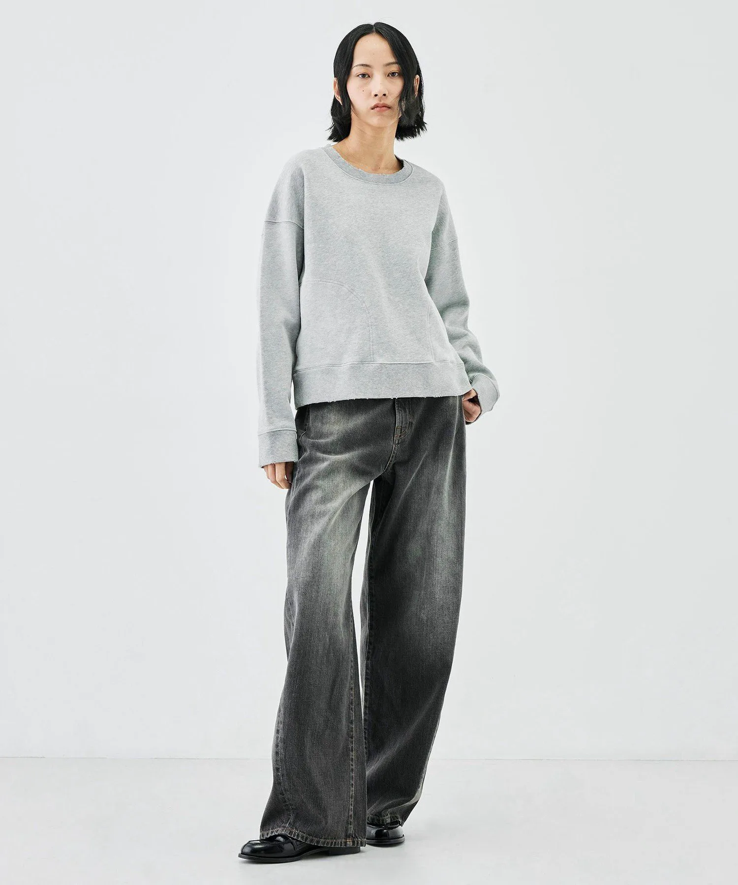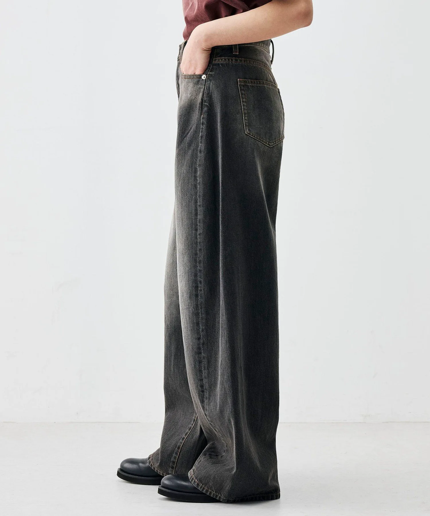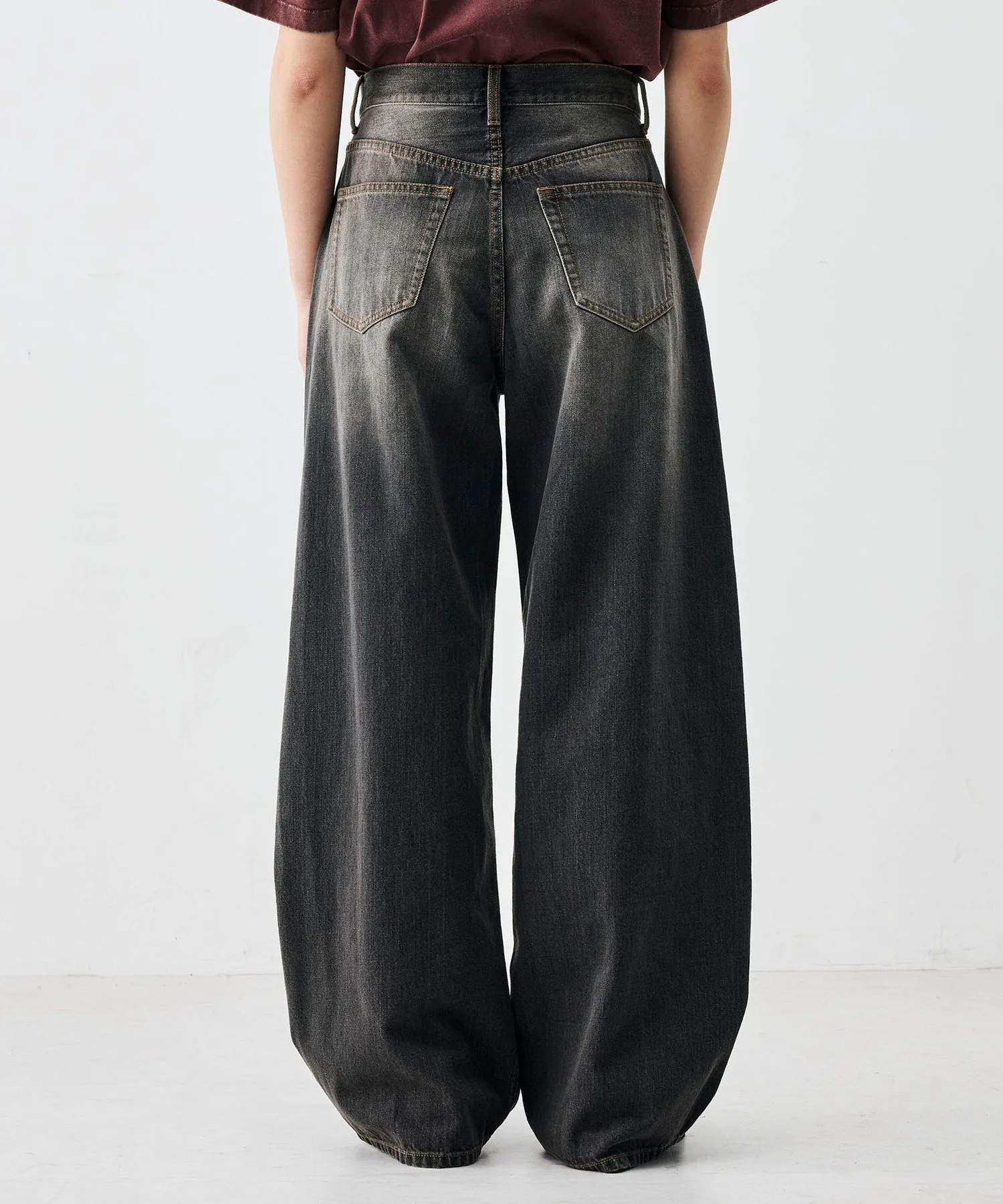 Эти брюки изготовлены из черного денима плотностью 12 унций от производителя из Окаямы. Хлопковые волокна, используемые в дениме, плотно скручены, что обеспечивает тонкое и гладкое плетение. Они также обладают отличной устойчивостью к растяжению и провисанию в области колен. Силуэт «баллон» создает обтекаемую посадку в области бедер, а нижний край остается привлекательным, создавая модный образ. Изгиб и легкая драпировка создают эффектный вид, формируя современный образ, подходящий для всех типов фигуры. Чтобы подтвердить цвет изделия, пожалуйста, посмотрите на само изделие или на увеличенное изображение материала. Это изделие из коллекции весна-лето 2026. При обращении в магазин, пожалуйста, укажите номер изделия, указанный ниже. Номер изделия: 34-04-61-04202 Инструкции по уходу: Из-за особенностей материала возможно перенос цвета.