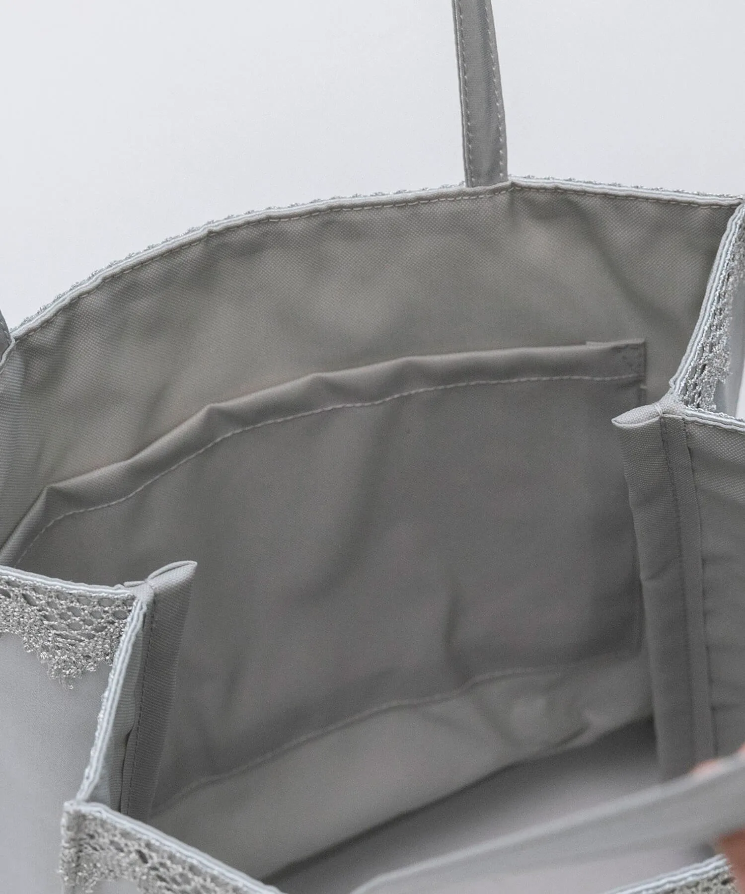 Сумка-тоут, украшенная изысканным кружевным мотивом. Она элегантна и подходит для торжественных случаев. *Обратите внимание, что кружевной узор отличается в черном, серебряном и золотом вариантах.