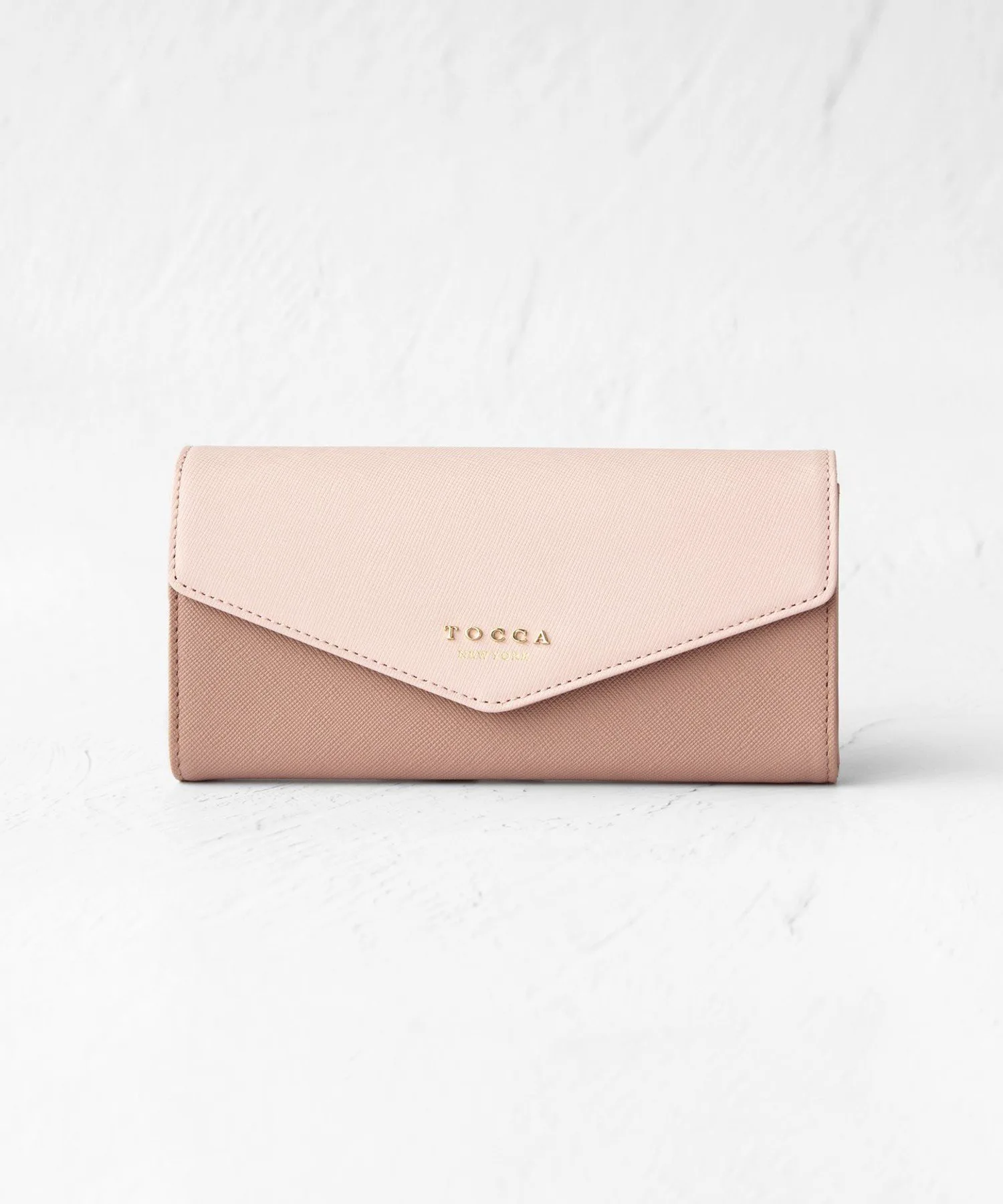 Этот длинный кошелек отличается современными и роскошными деталями TOCCA, такими как клапан с металлическим логотипом и цветовые блоки.