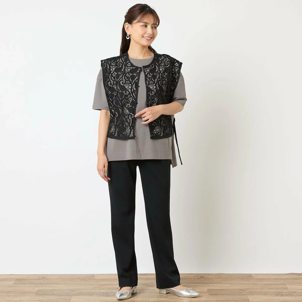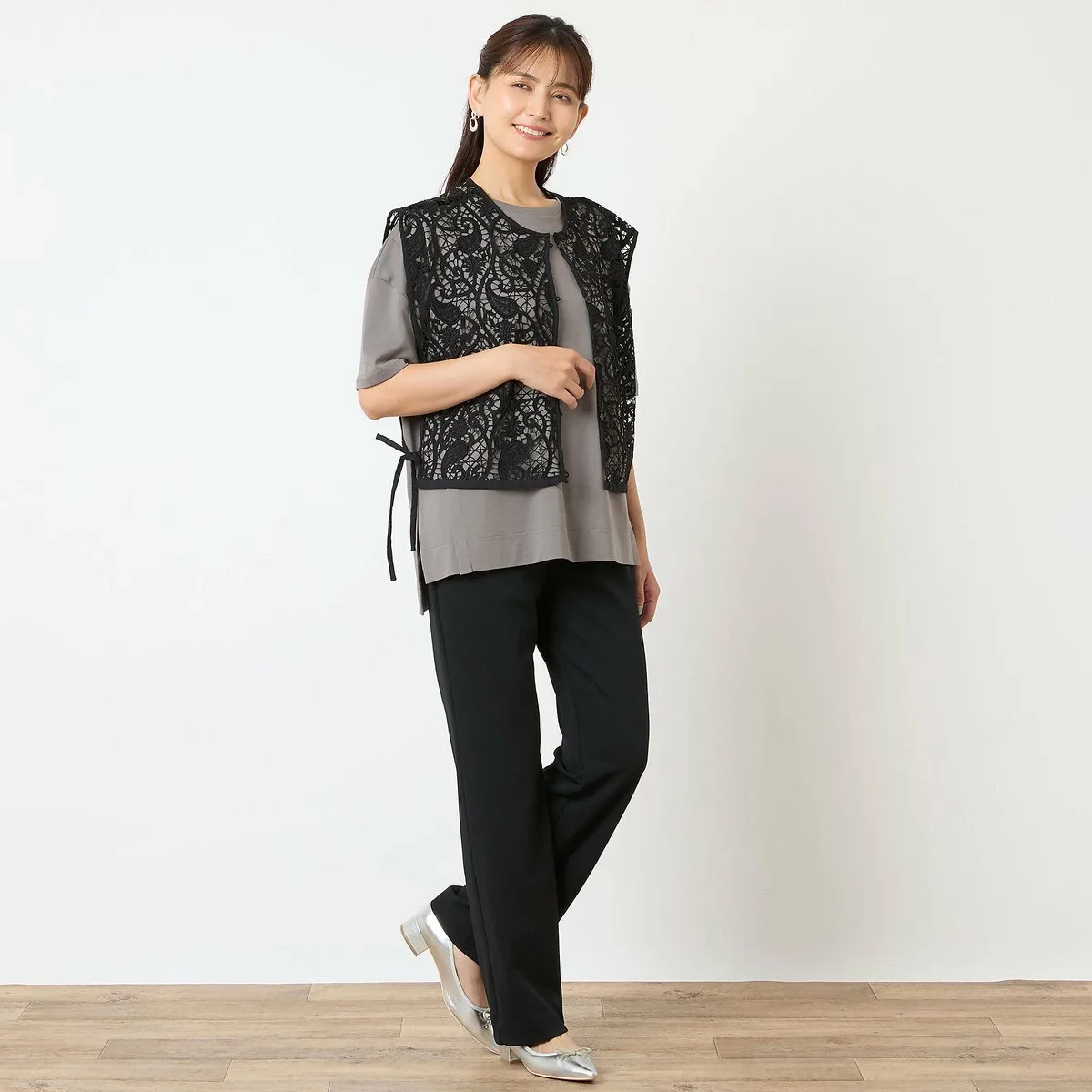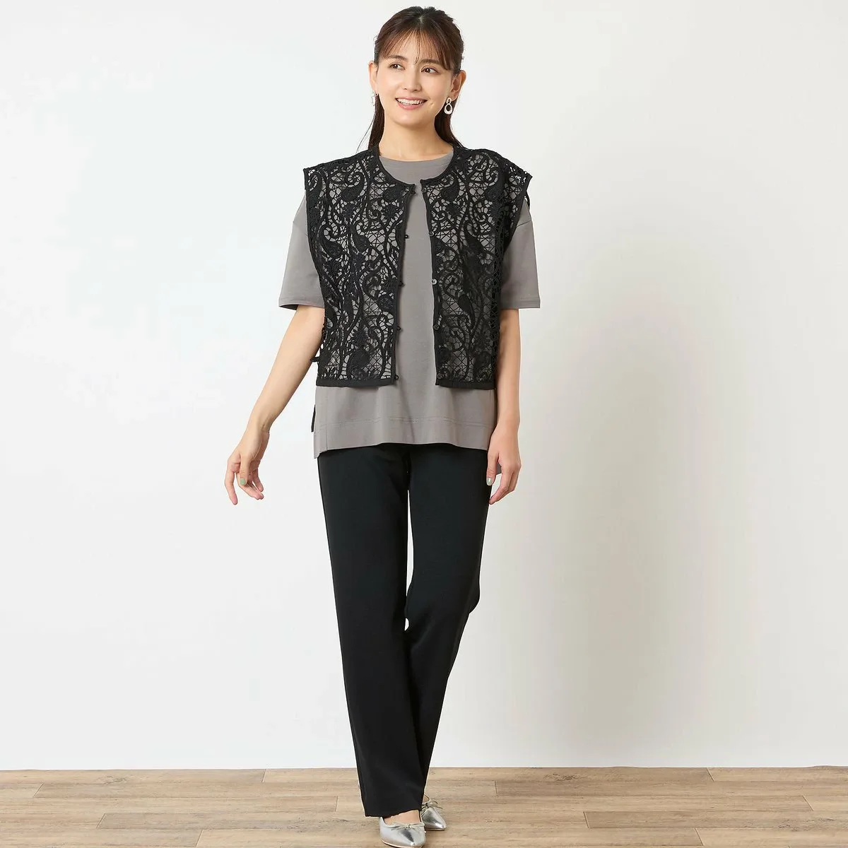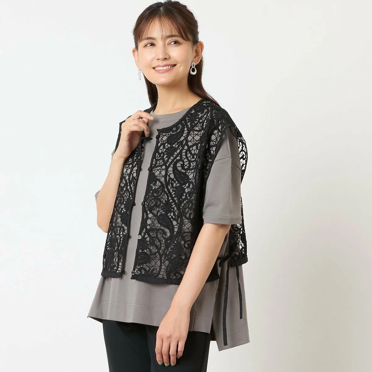 Отлично смотрится как сама по себе, так и с кружевным жилетом, как на модели.