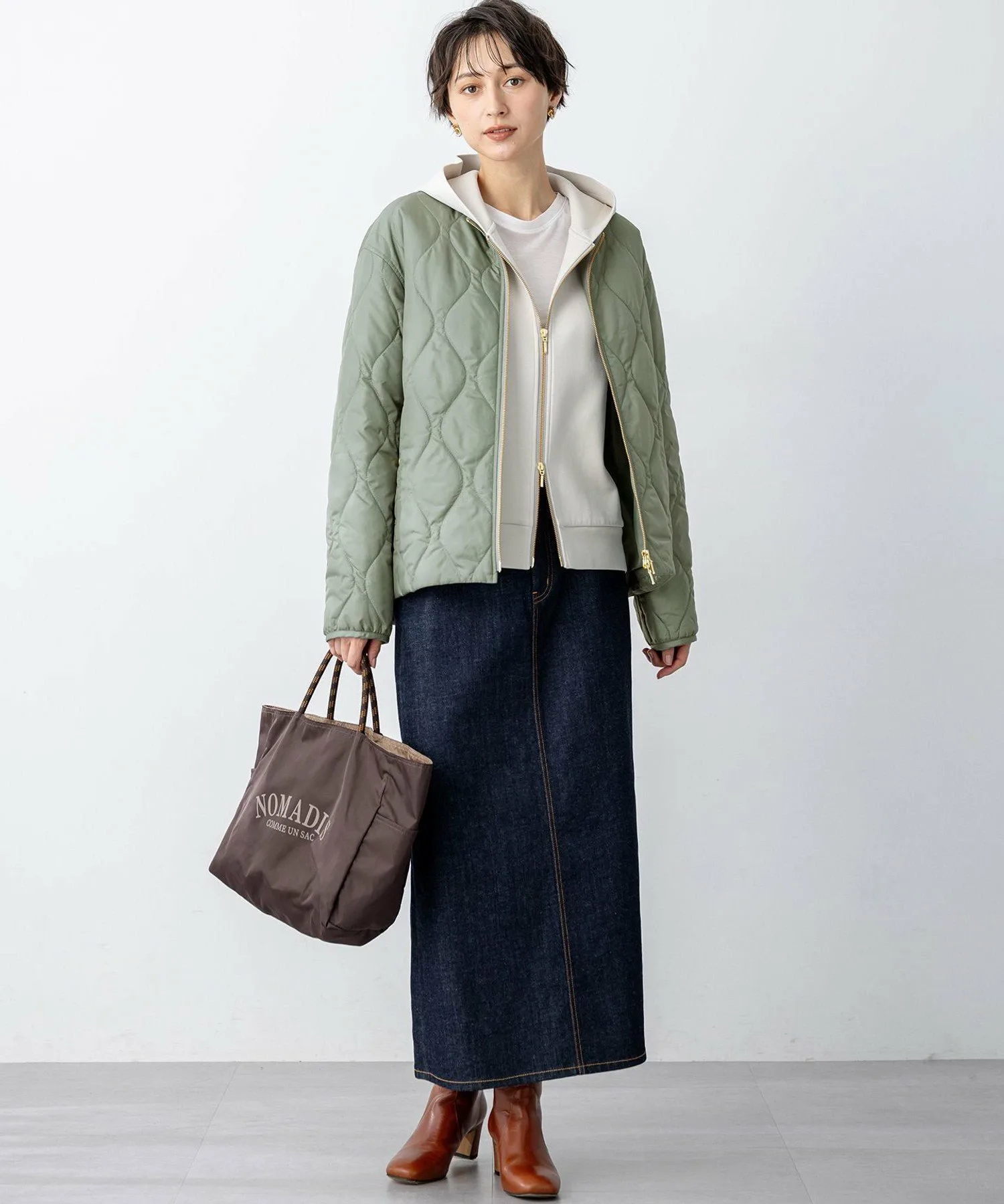 Эта утепленная верхняя одежда имеет компактный силуэт. Чистый, фактурный материал создает лаконичный и удобный в носке дизайн. Металлическая молния украшает переднюю часть. Молния с обратным открыванием позволяет создавать разные образы с разными брюками и юбками. Вы также можете изменить стиль, затянув подол, чтобы создать округлый силуэт. Доступна в четырех цветах: натуральный бежевый (#033), нежный шалфейный (#053), элегантный темно-серый (#004) и модный черный (#005).