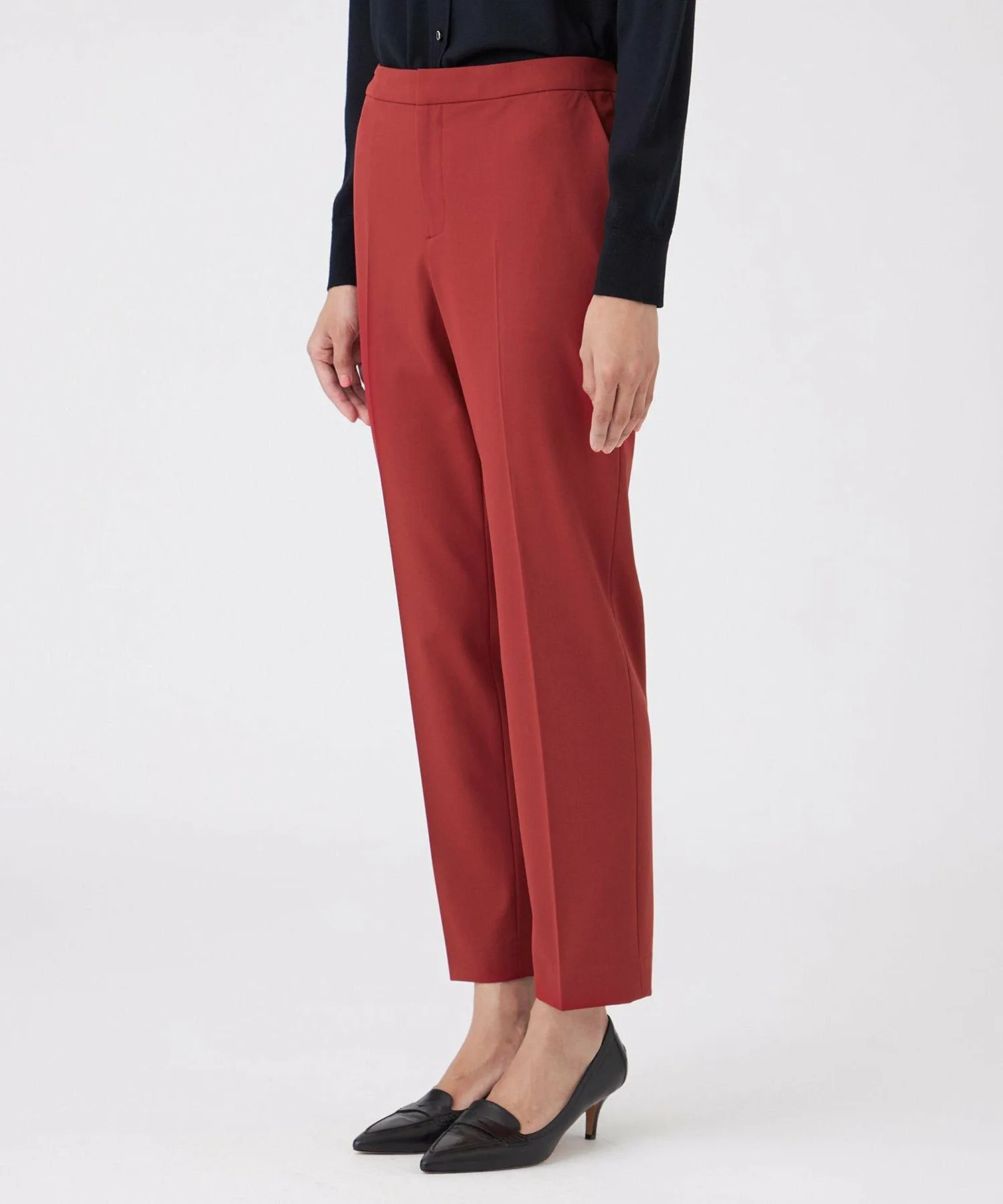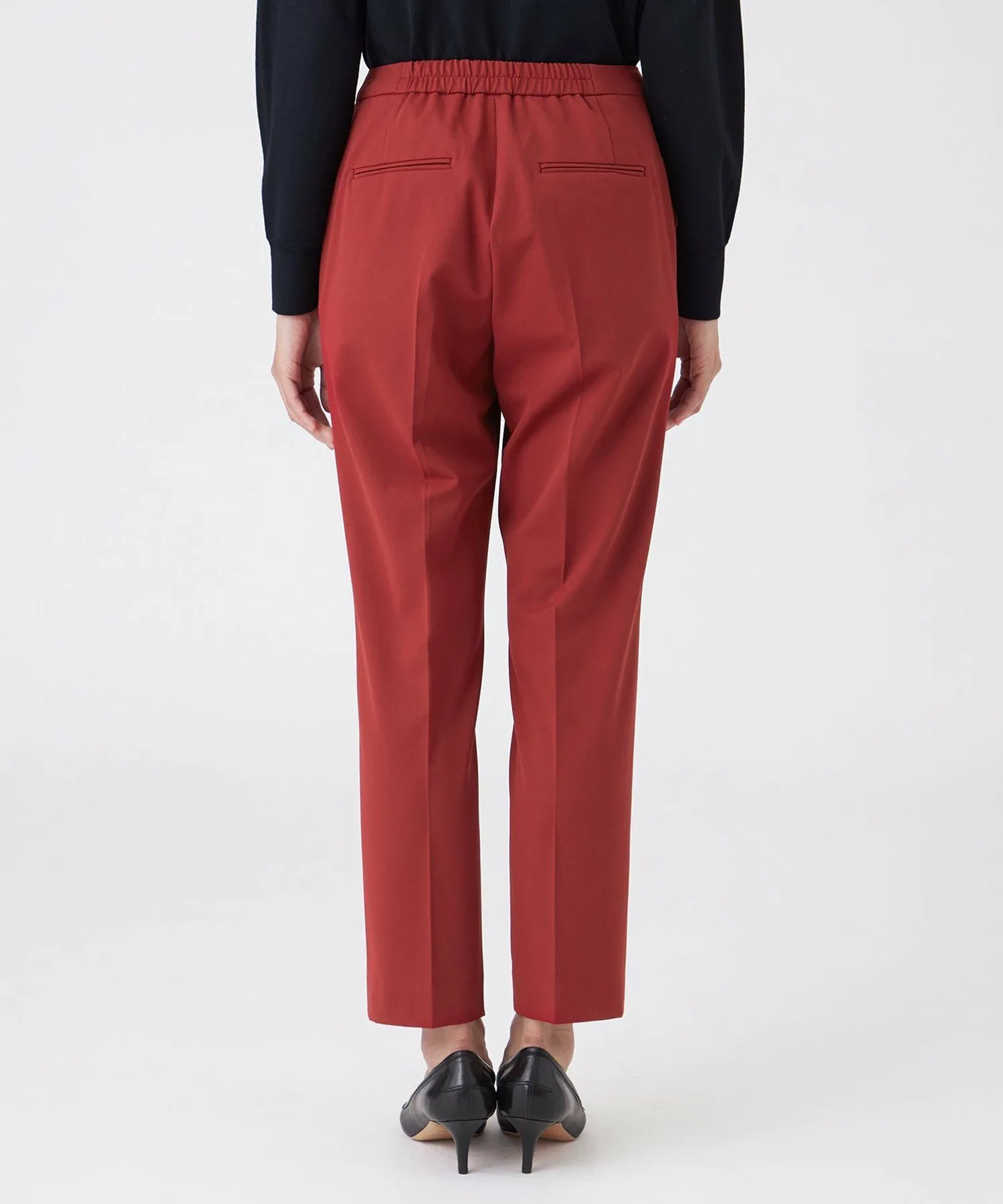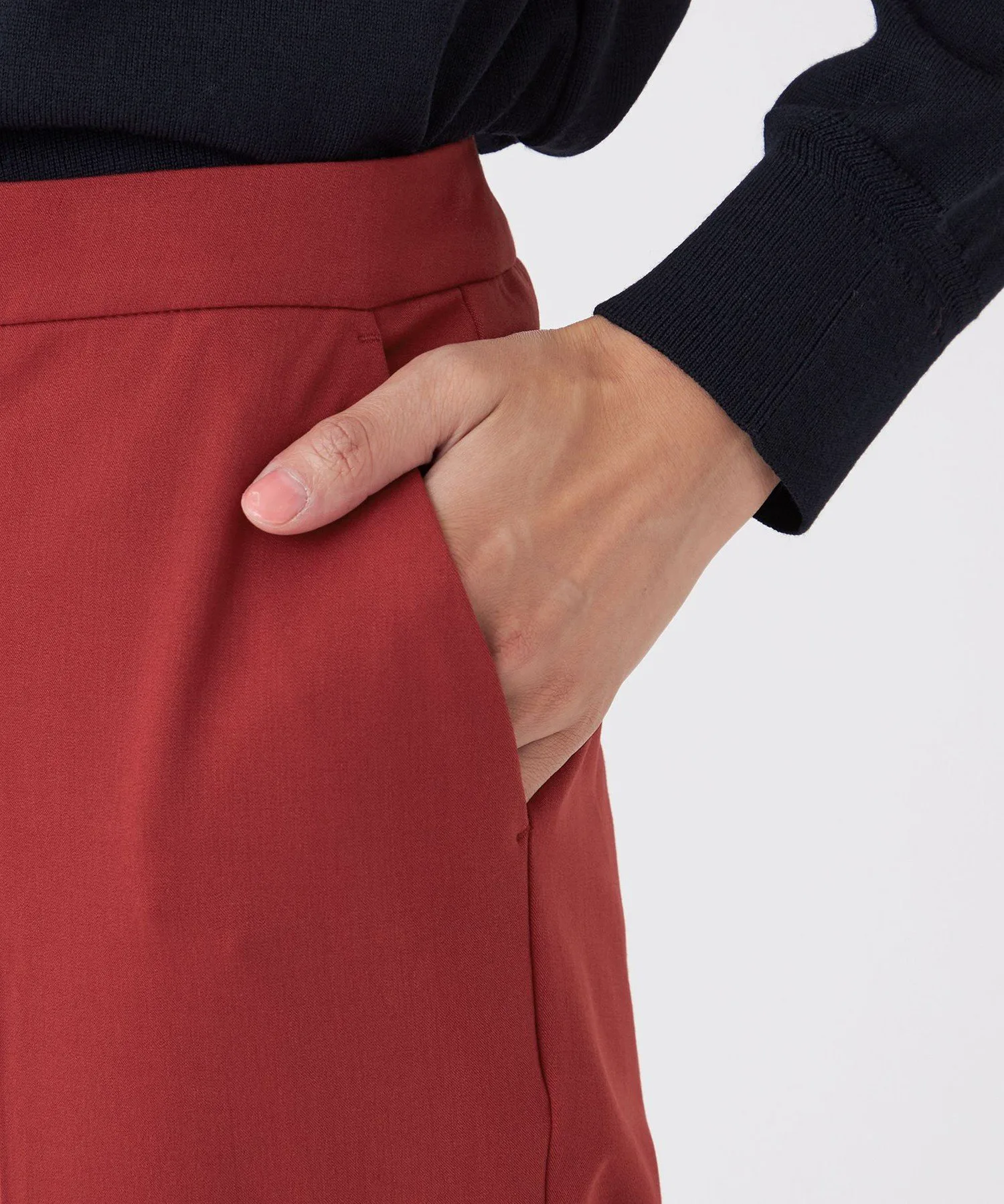 Эти брюки изготовлены из двухсторонней эластичной смеси полиэстера и вискозы с аргановым маслом. Аргановое масло известно своими увлажняющими свойствами, полезными как для кожи, так и для волос, и является популярным ингредиентом, используемым во многих косметических продуктах. Масло извлекается из семян арганового дерева, которое растет на юго-западе Марокко. Благодаря добавлению этого растительного масла в волокна, ткань мягкая и приятная на ощупь.