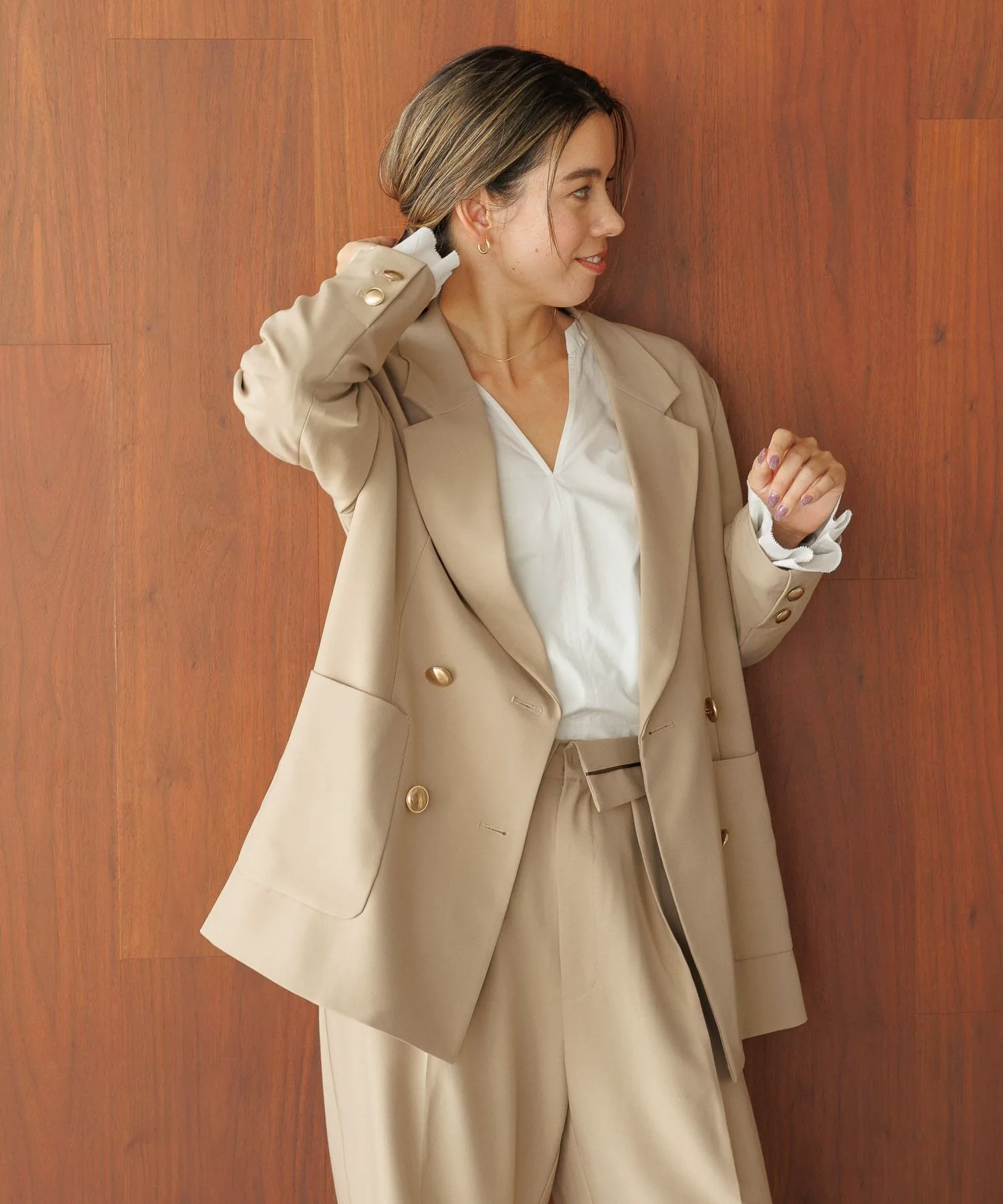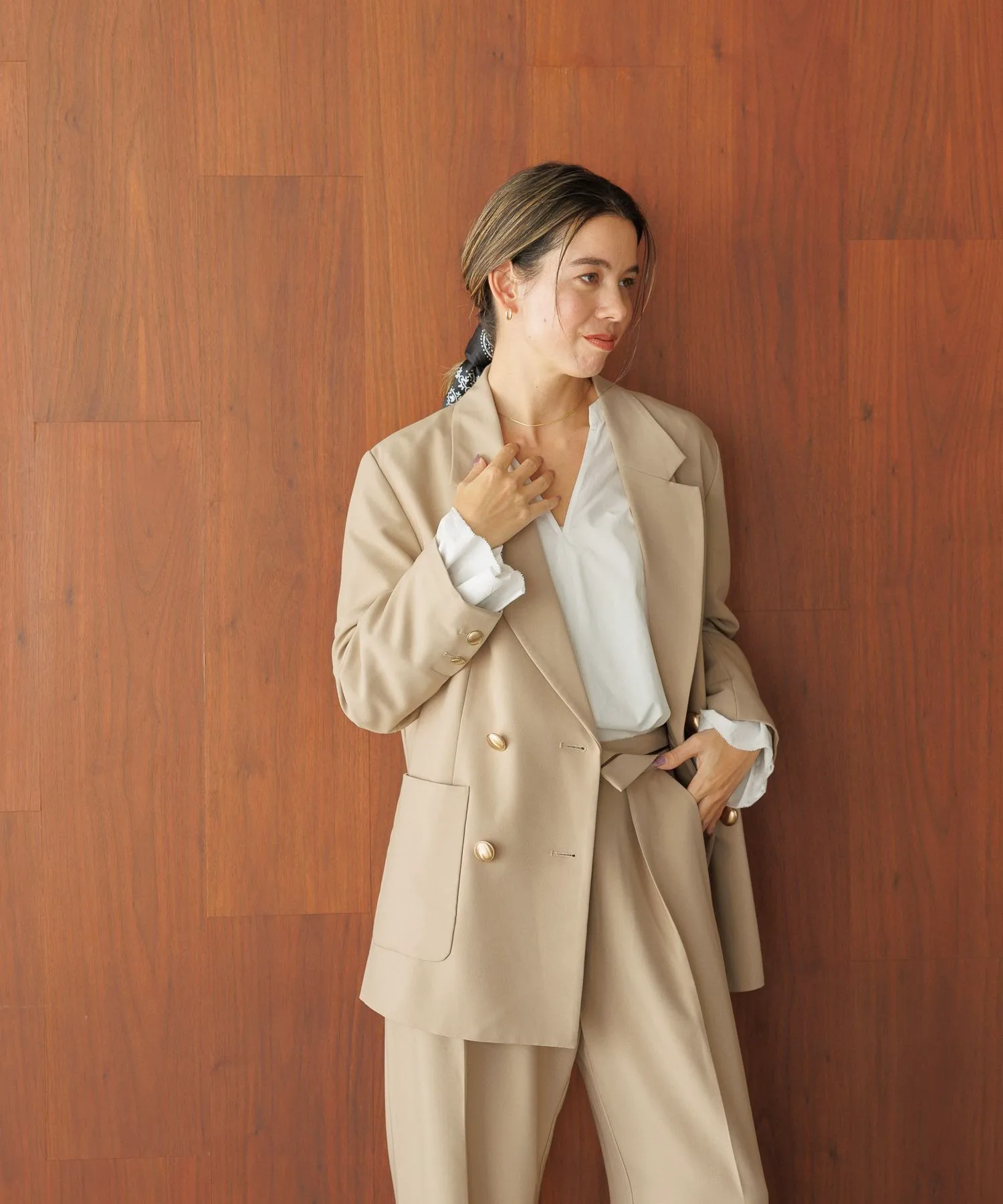 [4]Можно носить в комплекте с брюками из того же материала.