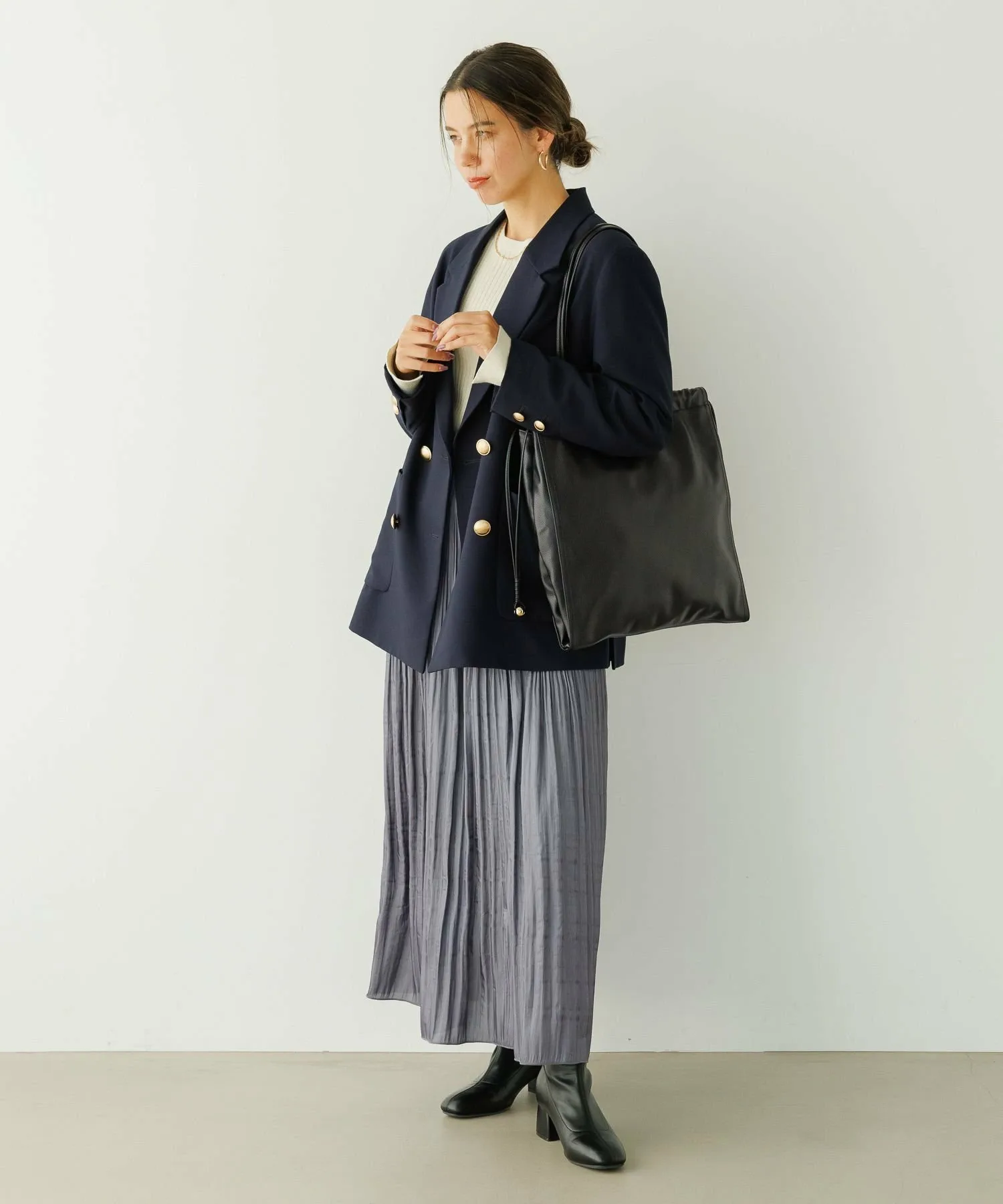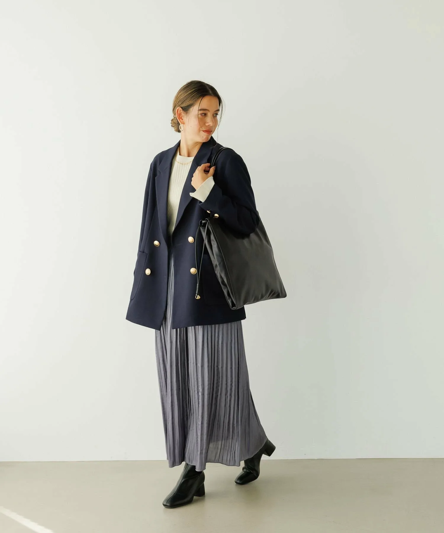 Доступен в двух цветах: темно-синий для зимнего образа и бежевый для повседневной носки.