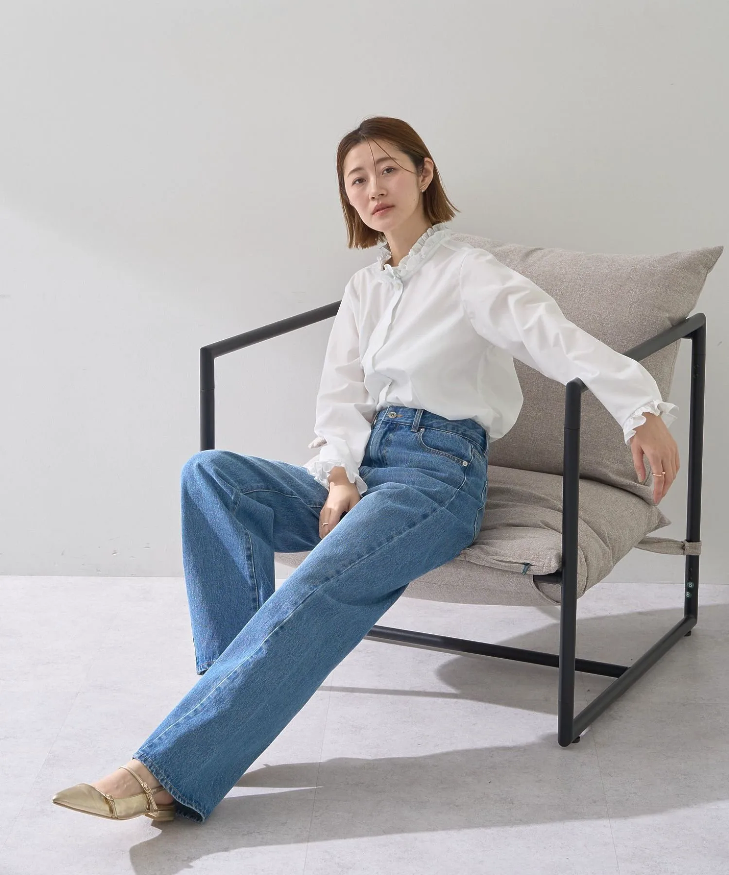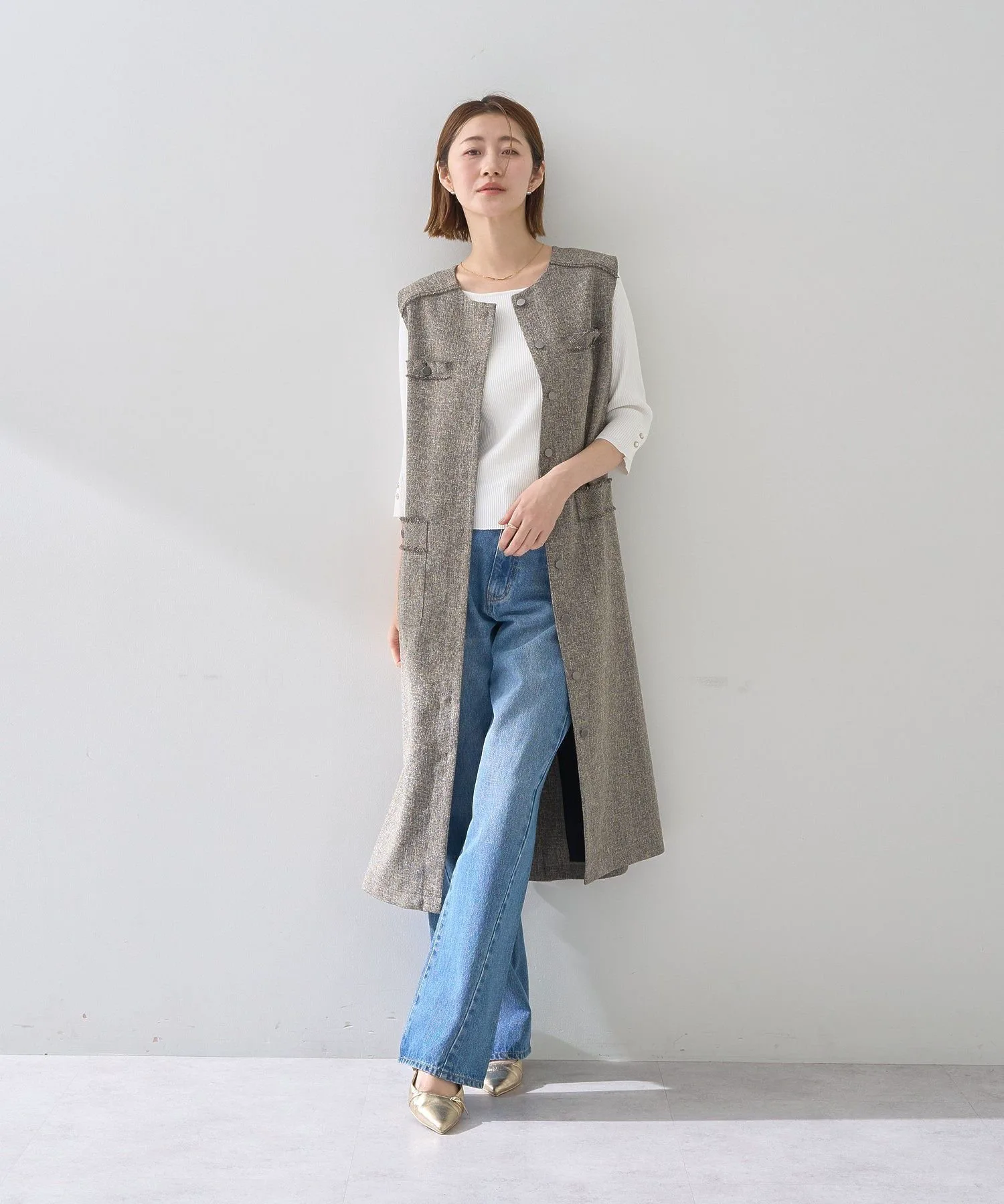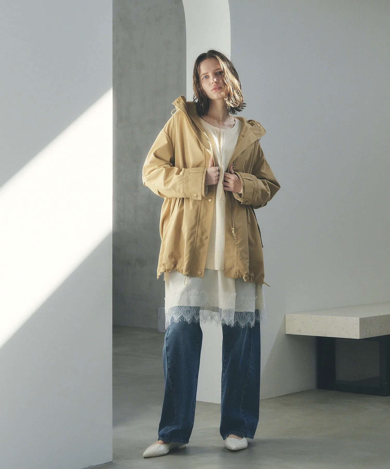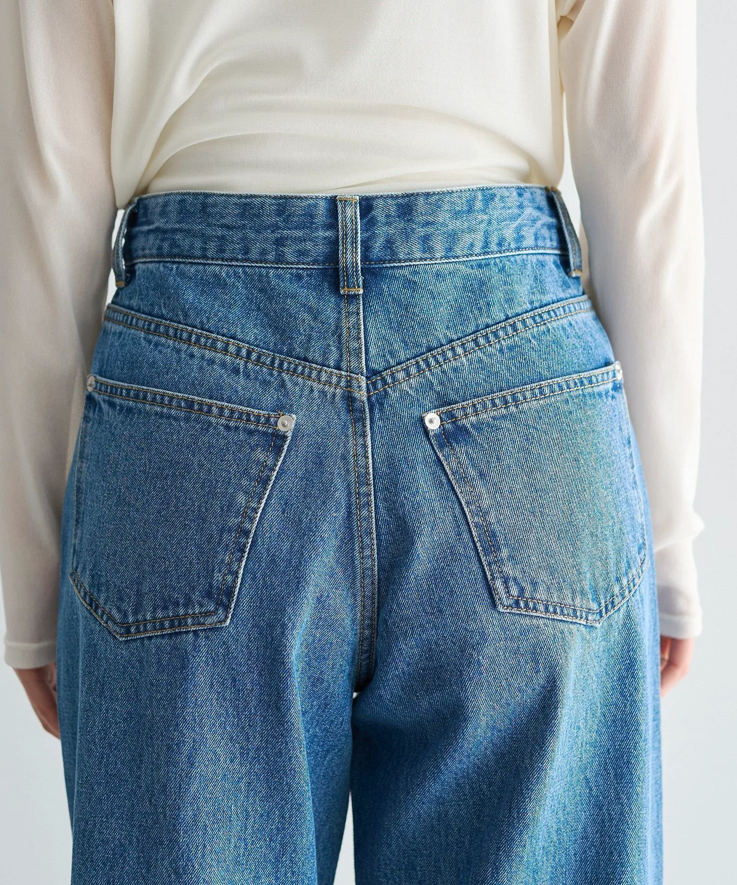 Биообработка в винтажном стиле создает современный вид. Умеренно свободный прямой силуэт добавляет элегантности повседневной одежде.