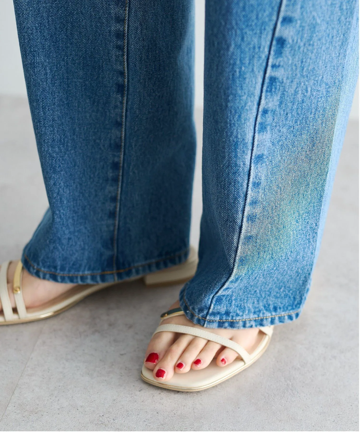 Контрастные линии придают классическим джинсам модный вид.