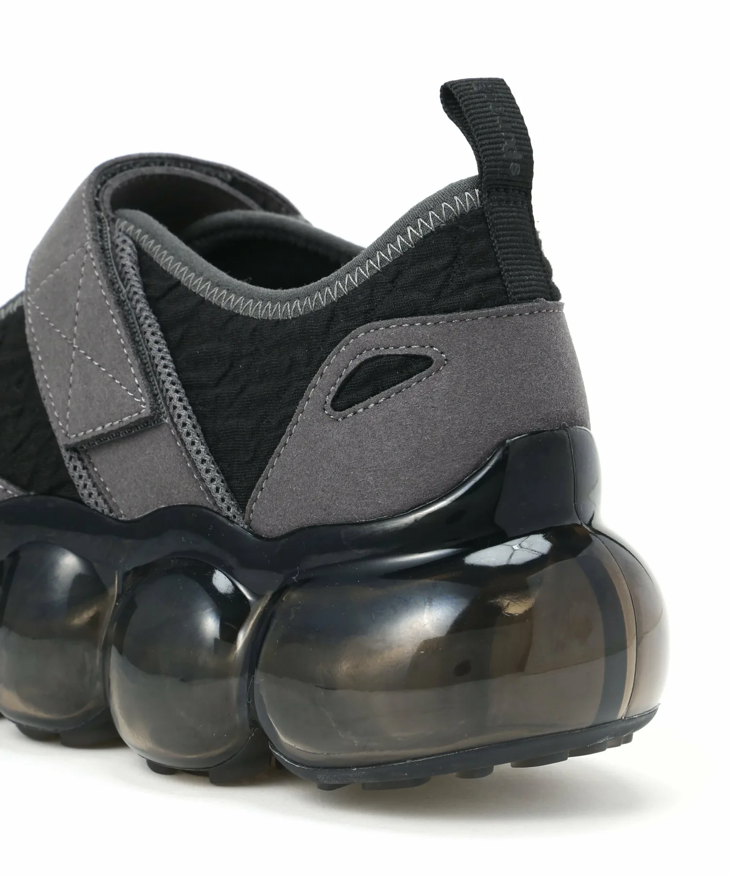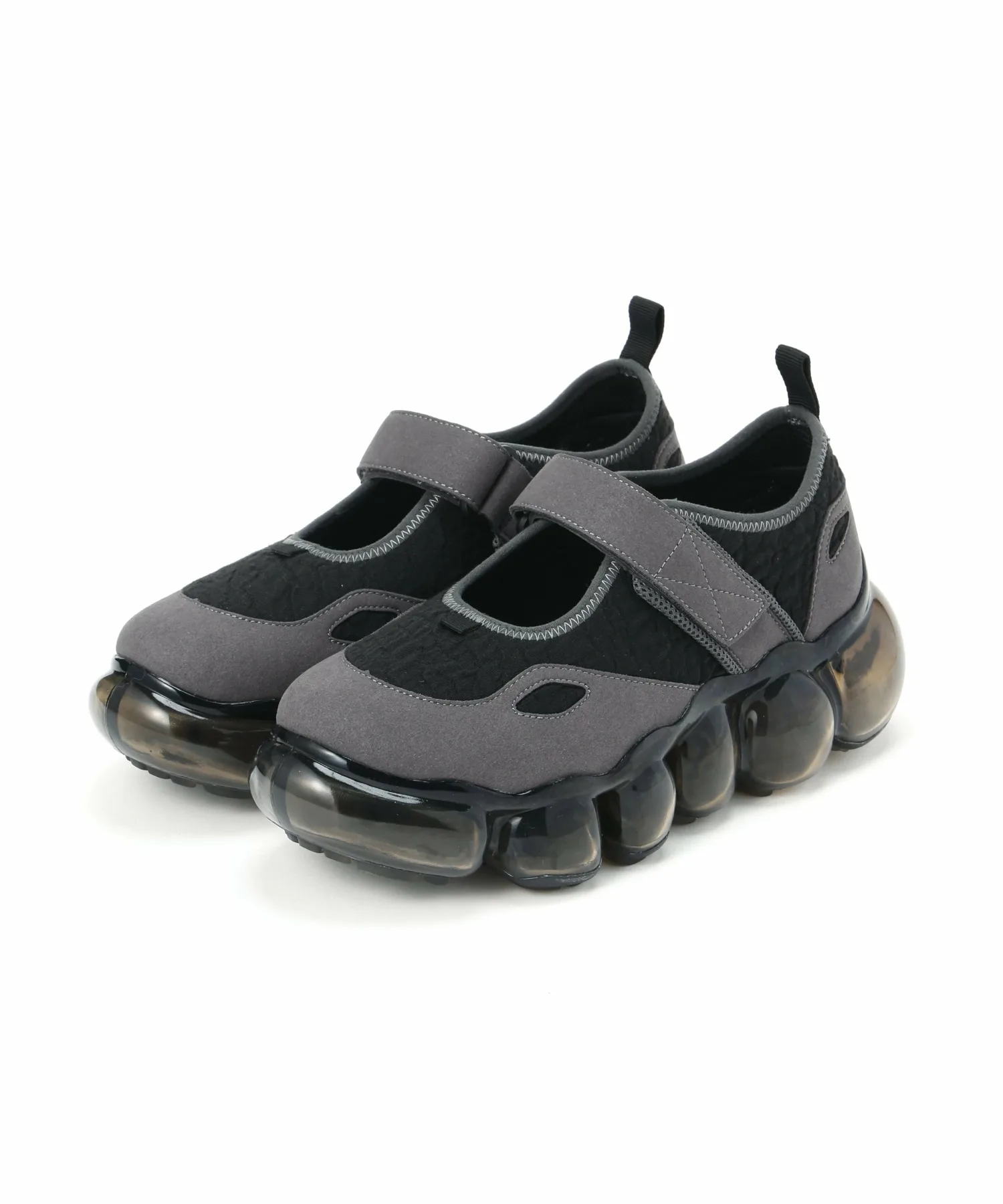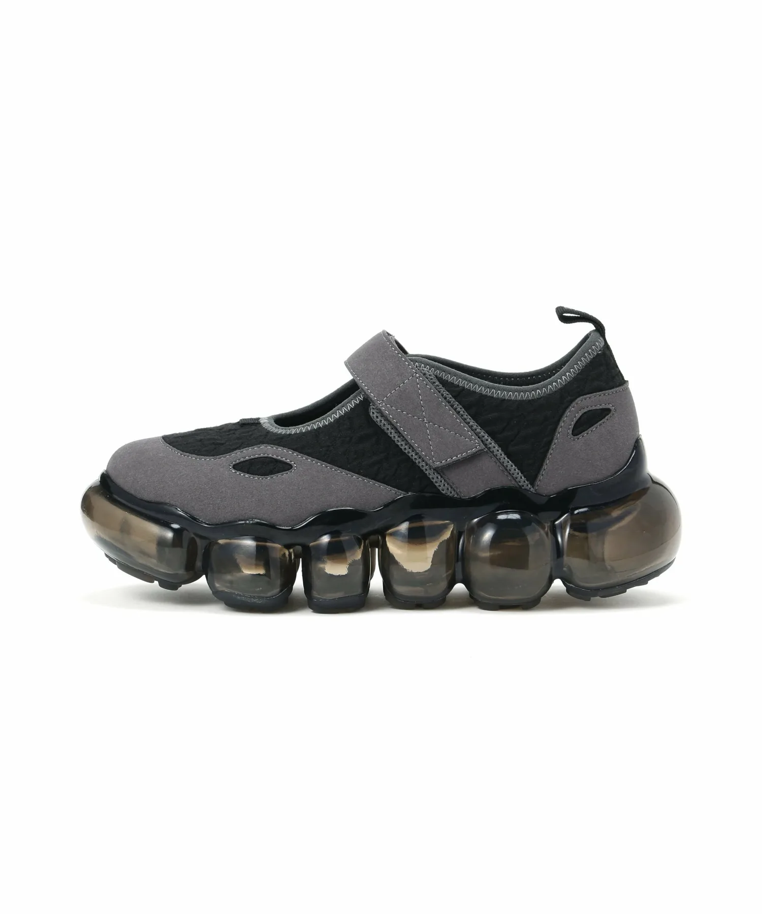 Толстая прозрачная подошва, выполненная из прозрачных сфер, напоминающих драгоценные камни, привлекает внимание как владельца, так и окружающих к ногам.