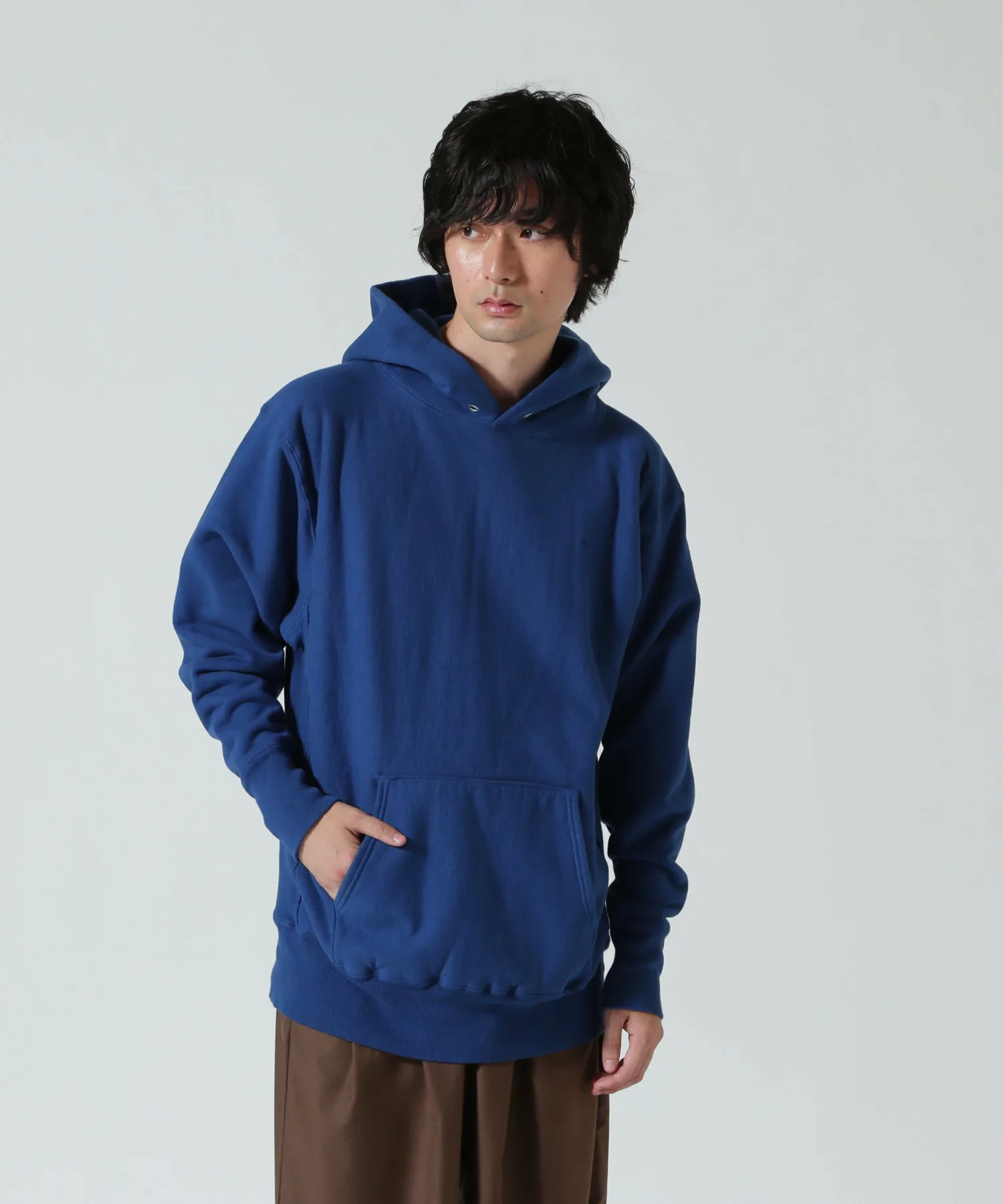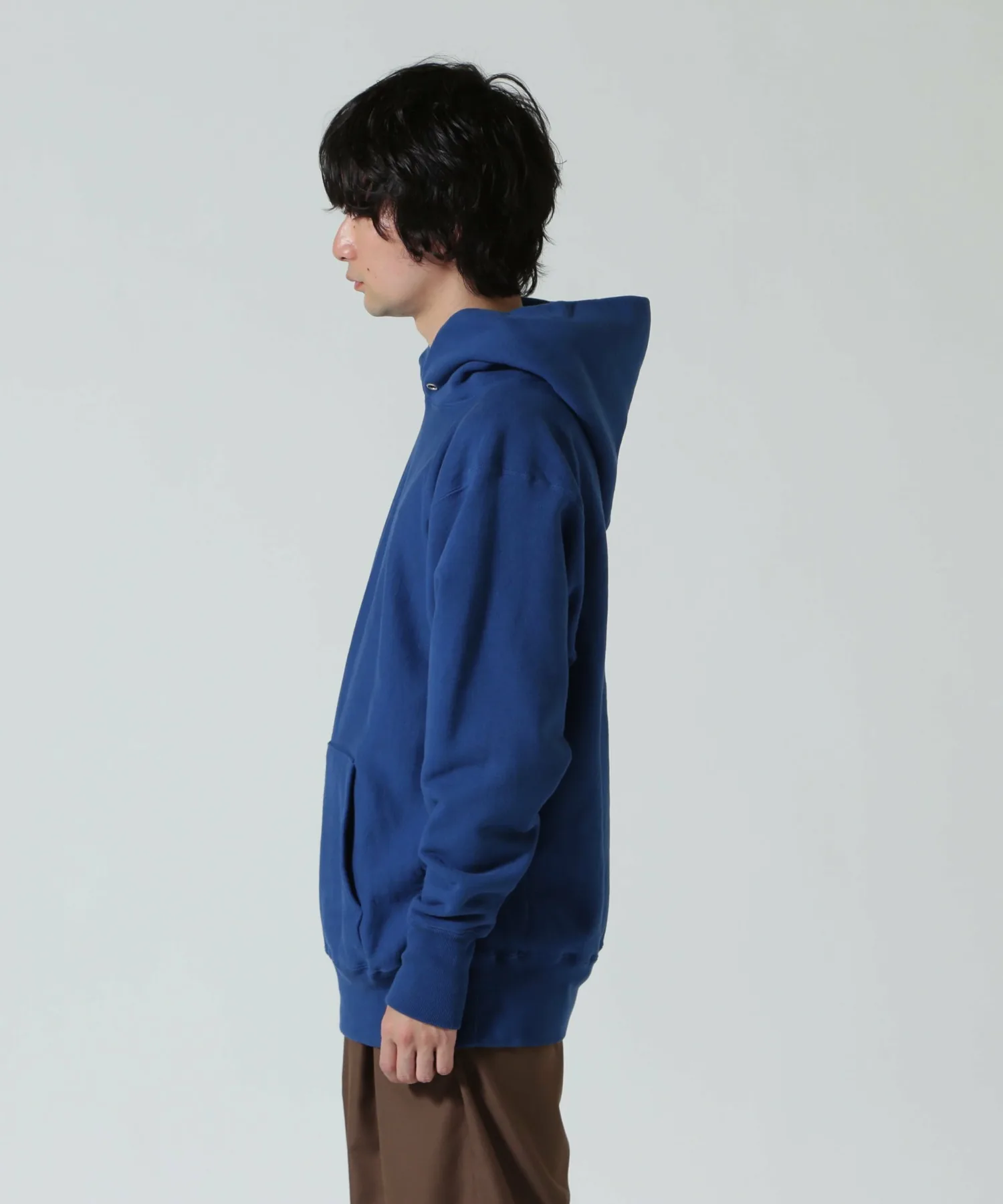 Этот трикотажный материал связан в городе Вакаяма из толстой пряжи, вдвое превышающей обычную плотность. Высокоплотная вязка не только обеспечивает долговечность, но и предотвращает усадку благодаря окрашиванию и стирке после производства. Флисовая подкладка имеет трехслойную структуру: передний слой, задний слой и слой, соединяющий их. Воздух удерживается между слоями, обеспечивая тепло. Это особый продукт, окрашенный натуральными красителями.