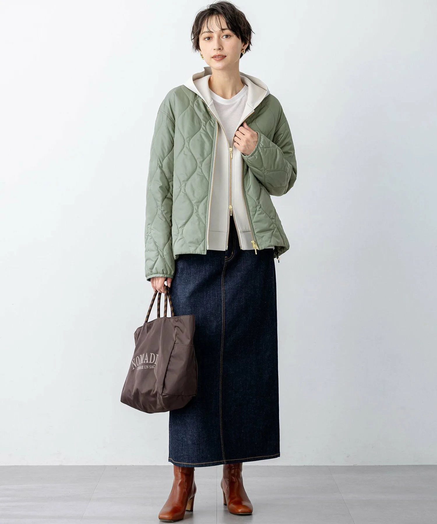 Эта утепленная верхняя одежда имеет компактный силуэт. Чистый, фактурный материал создает лаконичный и удобный в носке дизайн. Металлическая молния украшает переднюю часть. Молния с обратным открыванием позволяет создавать разные образы с разными брюками и юбками. Вы также можете изменить стиль, затянув подол, чтобы создать округлый силуэт. Доступна в четырех цветах: натуральный бежевый (#033), нежный шалфейный (#053), элегантный темно-серый (#004) и модный черный (#005).