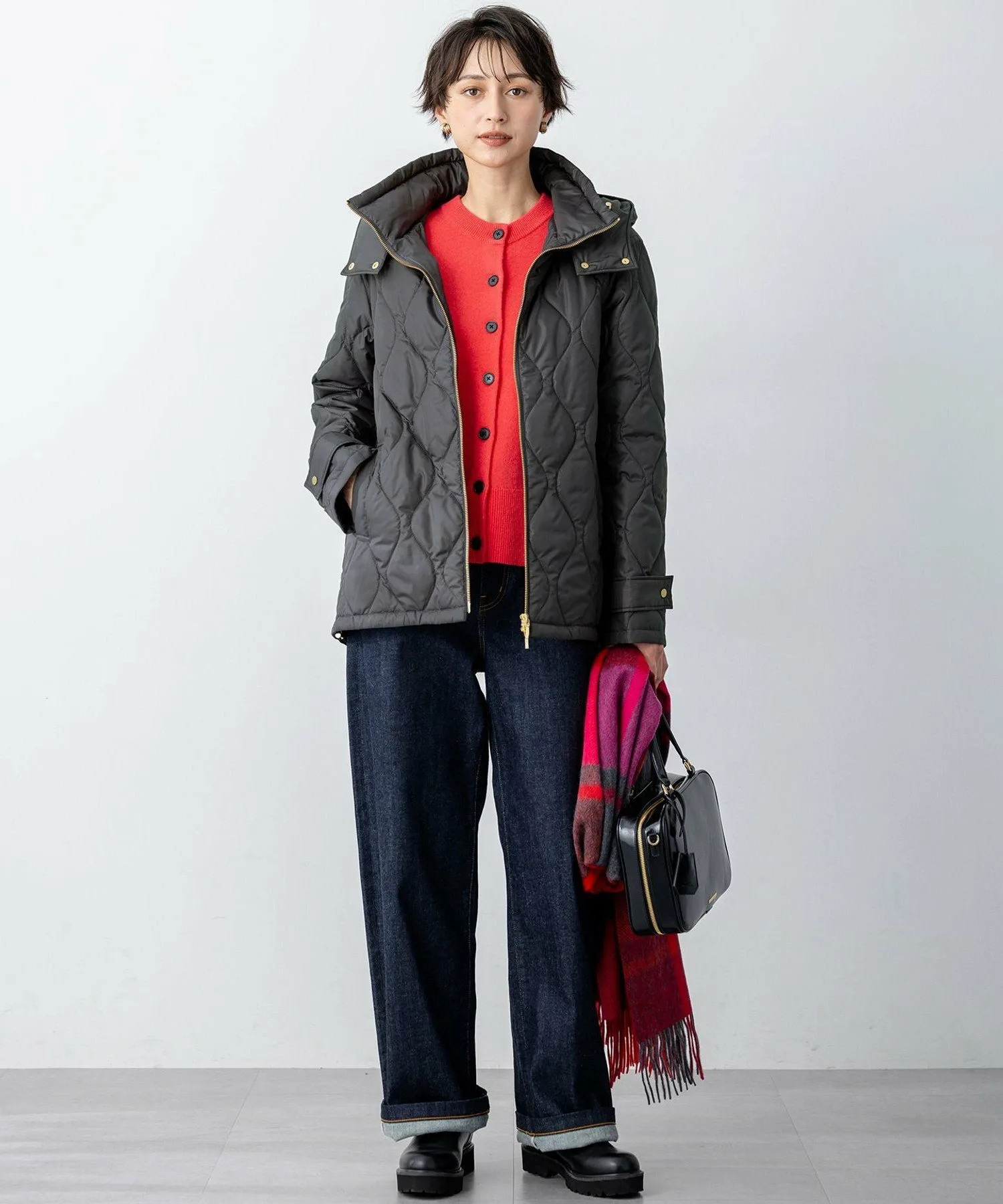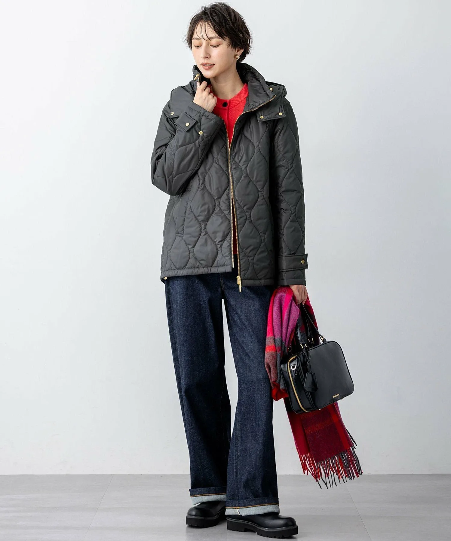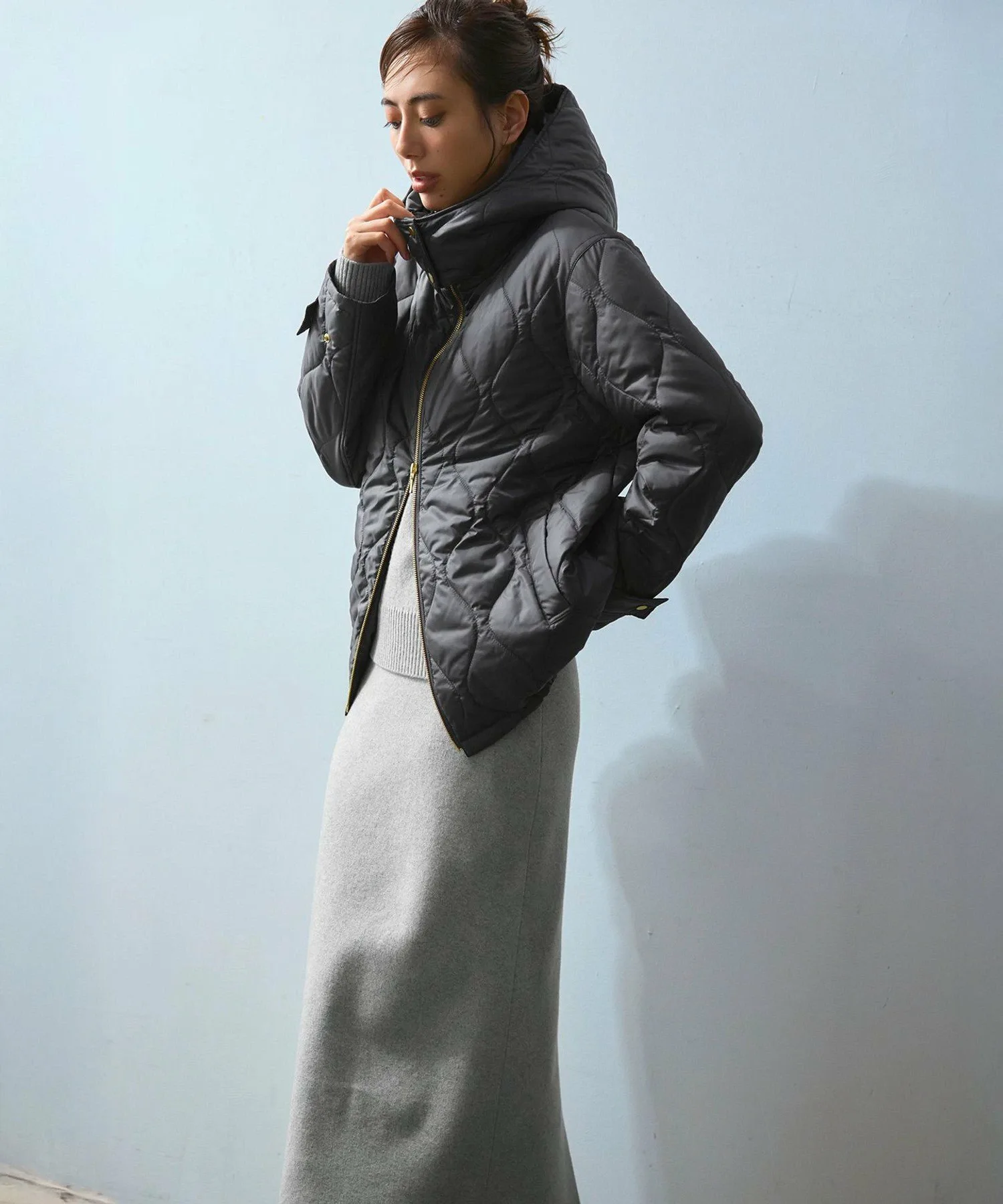 Эта утепленная верхняя одежда имеет съемный капюшон. Слегка высокий воротник создает привлекательный вид даже в расстегнутом виде. Металлическая застежка-молния по краю воротника и металлическая молния спереди добавляют акценты. Обратная молния позволяет менять образ в зависимости от брюк или юбки. Вы также можете изменить стиль, заузив подол, чтобы создать округлый силуэт. Доступна в четырех цветах: натуральный бежевый (#033), нежно-зеленый (#053), элегантный темно-серый (#004) и модный черный (#005).