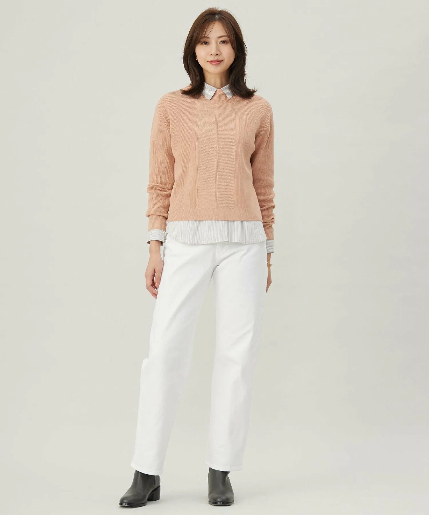 Этот трикотаж с высоким воротником отличается эффектной текстурированной ребристой вязкой. Он помогает уменьшить ощущение холода в области шеи, что особенно важно зимой. Привлекательные, красивые цвета делают его подходящим для ношения в течение всего года. Относительно короткая длина хорошо сочетается с широкими брюками и расклешенными юбками.