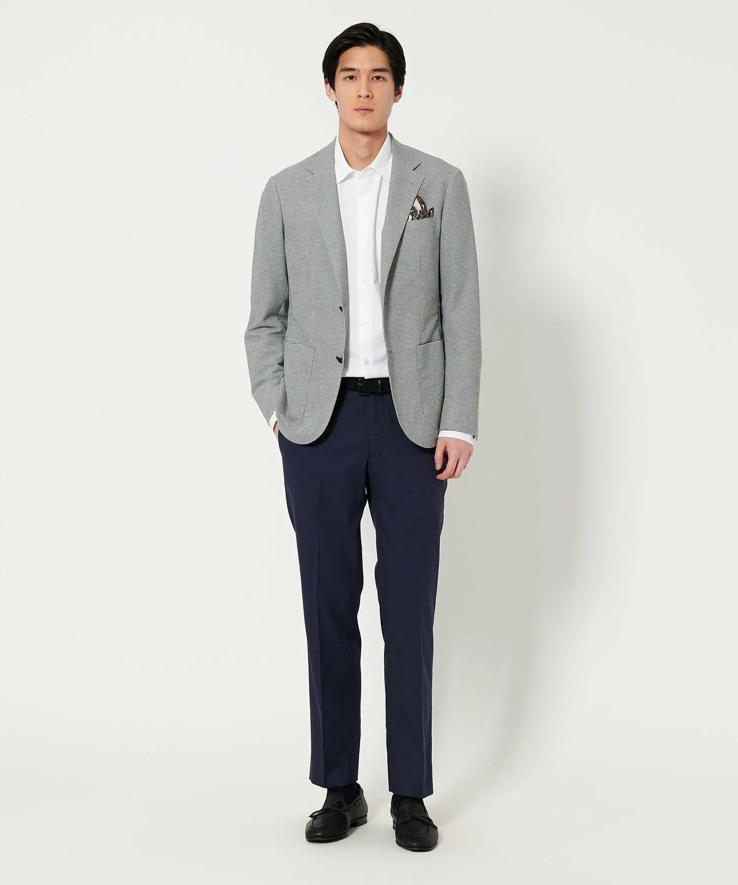 Модель для зрелого бизнесмена, изготовленная из комфортных материалов и имеющая покрой, подходящий для деловой обстановки.