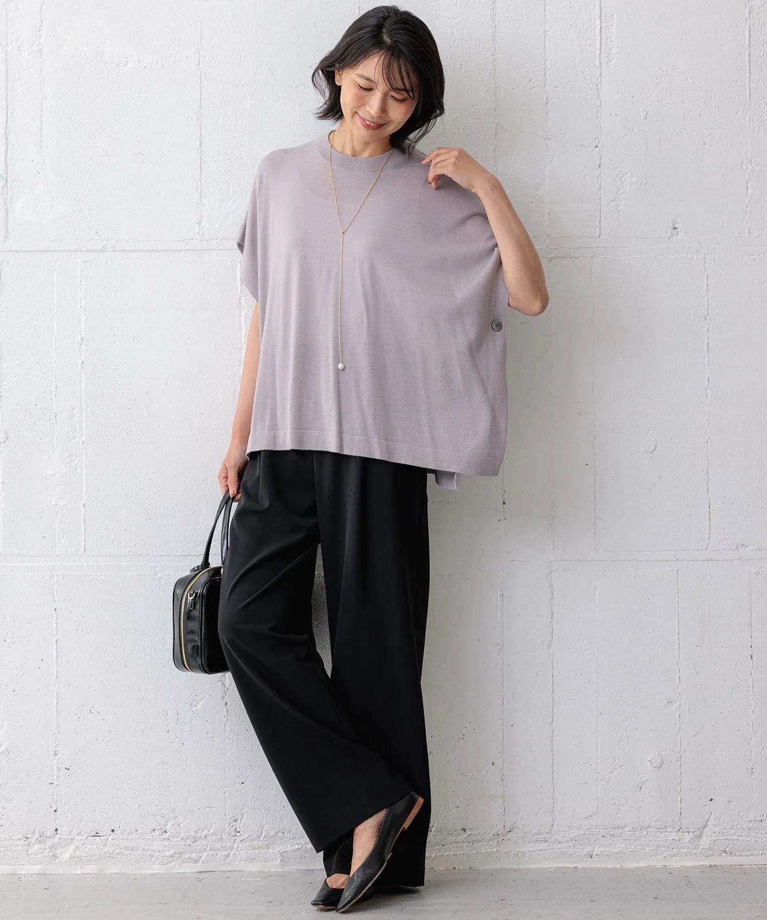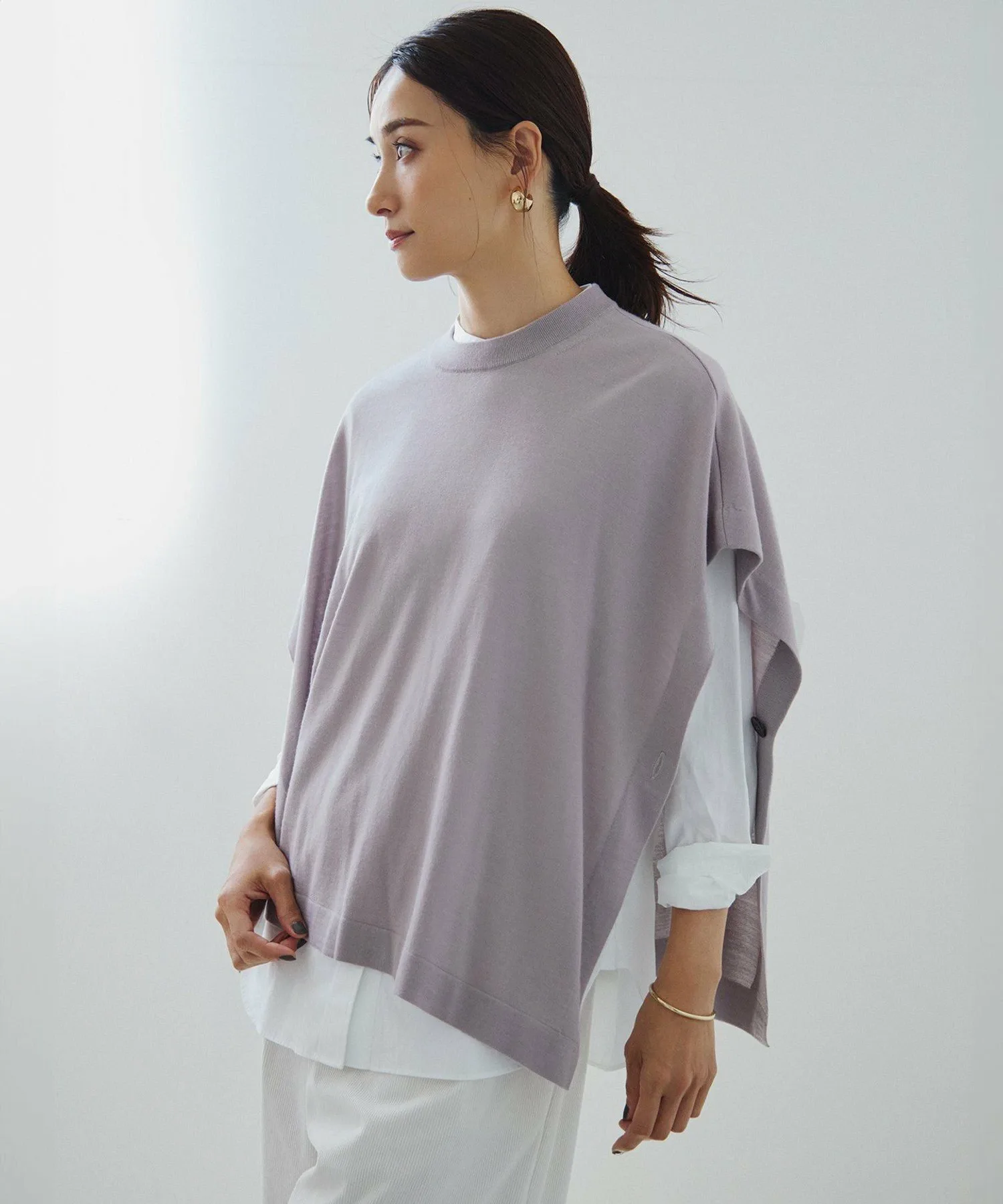 Это вязаное пончо средней длины демонстрирует высокое качество материала. Широкий силуэт создает приятную драпировку. Это универсальная вещь для многослойного ношения, которую можно носить с майками и футболками, а также с рубашками и водолазками, создавая универсальный образ, идеально подходящий для любого сезона. Доступно в четырех цветах: мягкий светло-серый (#003), элегантный черный (#005), привлекательный желтый (#004) и насыщенный синий (#070).