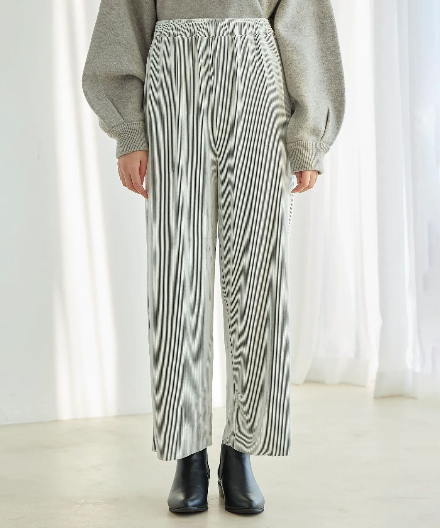 Узкий полосатый дизайн и красивый силуэт создают эффект удлинения ног.