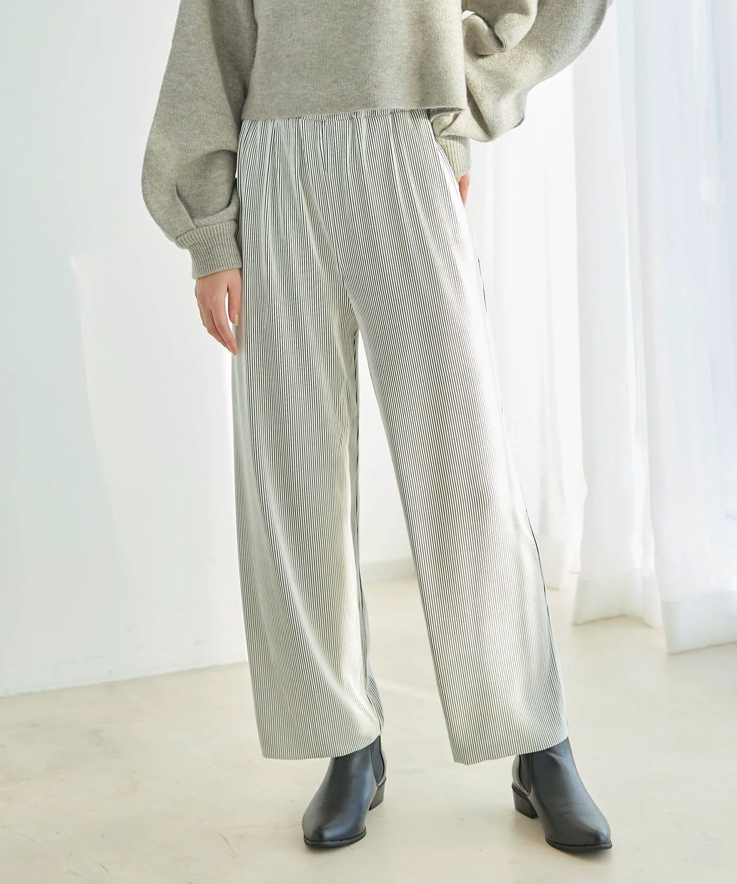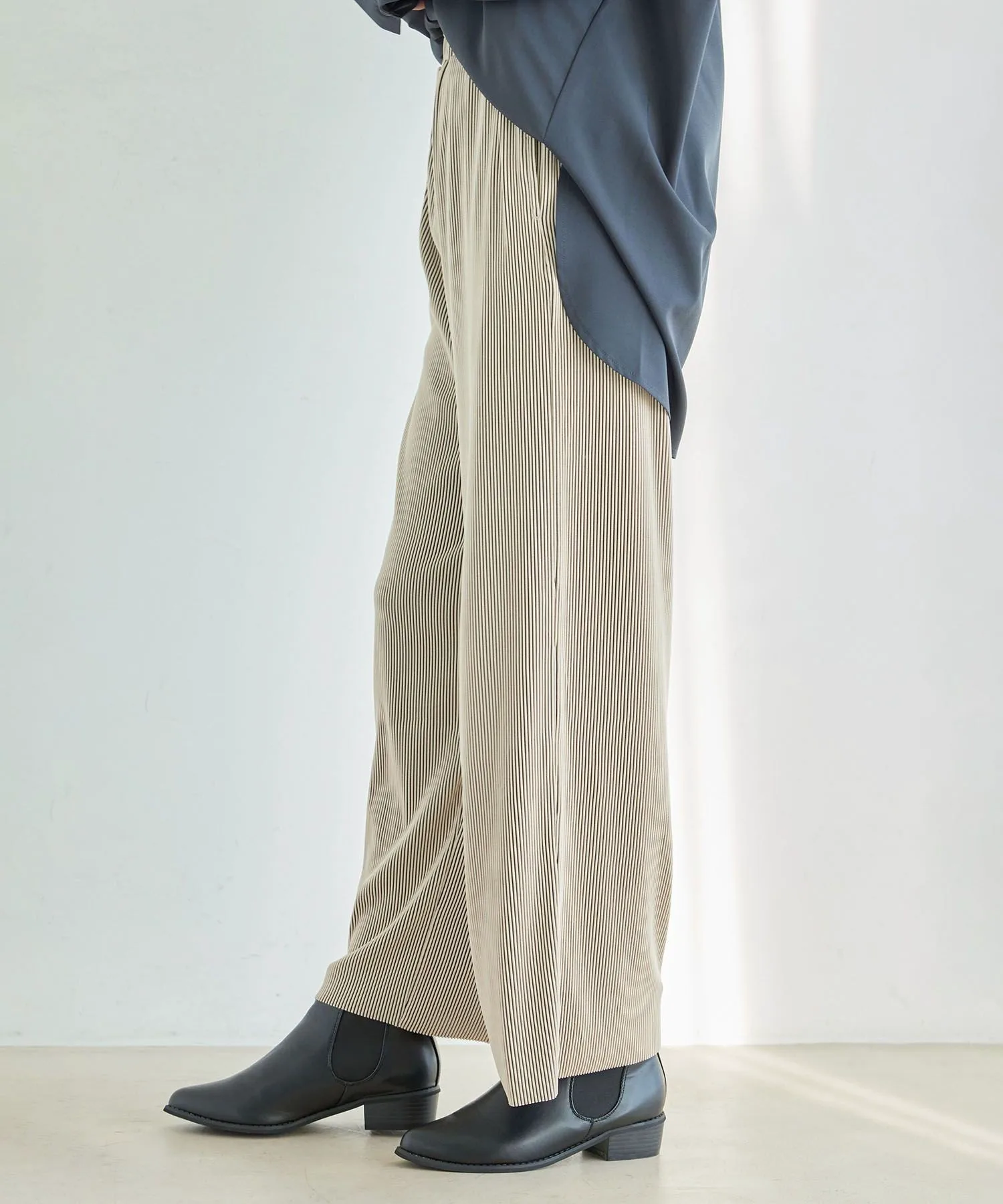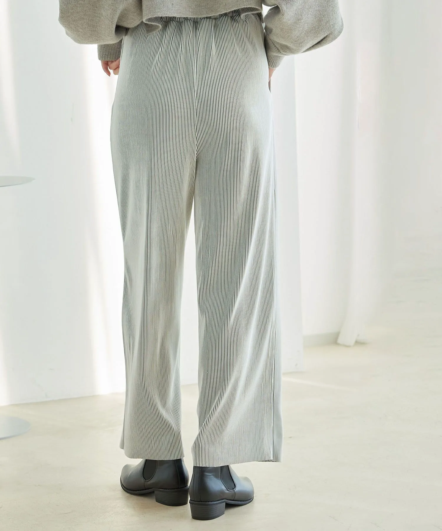 Эти полосатые брюки свободного кроя имеют эластичный пояс для исключительного комфорта. Они отличаются гладкой текстурой ткани.