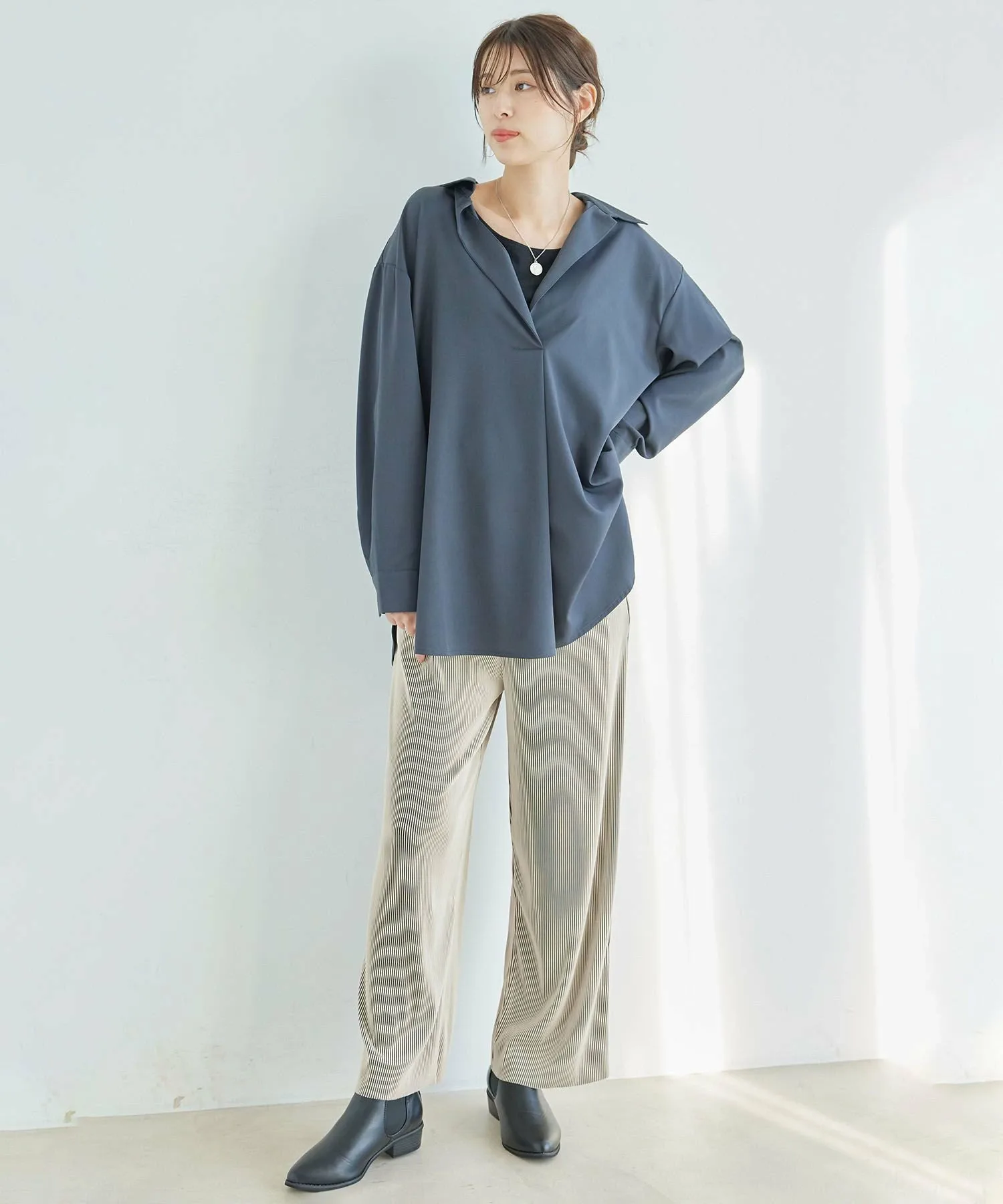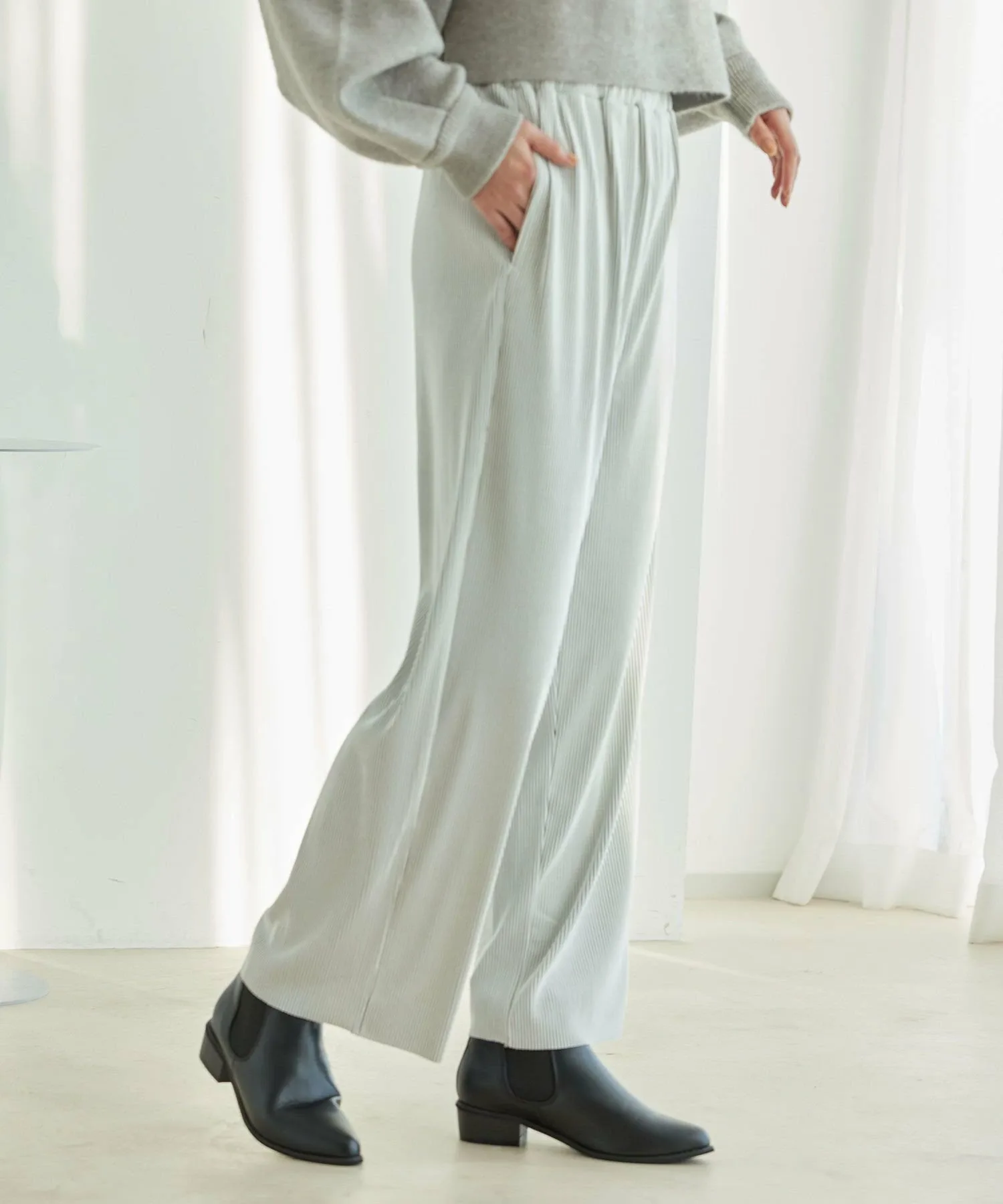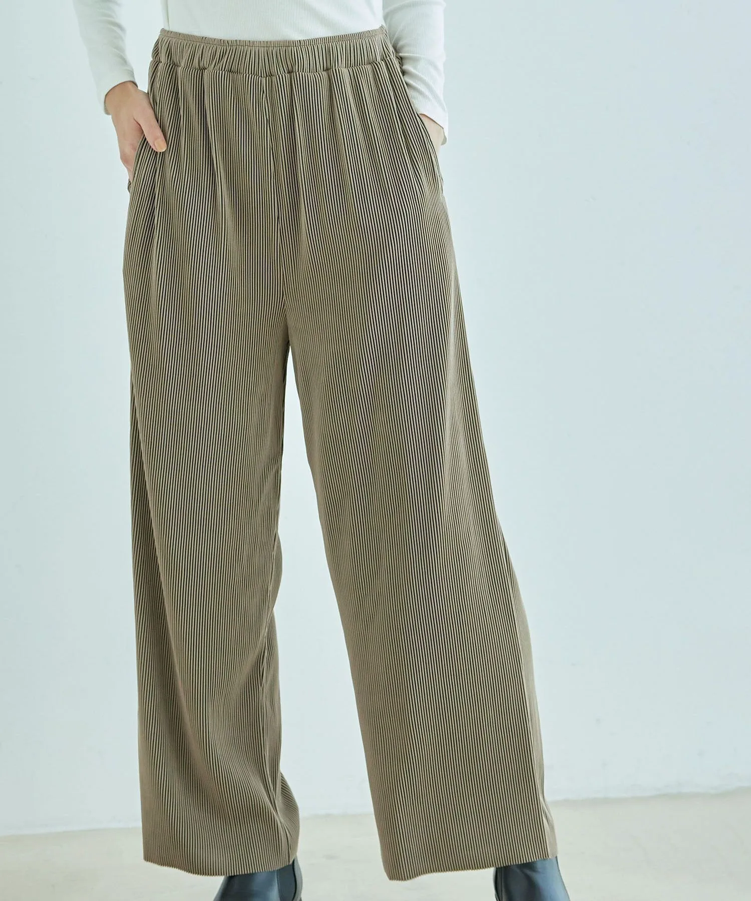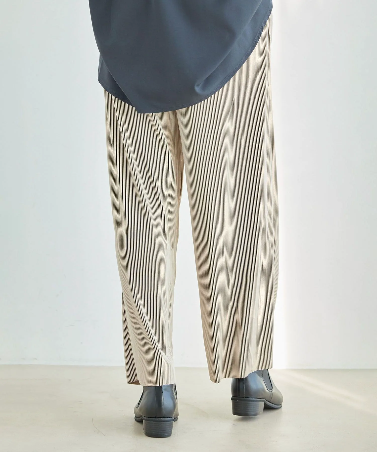 Эти полосатые брюки свободного кроя имеют эластичный пояс для исключительного комфорта. Они отличаются гладкой текстурой ткани.