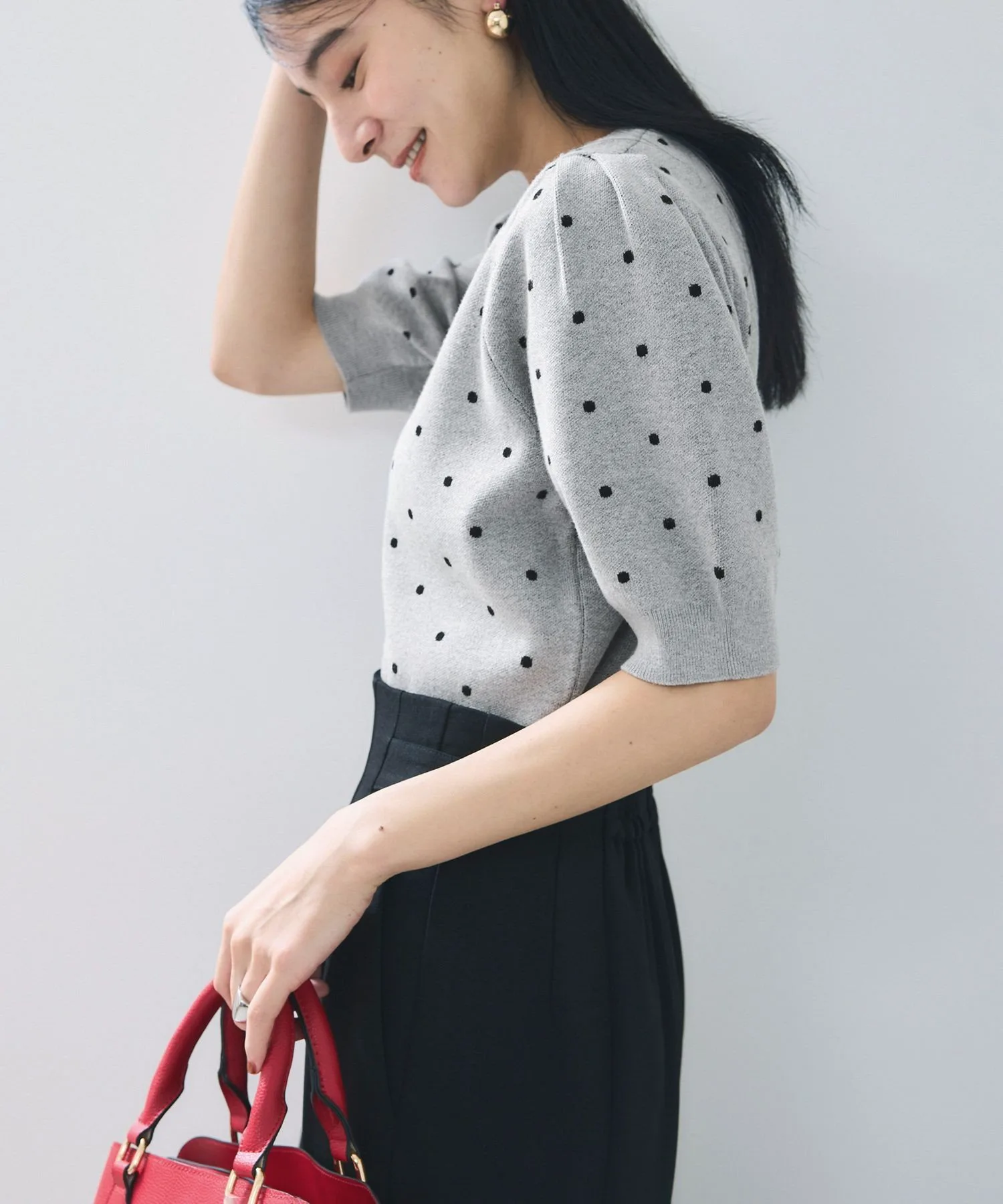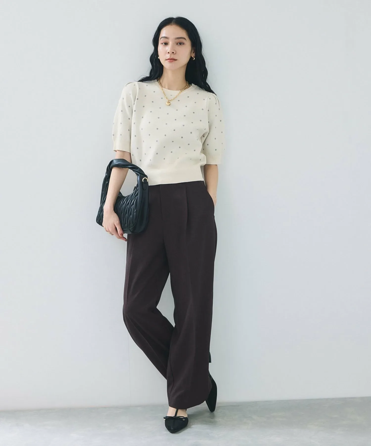 ・Модный узор в горошек добавляет образу нужной доли гламура.