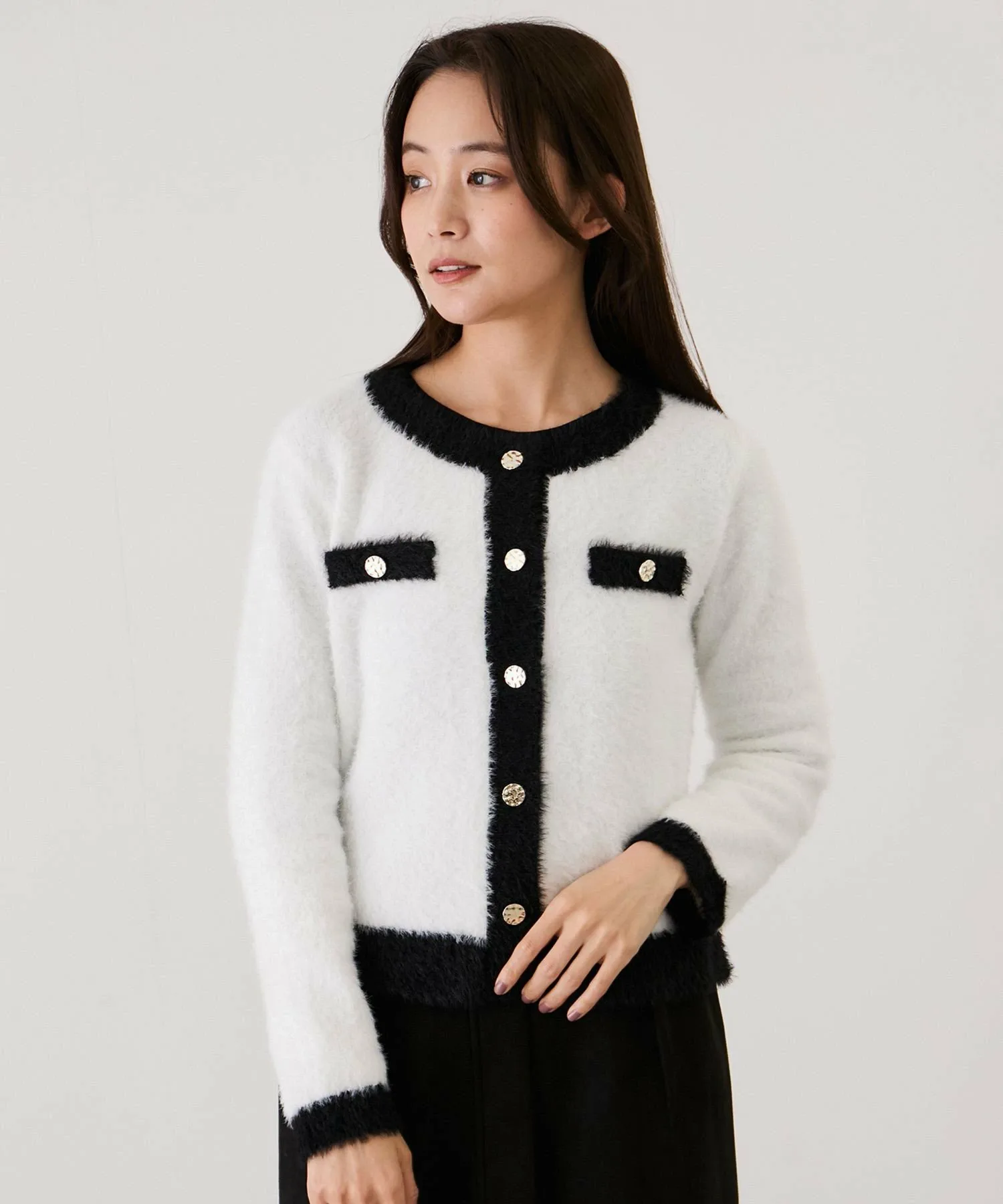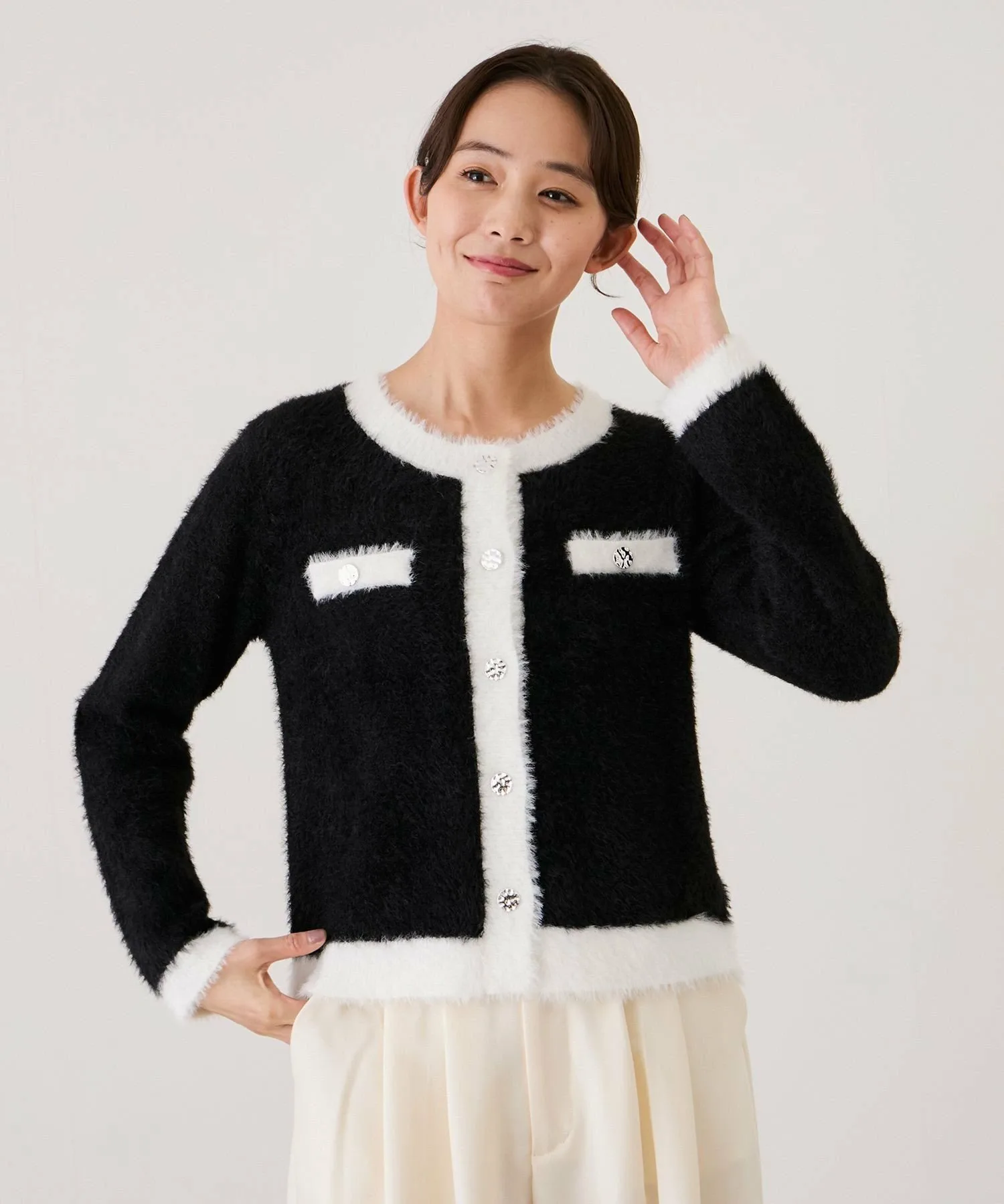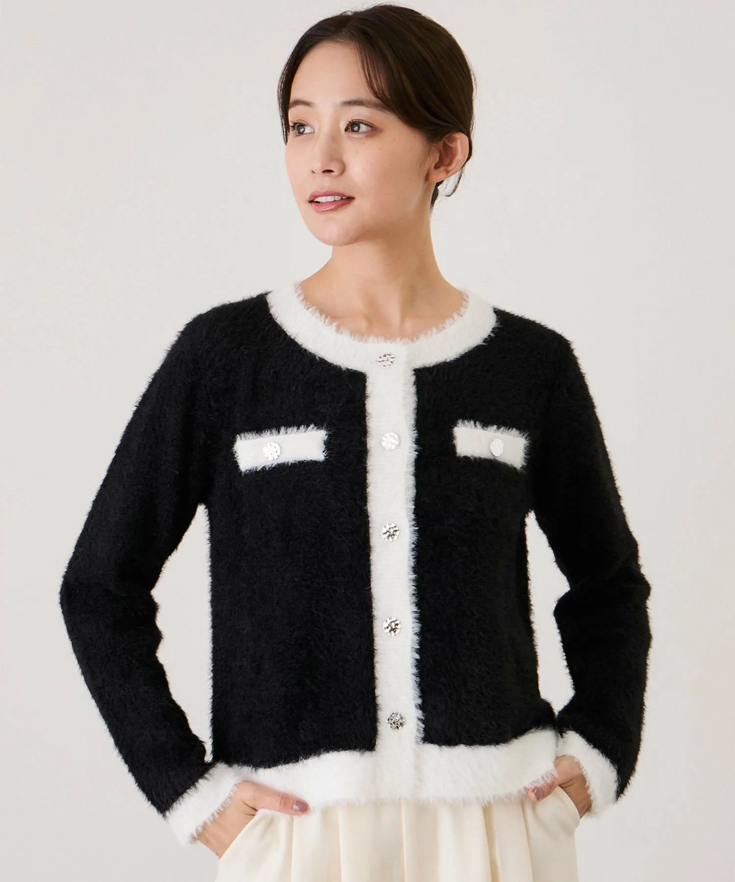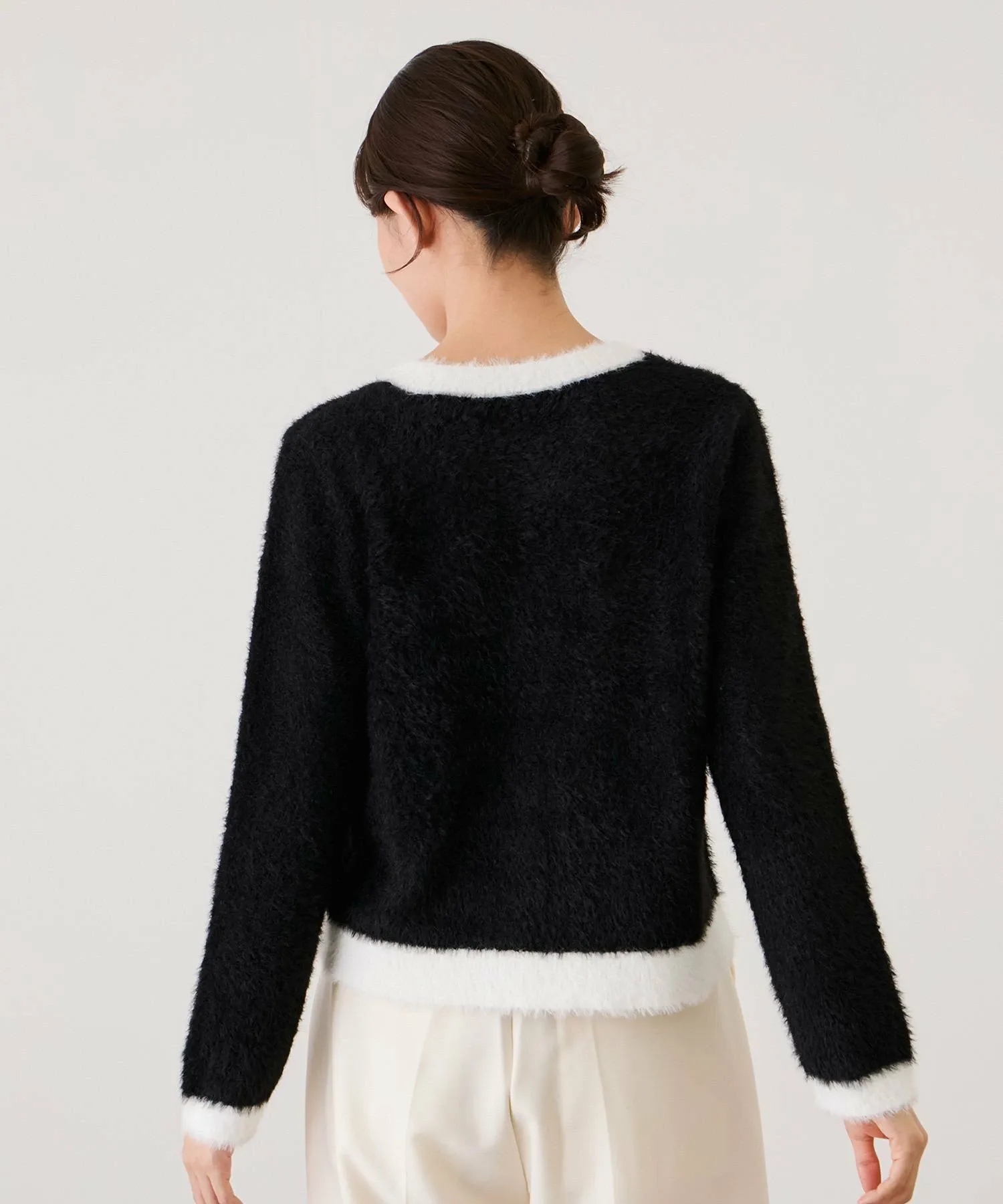 Великолепный двухцветный кардиган из пушистой вязки для взрослых [Дизайн/Силуэт]