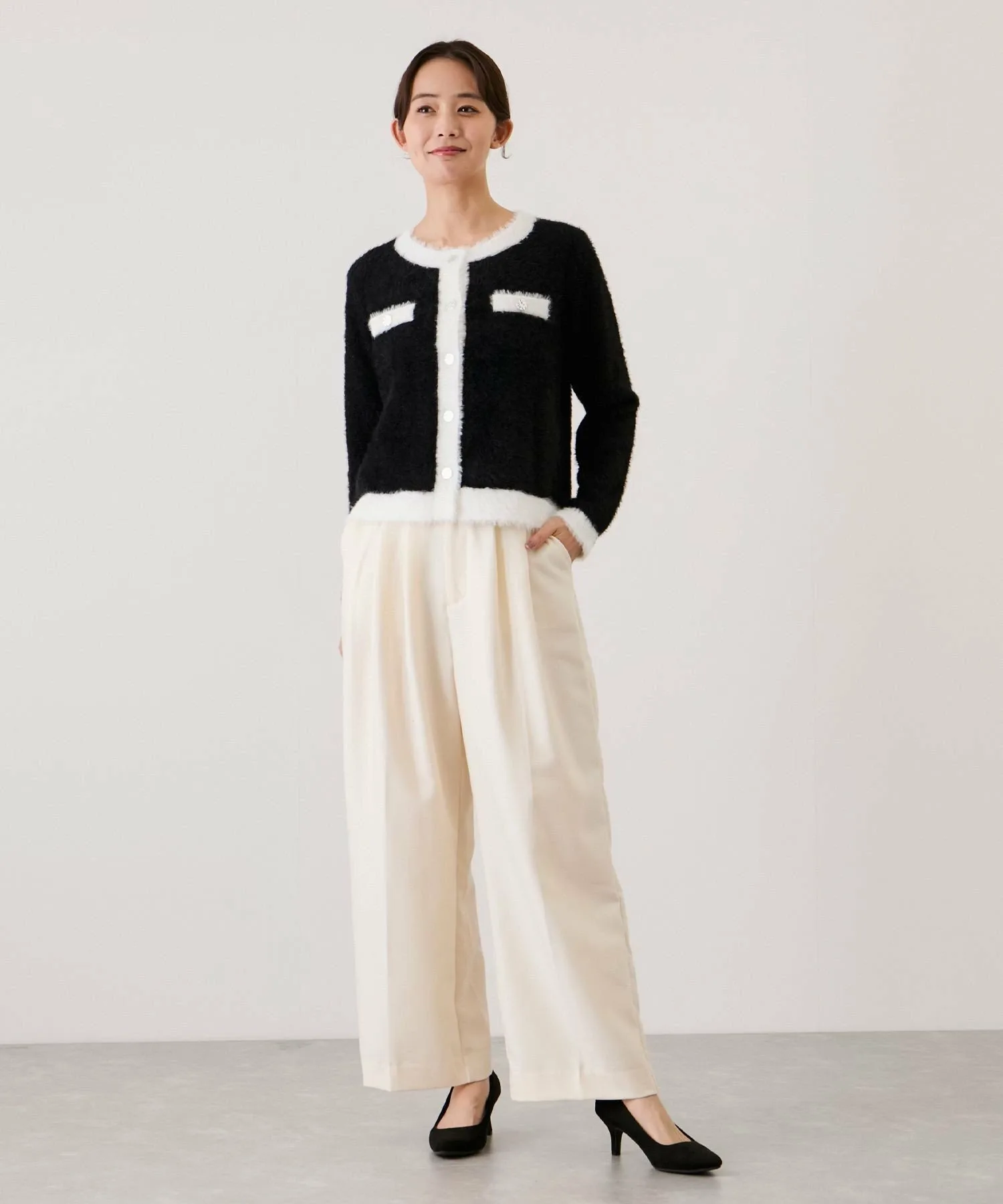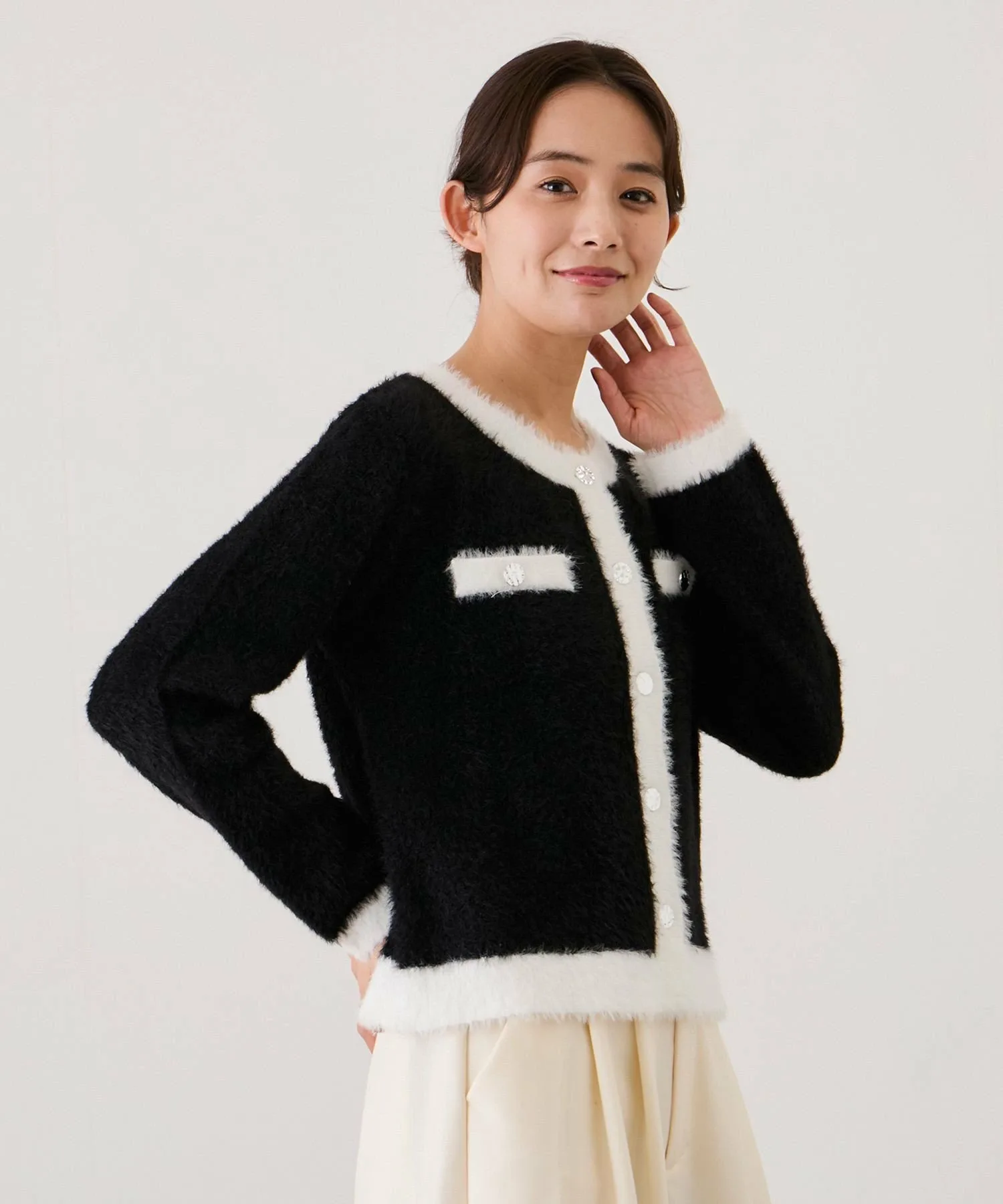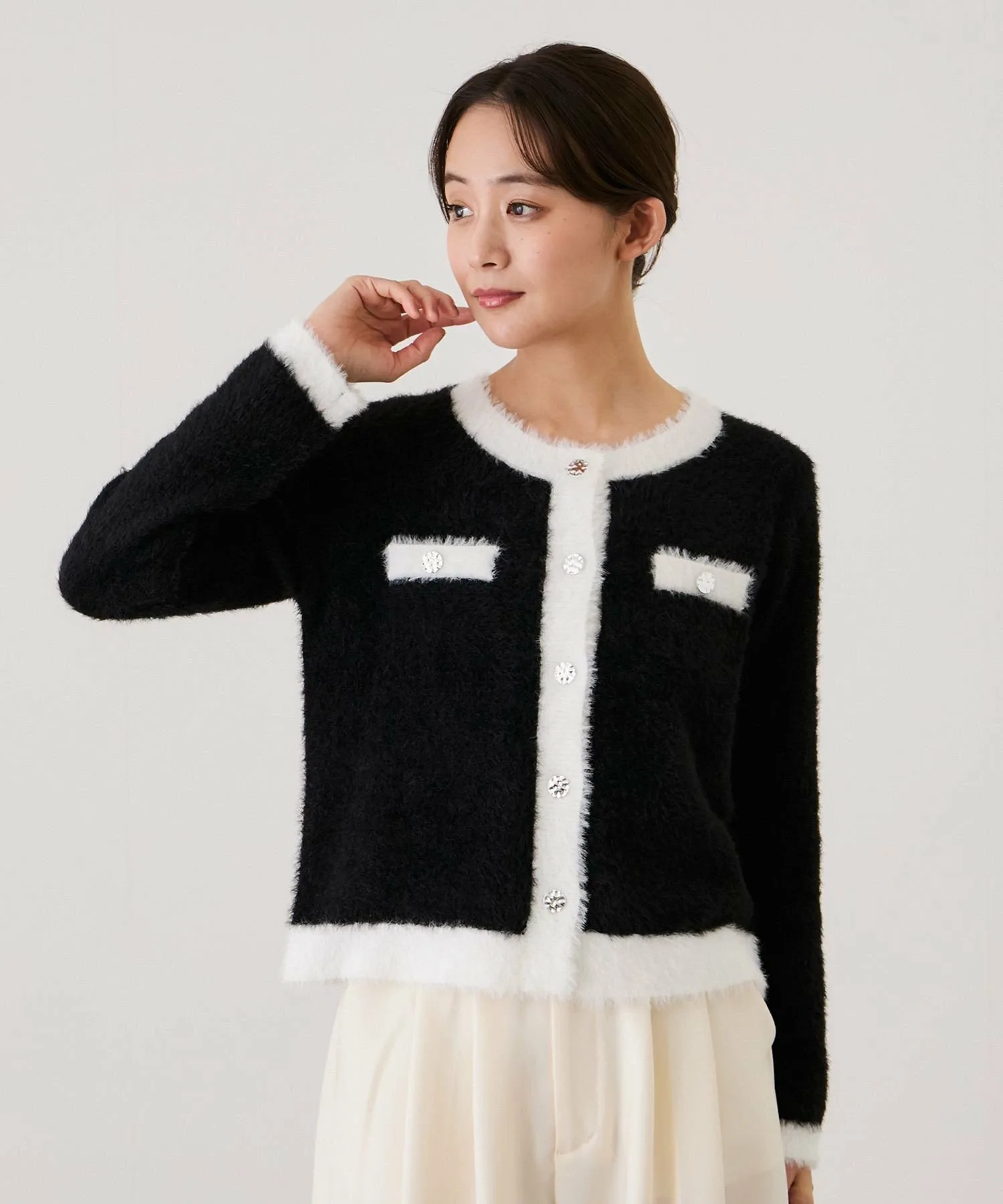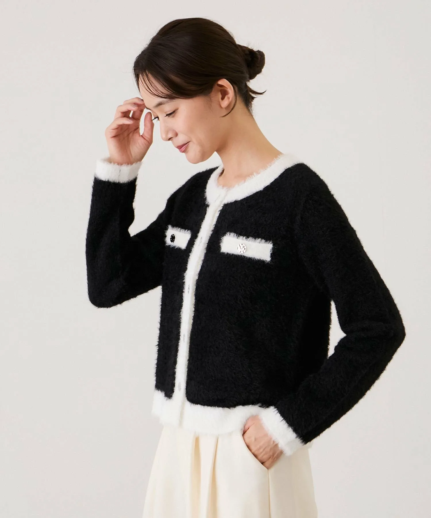 Великолепный двухцветный кардиган из пушистой вязки для взрослых [Дизайн/Силуэт]