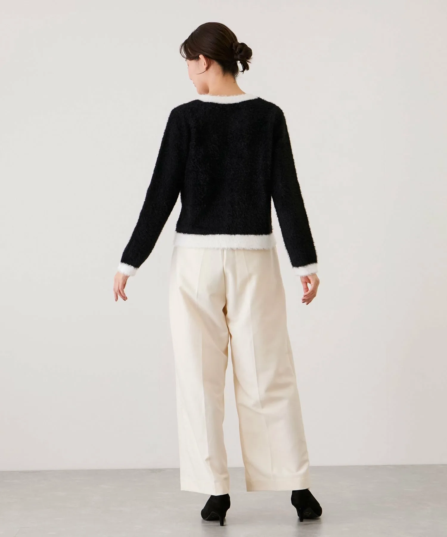 - Пушистая, длинноворсовая вязка создает теплый сезонный образ.