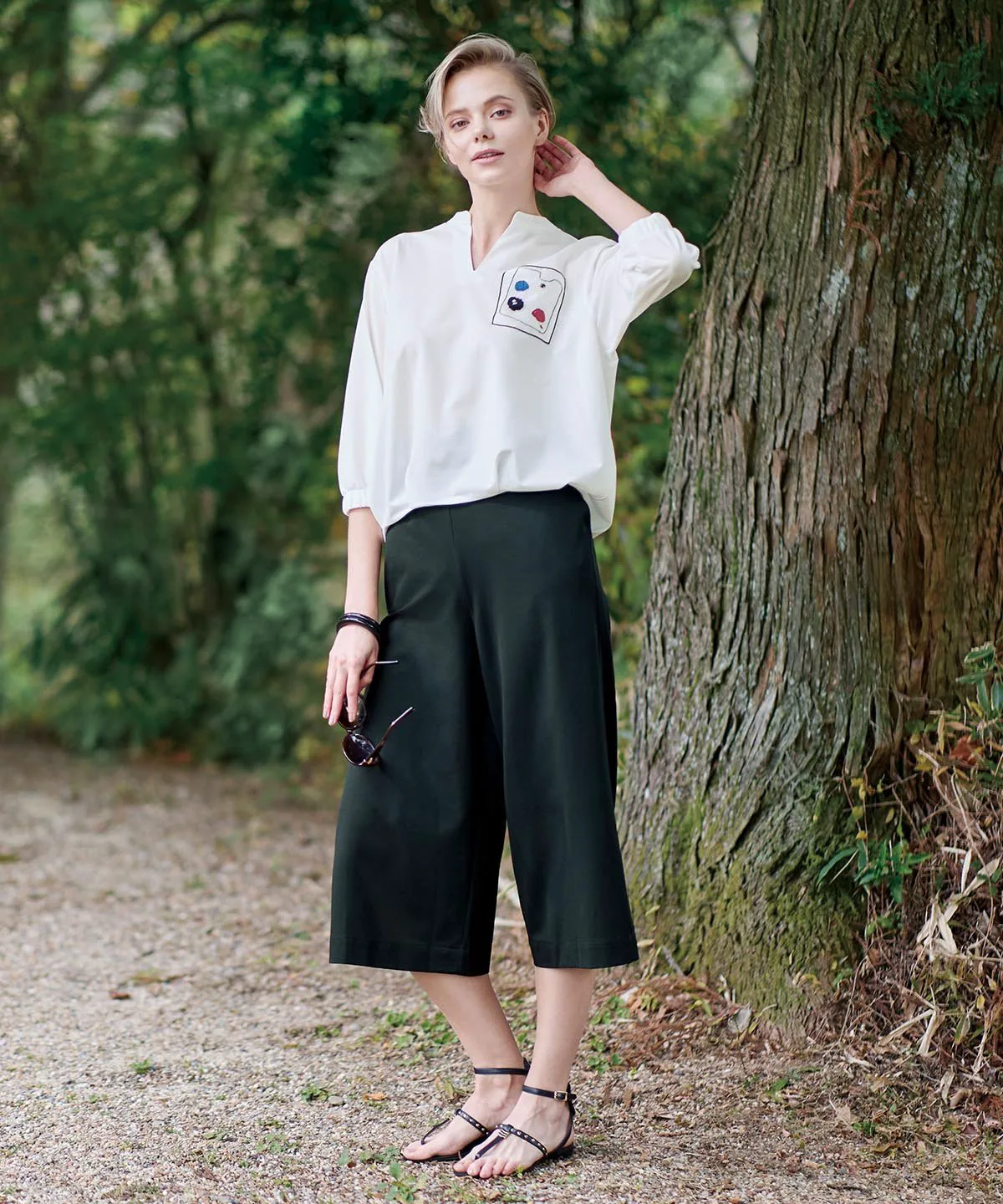 Широкие брюки длиной три четверти из смесовой хлопковой ткани