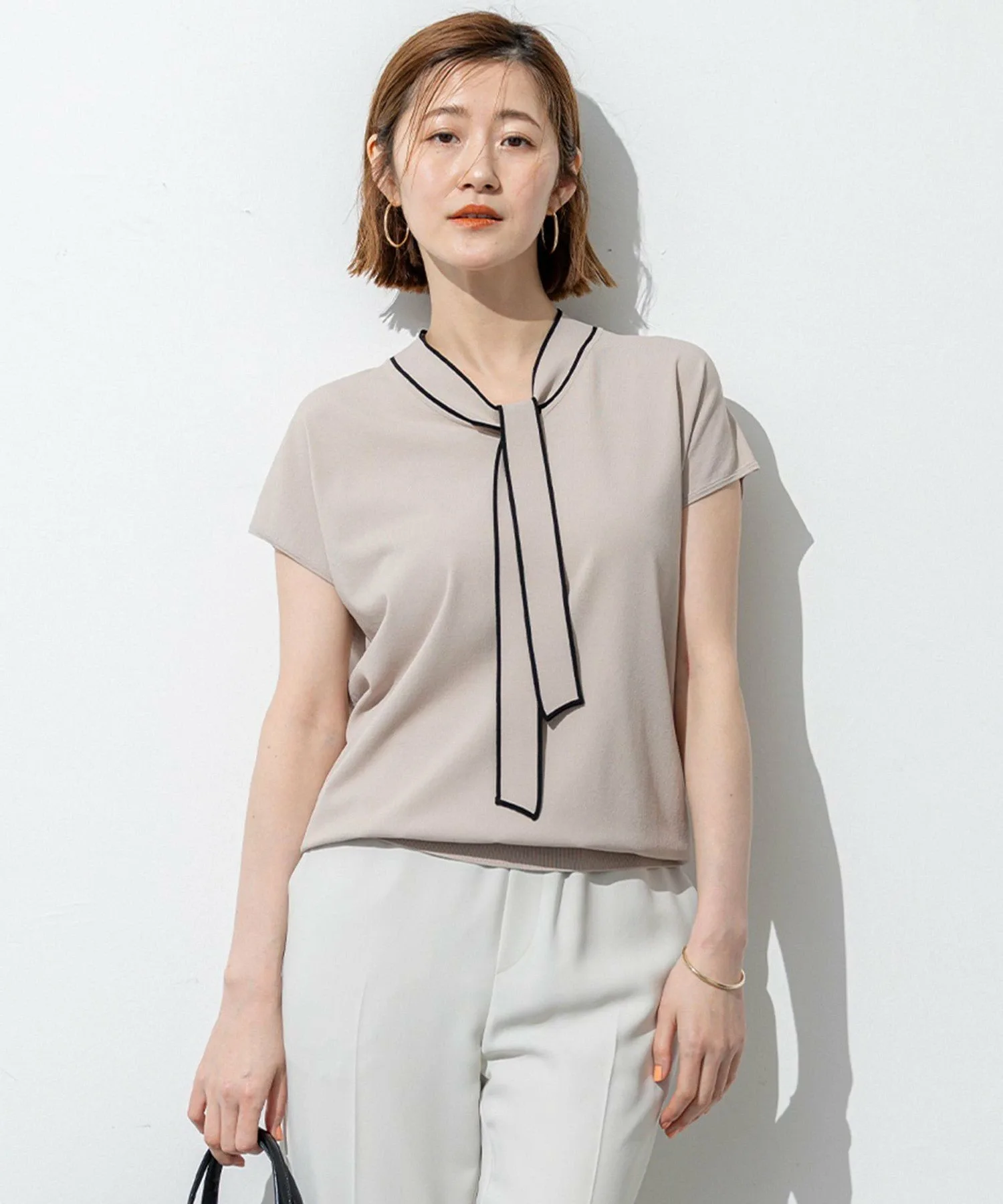 Стильный вязаный свитер с бантиком. Гладкая текстура материала делает его комфортным в носке даже в летнюю жару. Он практически непрозрачен, поэтому вы можете носить его, не беспокоясь о необходимости надевать майку. Рукава также обеспечивают достаточную защиту верхней части рук, что делает этот универсальный пуловер идеальным для офиса. Доступен в трех цветах: светло-серый (#003), базовый черный (#005) и мягкий бежевый (#033).