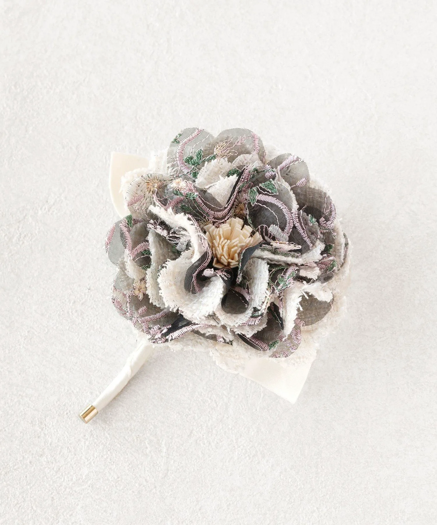 *Эта брошь изготовлена очень деликатно, поэтому ткань на лепестках и кончиках листьев может постепенно отслаиваться по мере использования. Мы надеемся, что вам понравится это как естественное изменение текстуры, обусловленное особенностями материала.