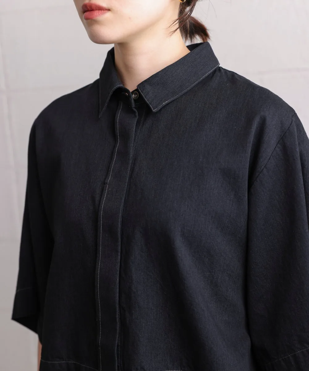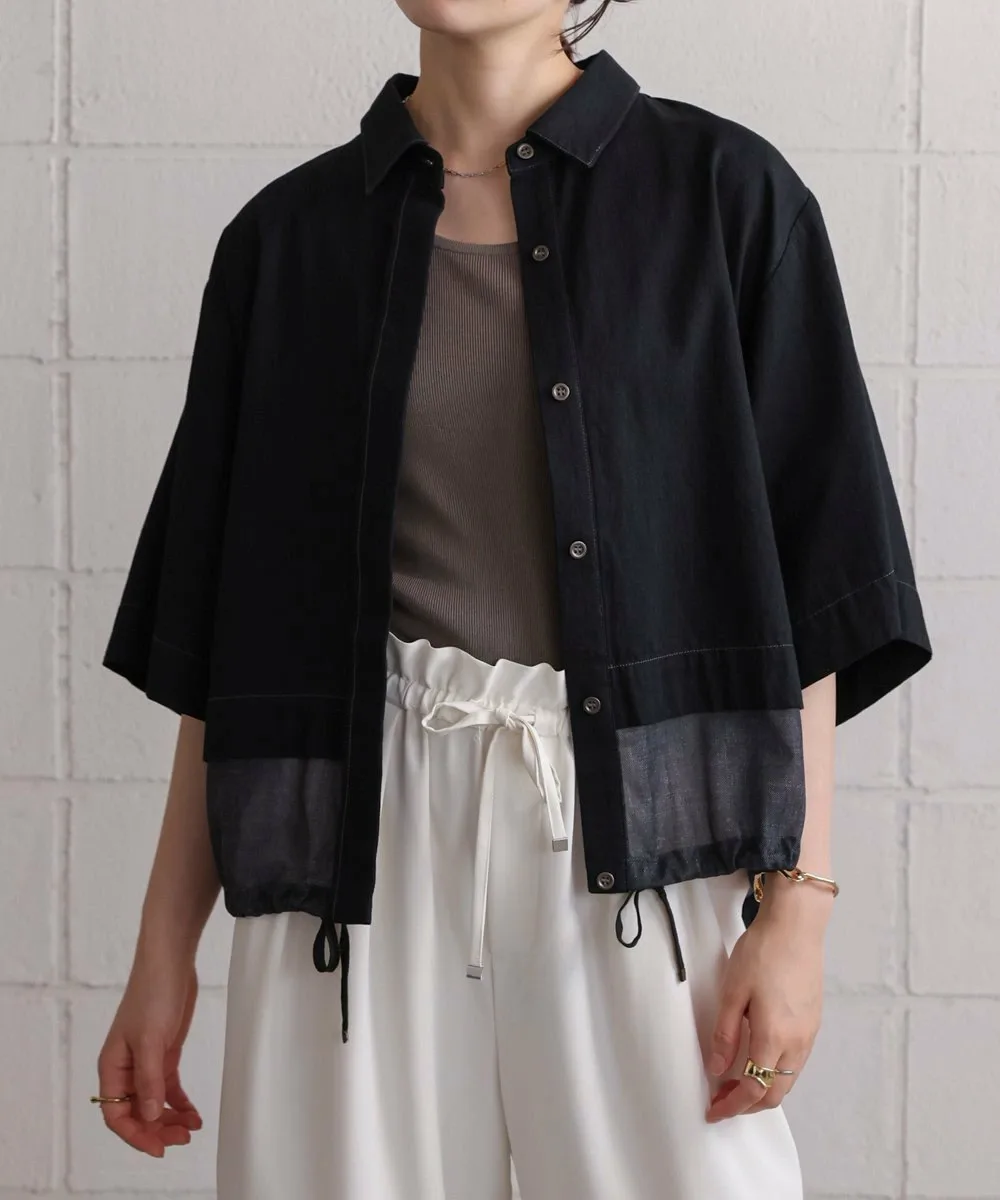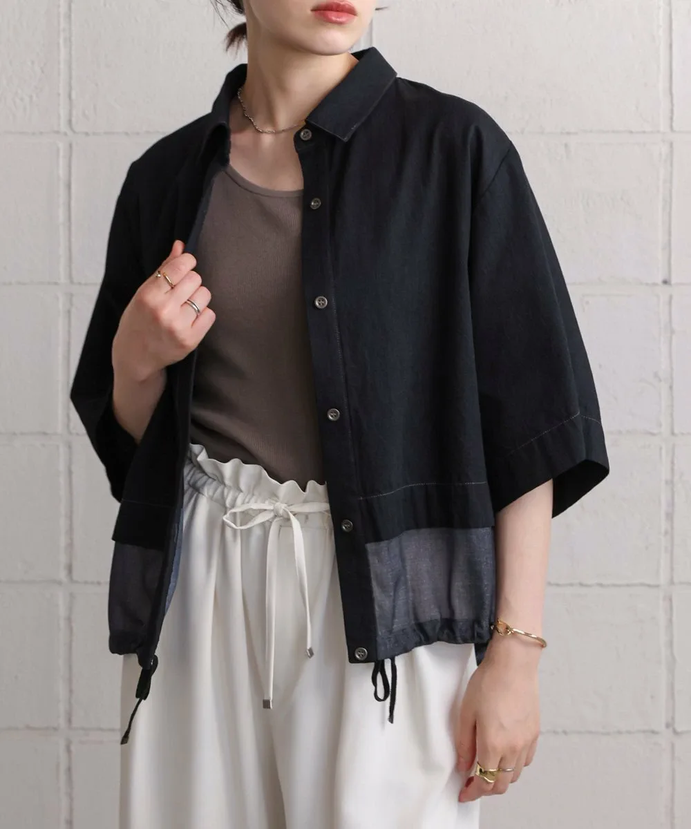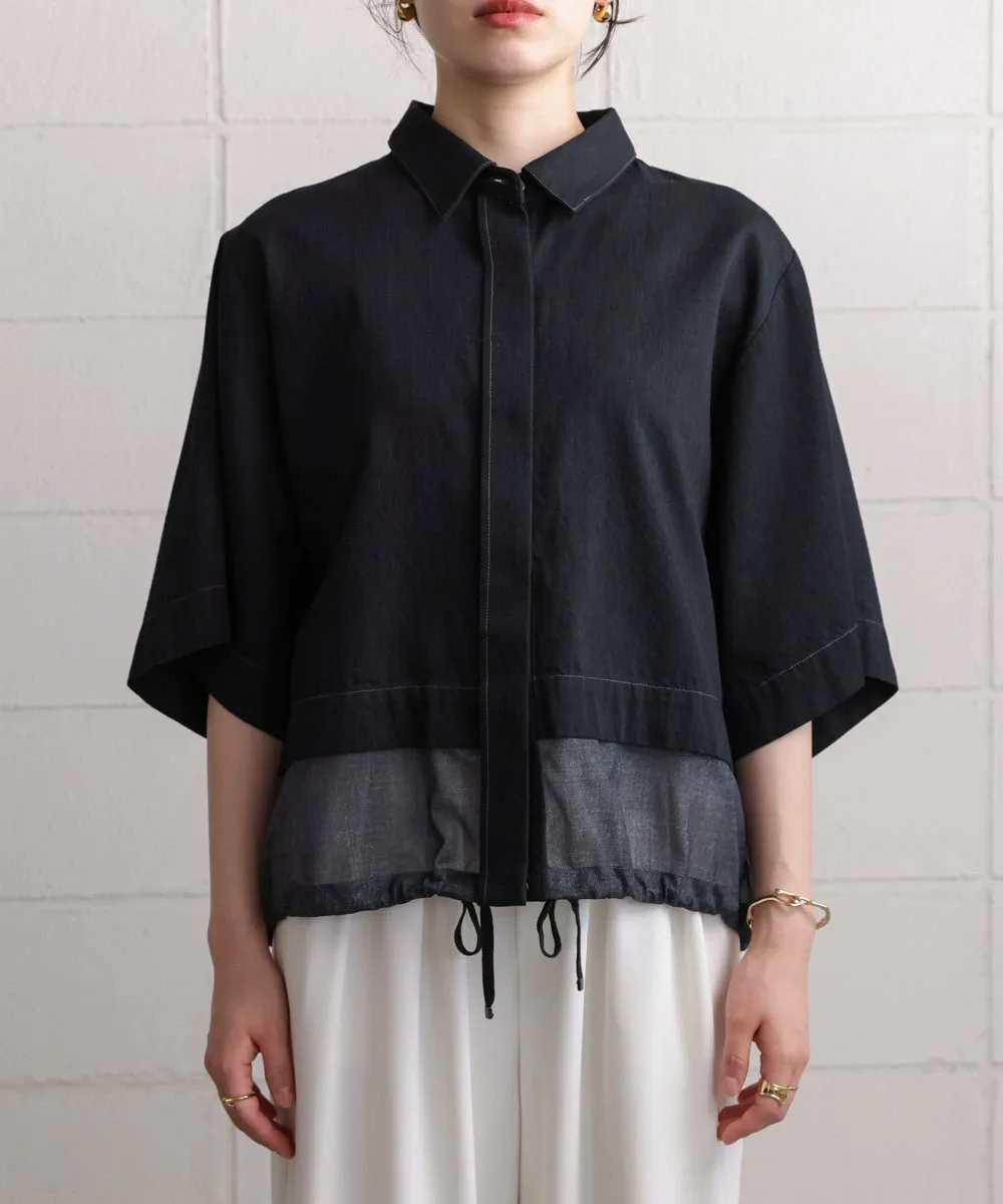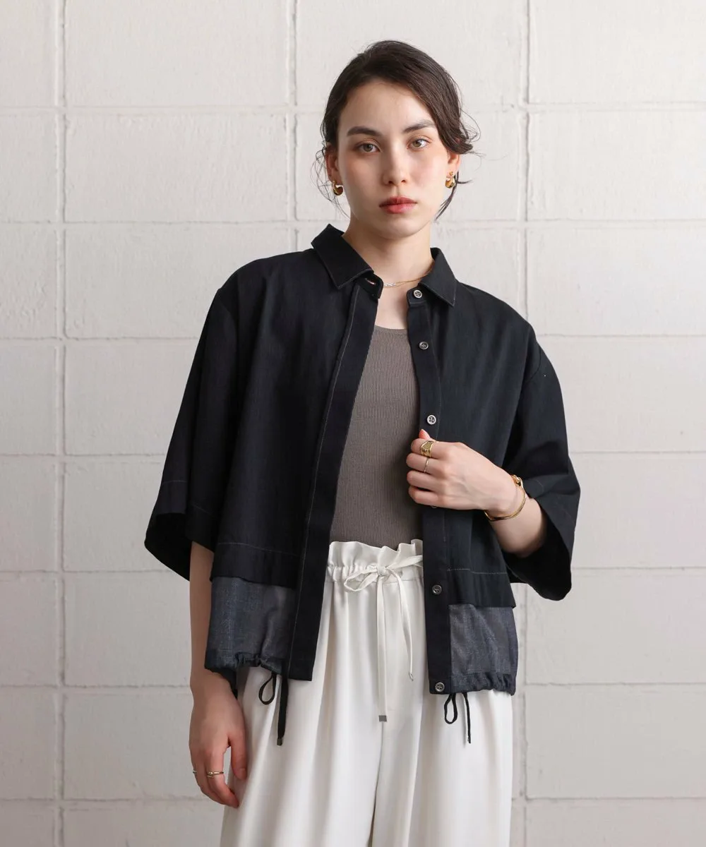 POINTЭта универсальная рубашка выполнена из джинсовой ткани плотностью 6 унций с принтом под джинсовую ткань, что позволяет вам персонализировать свой образ, затянув низ или нося ее как куртку! Эта джинсовая рубашка имеет верхнюю и нижнюю части и петлю для шнурка по низу, что придает ей спортивный вид. В зависимости от того, как вы заправите низ, ее можно укоротить, что делает ее универсальной вещью, которую можно носить как куртку. Заправленный низ выполнен из прозрачной джинсовой ткани, что подчеркивает ее объем и прозрачность. После производства обработана методом однократной стирки.