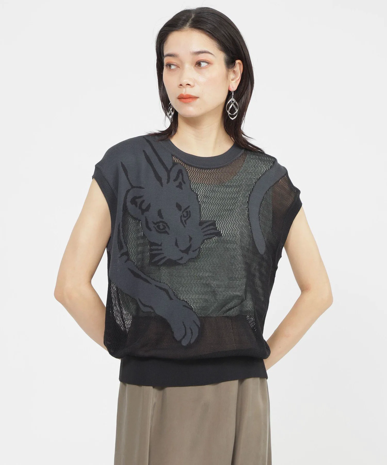 Эта трикотажная ткань с сетчатым узором украшена привлекательным рисунком черной пантеры, выполненным жаккардовым переплетением, что создает эффектный современный образ. Мы рекомендуем носить ее как нижний слой, например, с майкой или футболкой. Эта летняя трикотажная ткань гладкая и комфортная, что делает ее идеальной для лета.