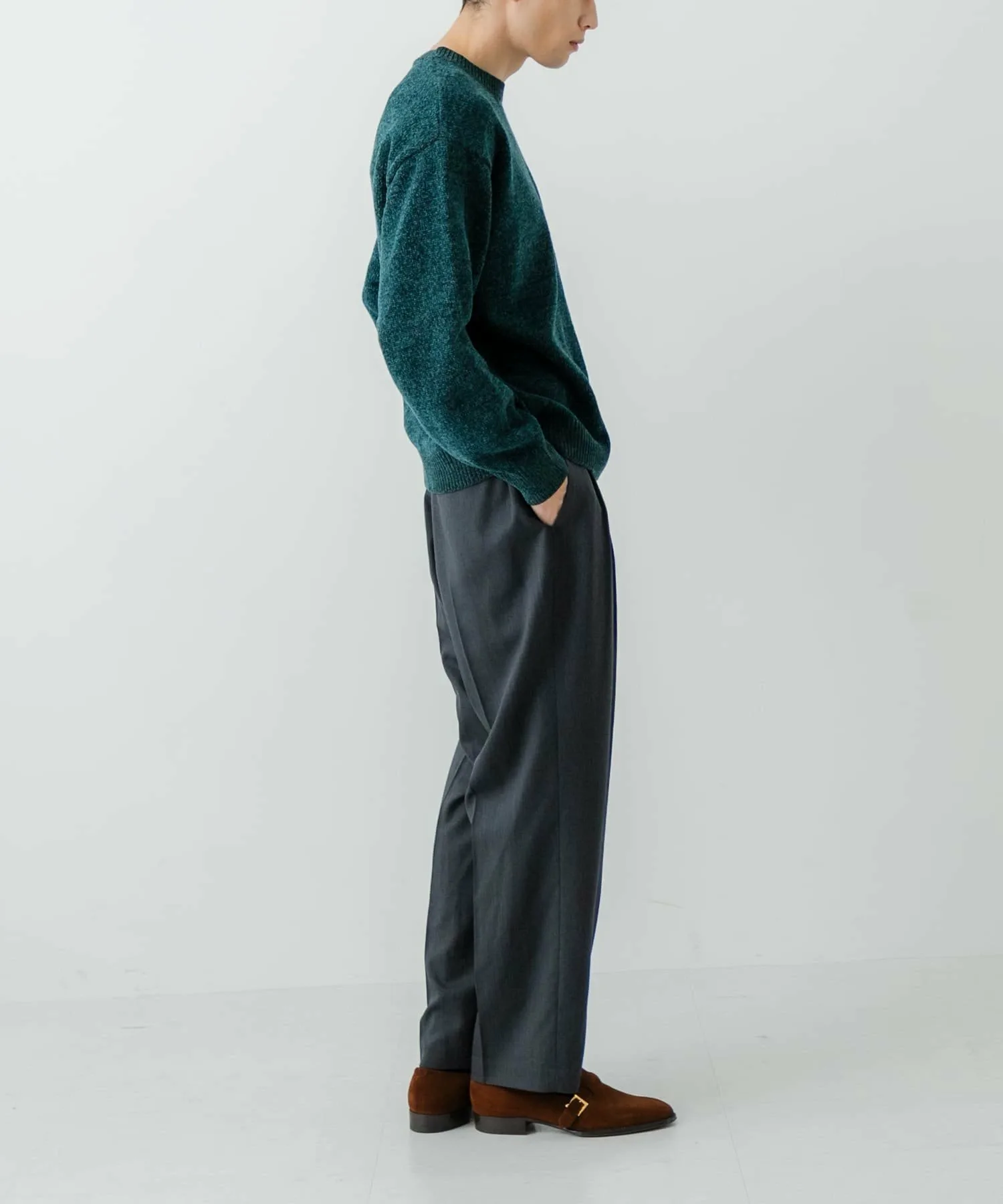 Несмотря на плотную, среднетяжелую текстуру, он также обладает уникальной для мохеровой пряжи мягкостью и не имеет жесткости, характерной для свитеров, поэтому его можно носить в повседневной жизни, как толстовку.