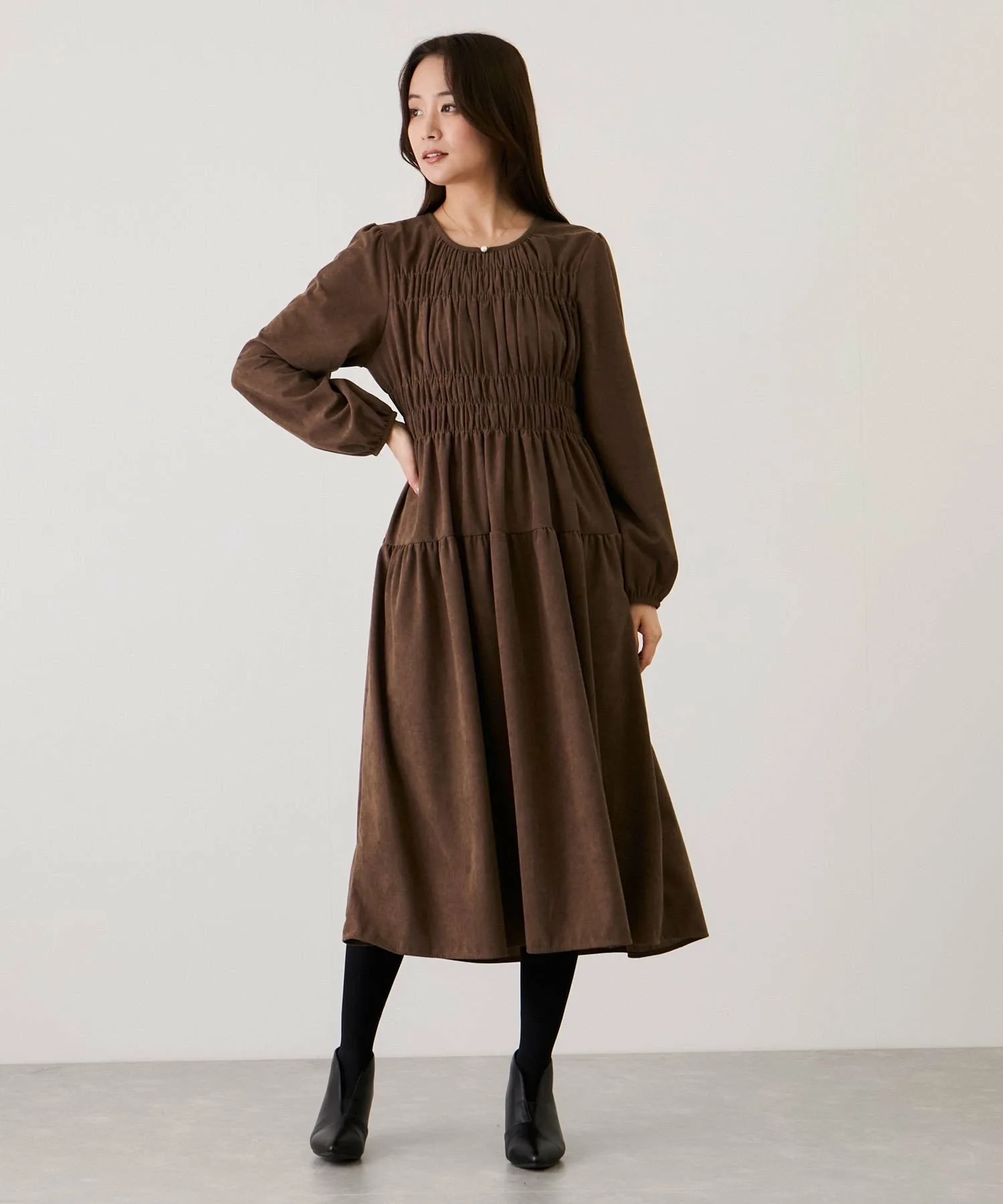 Платье со сборками, сочетающее в себе нежный и утонченный вид. Для взрослых. [Дизайн/Силуэт]