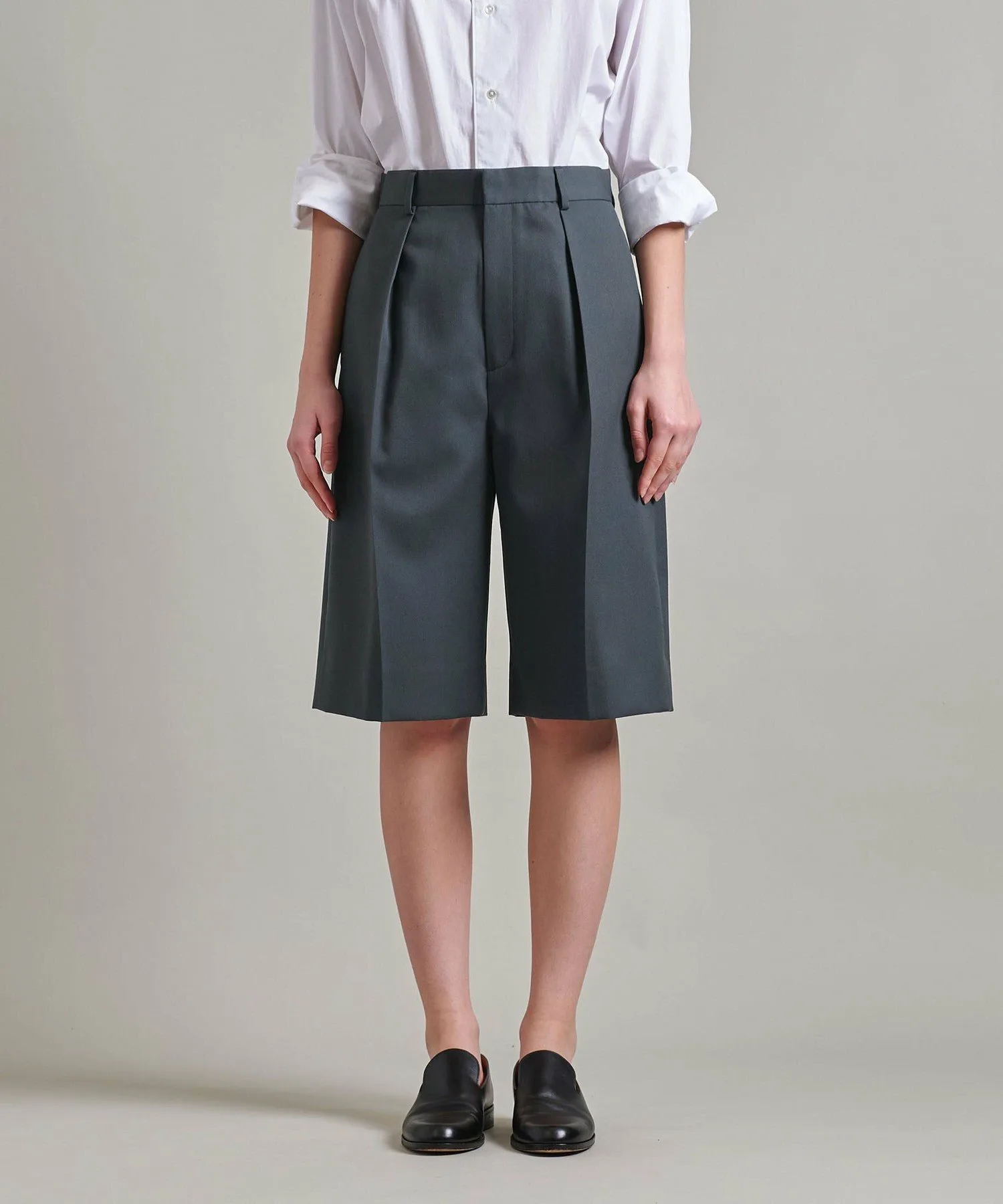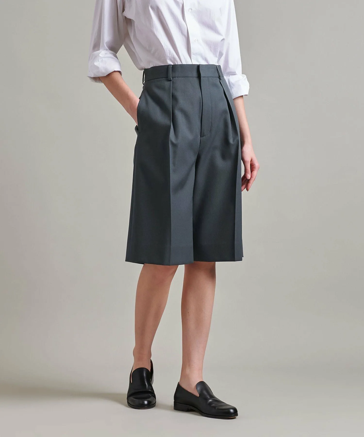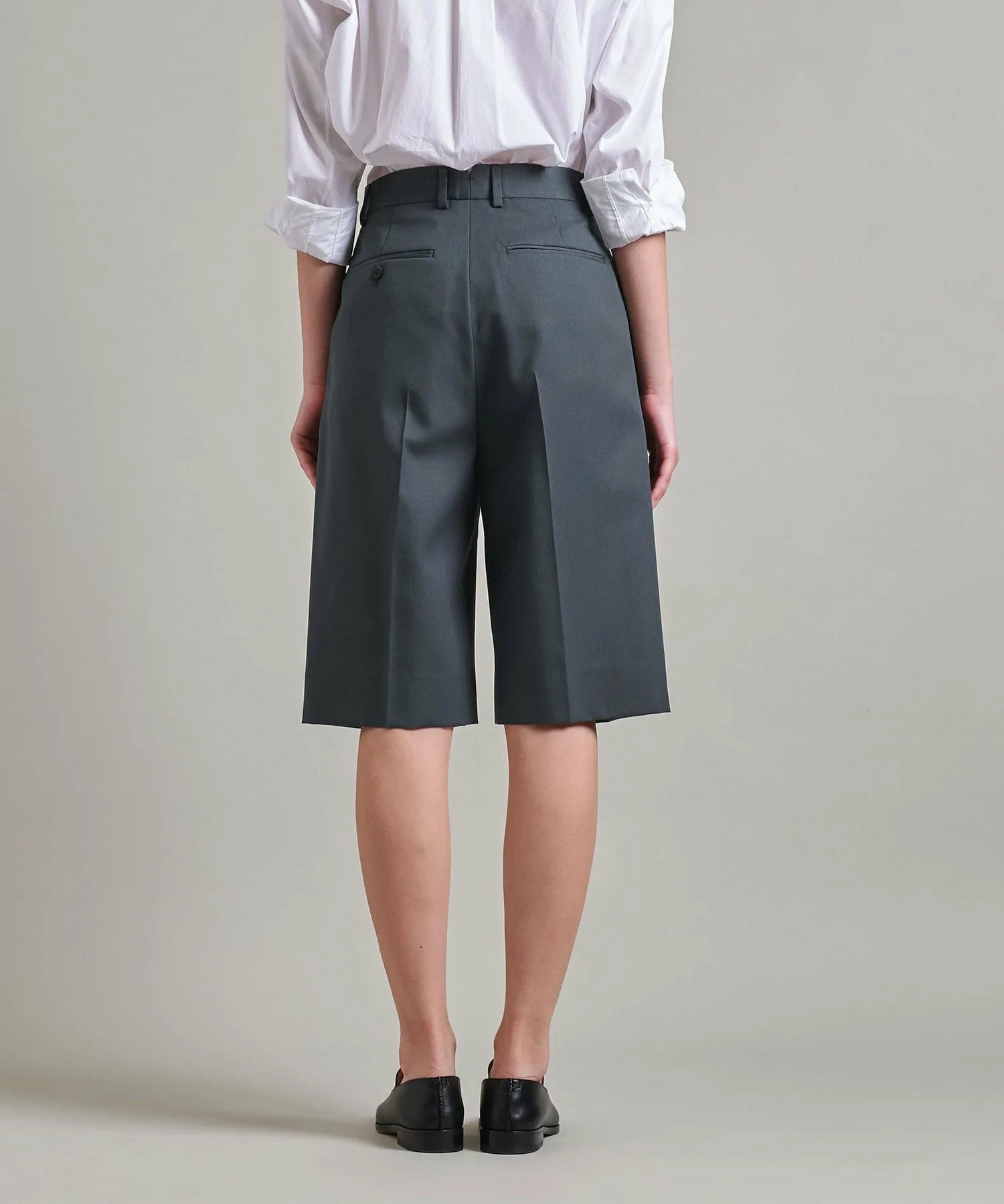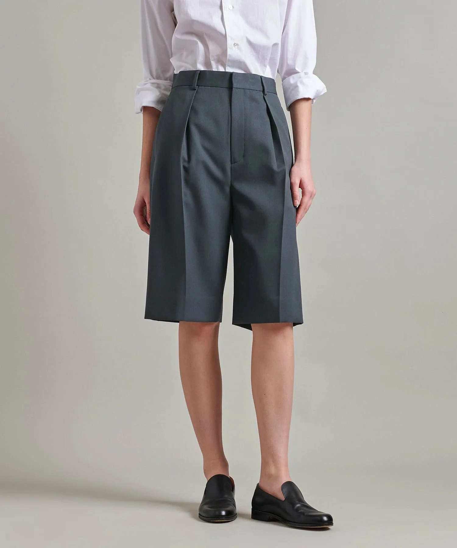 Эти бермуды имеют плотный, но четкий силуэт благодаря складкам.
