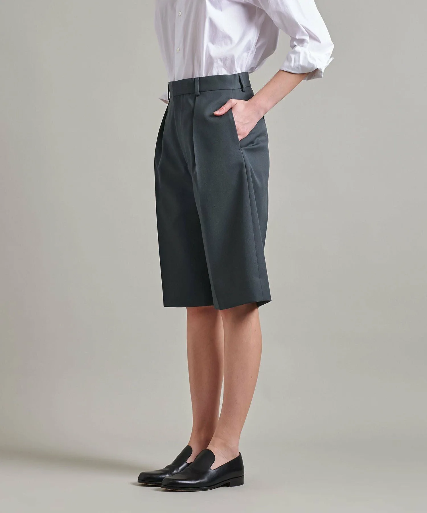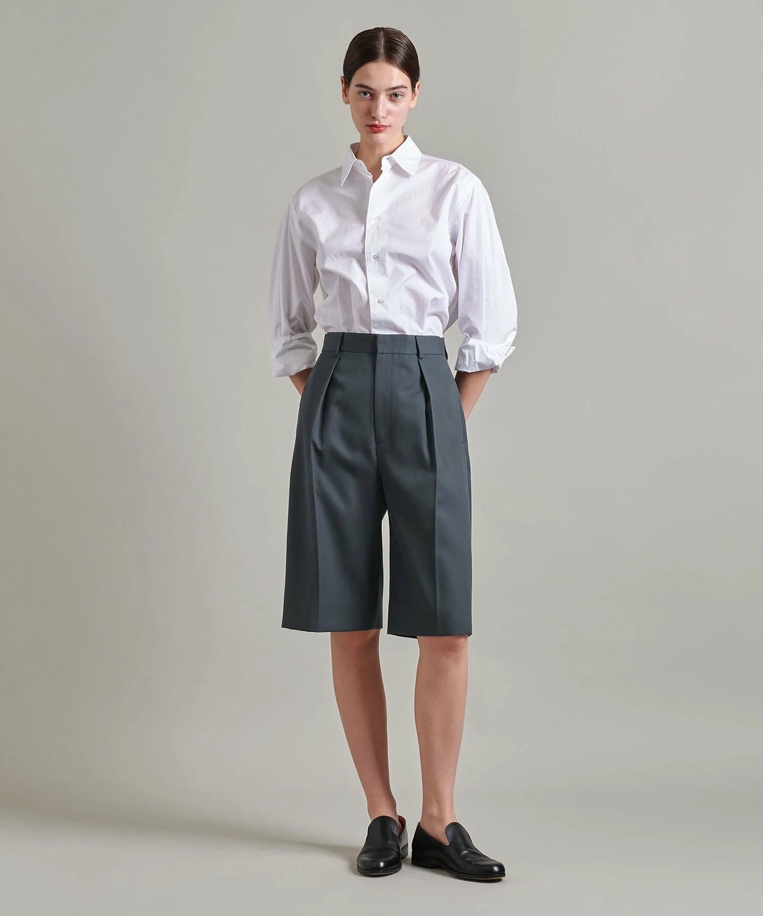 Эти шорты длиной до колена, выполненные в мальчишеском стиле, легко сочетаются с различными топами, расширяя ваши возможности для создания образов.