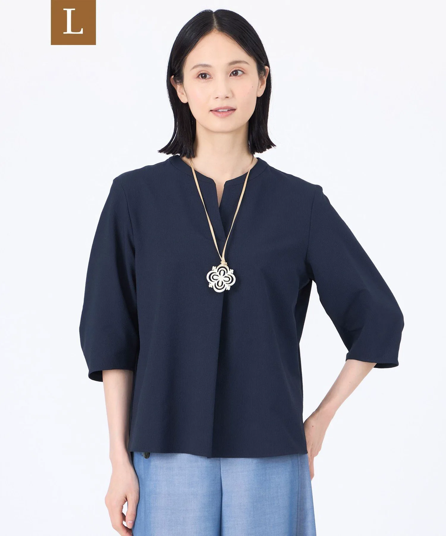 Эта блузка имеет вырез-«замочную скважину» и стильный открытый воротник.
