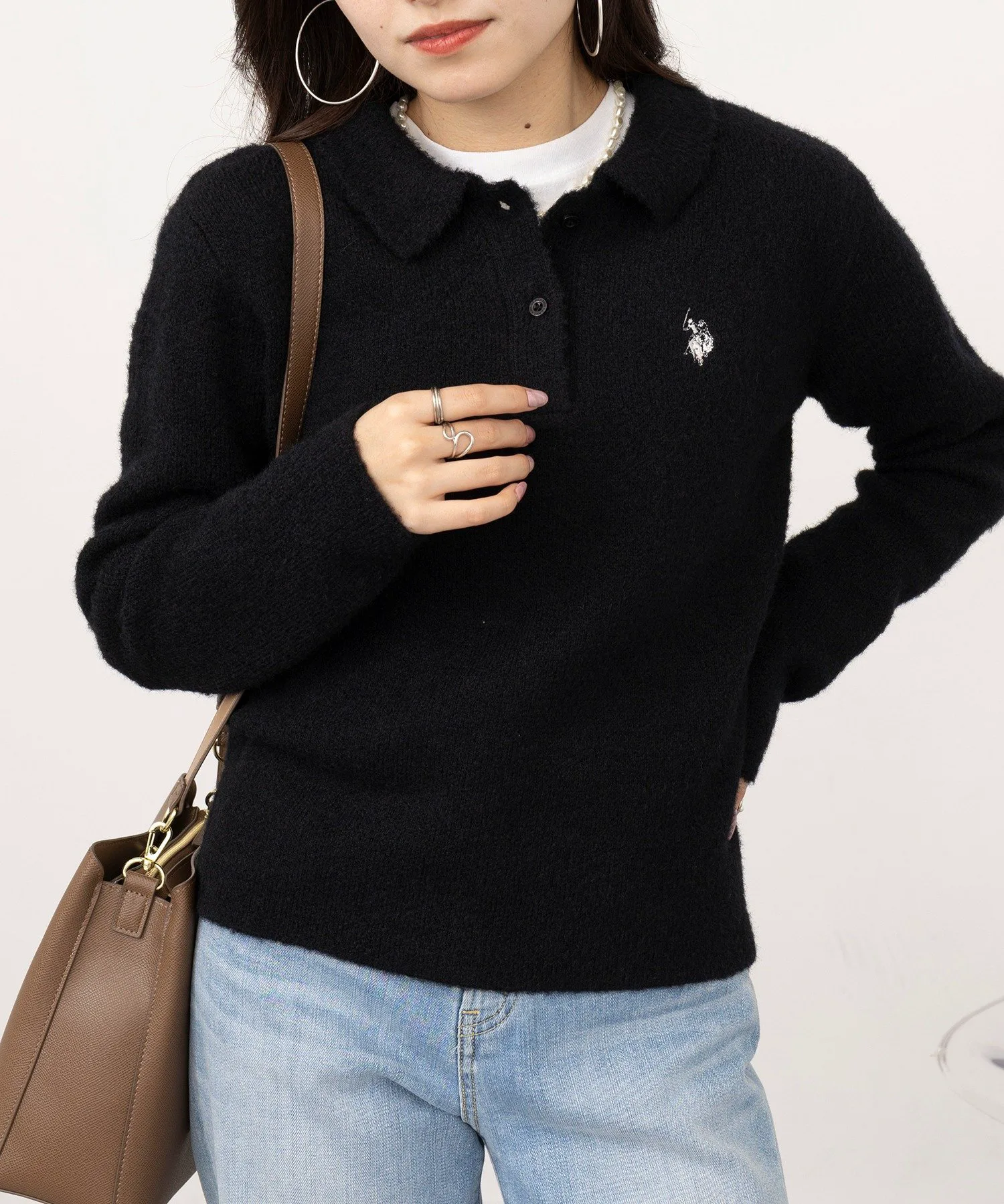 Подчеркните свой образ с помощью этого мягкого, ворсистого материалаВязаная рубашка-поло, которая отлично смотрится сама по себе