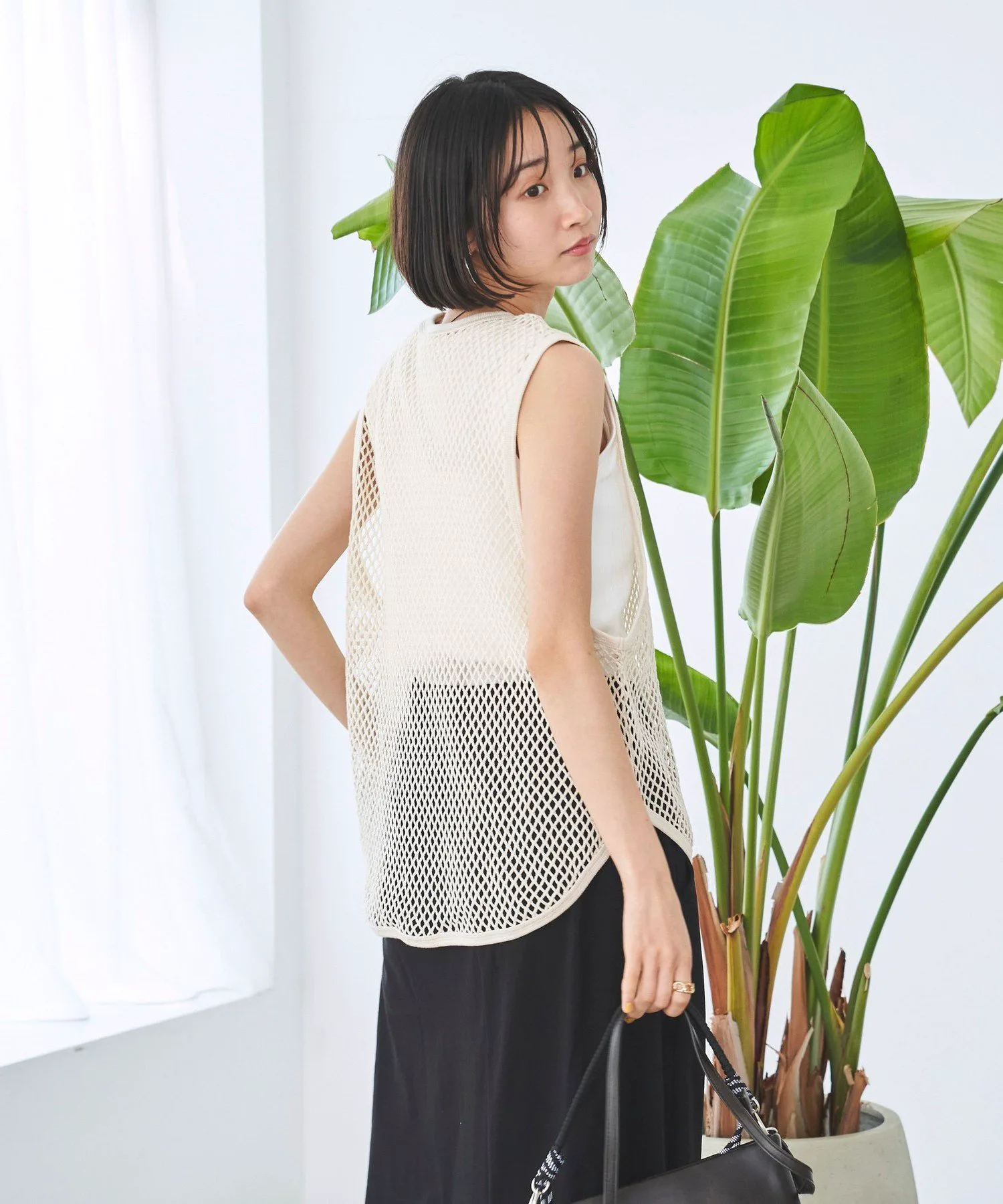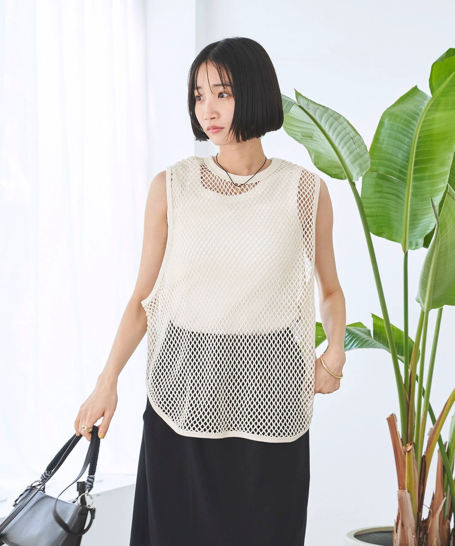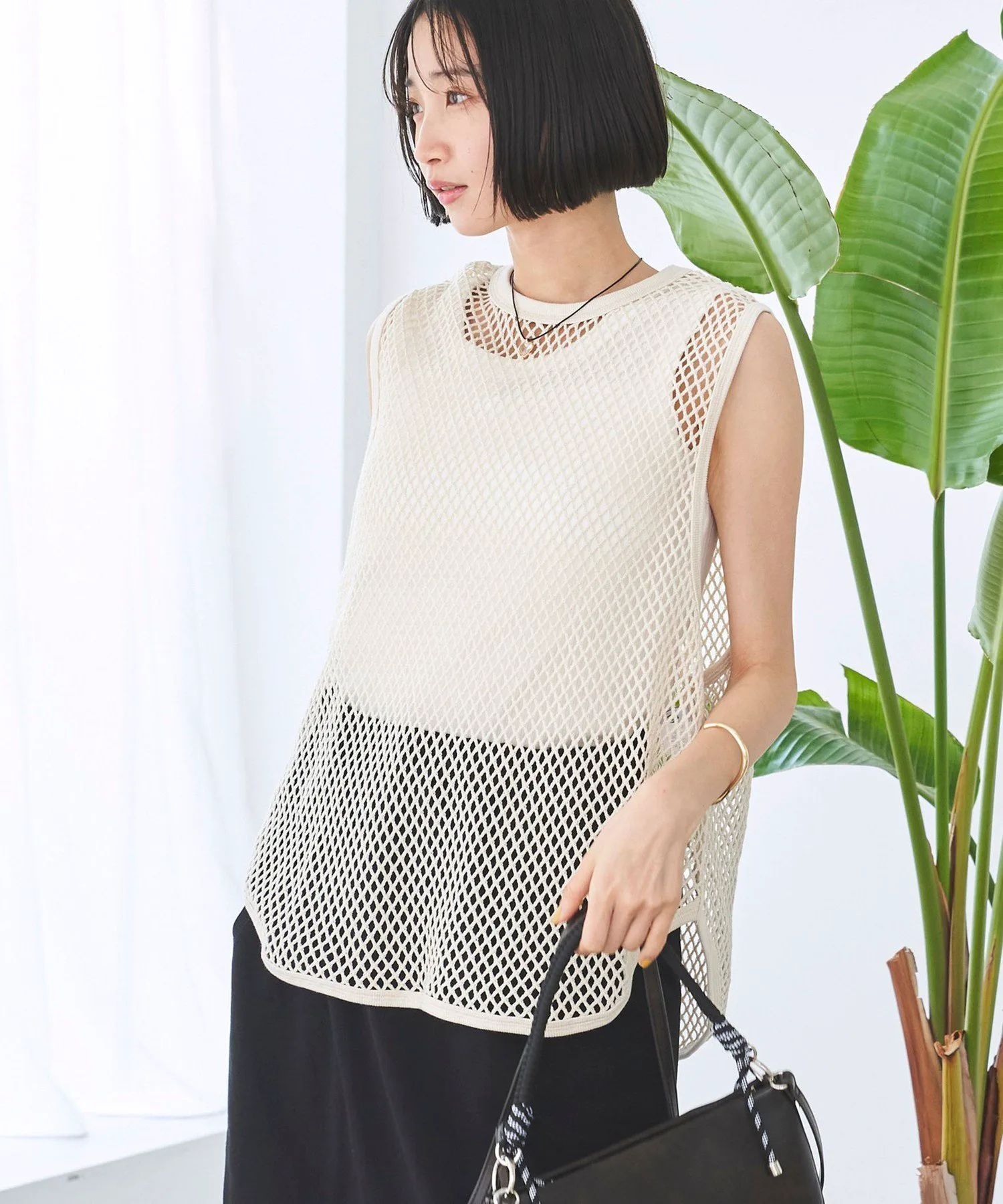 Пуловер без рукавов из прохладной сетчатой ткани.