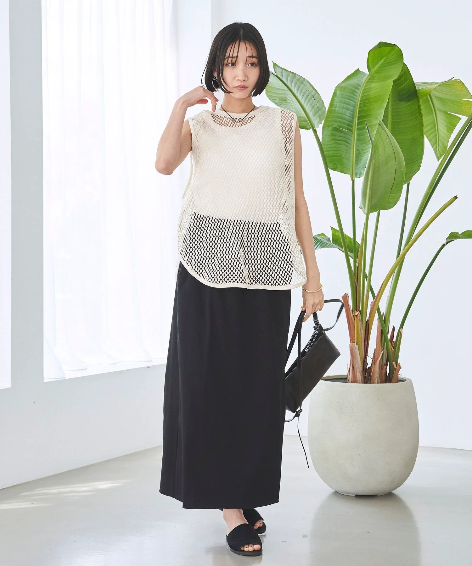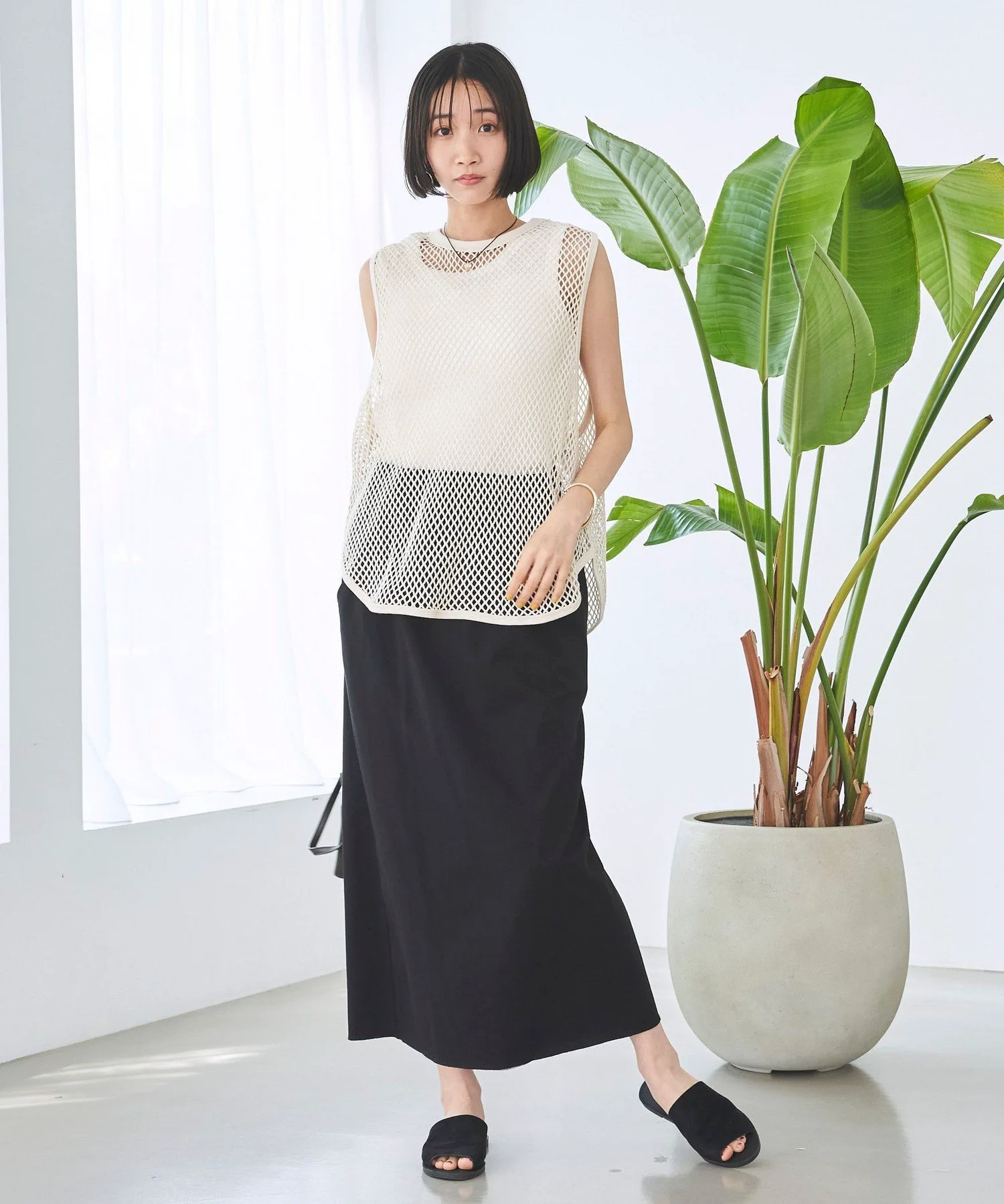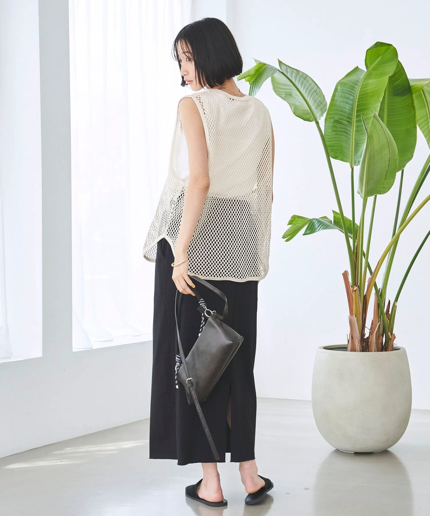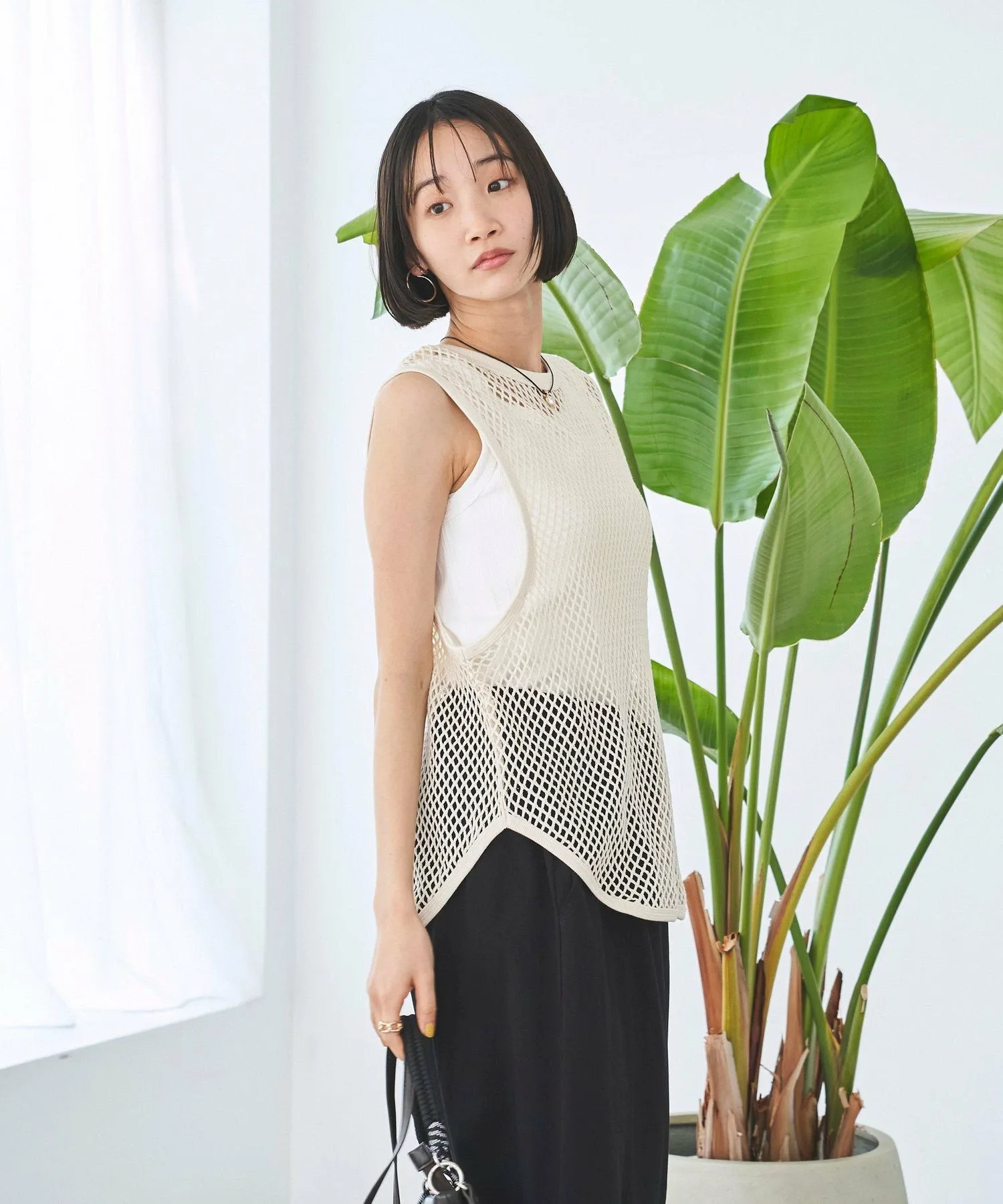 Пуловер без рукавов из прохладной сетчатой ткани.