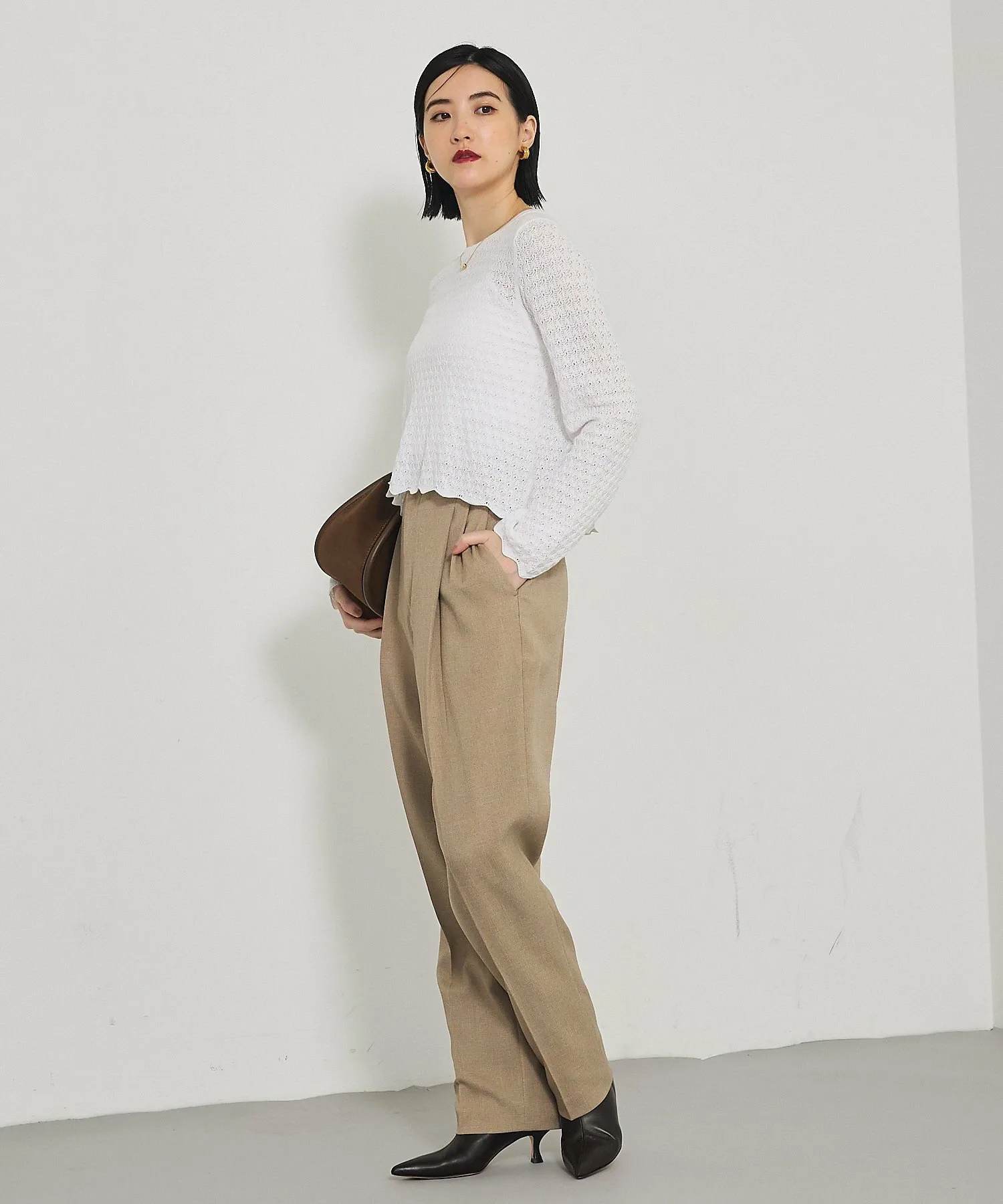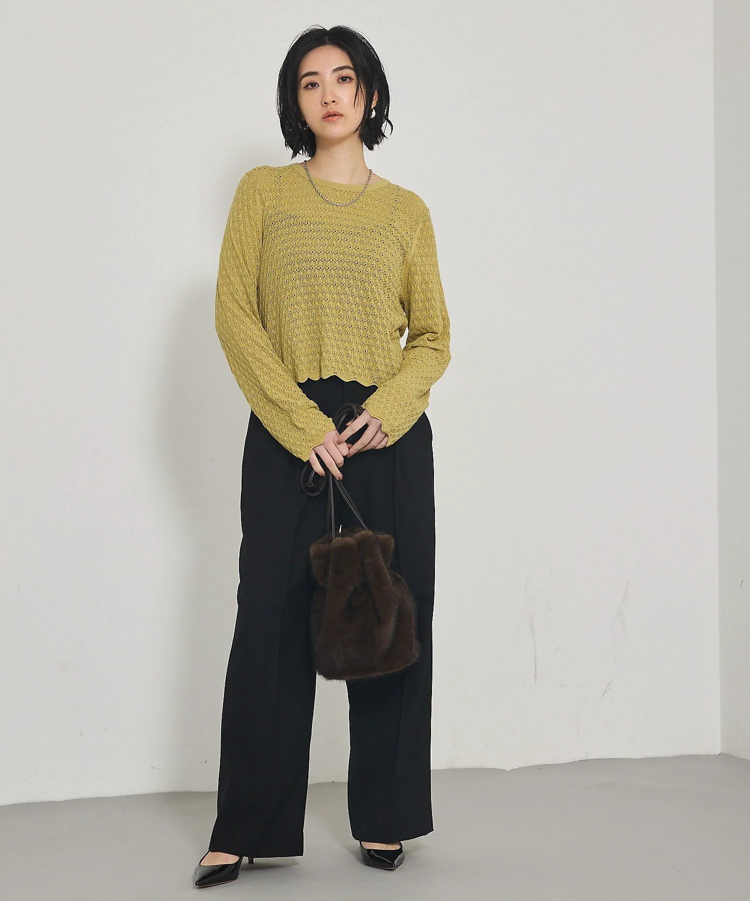 Немного укороченная длина хорошо сочетается с широкими брюками.