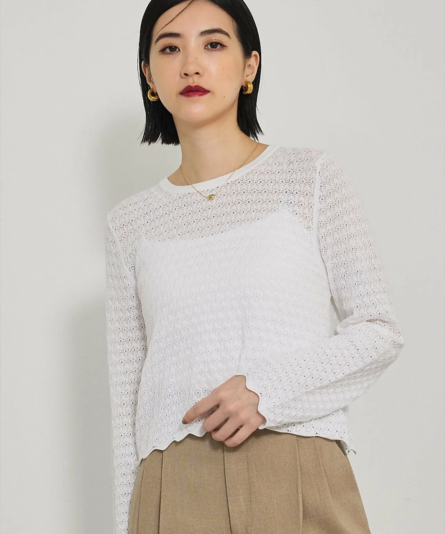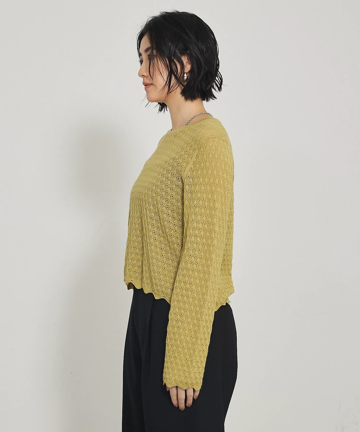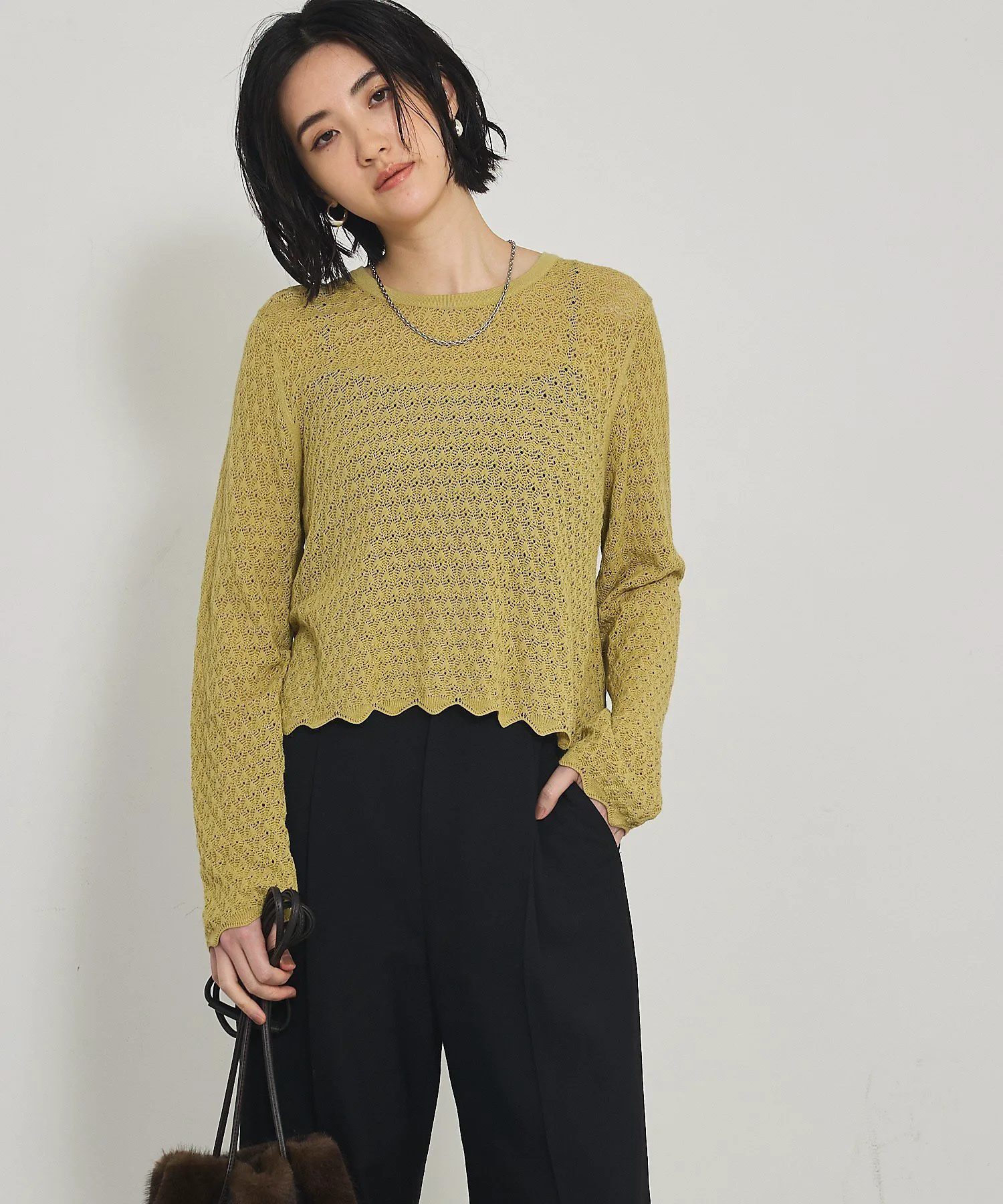 Ажурный узор и кружевная вязка с фестончатым краем создают женственный образ.