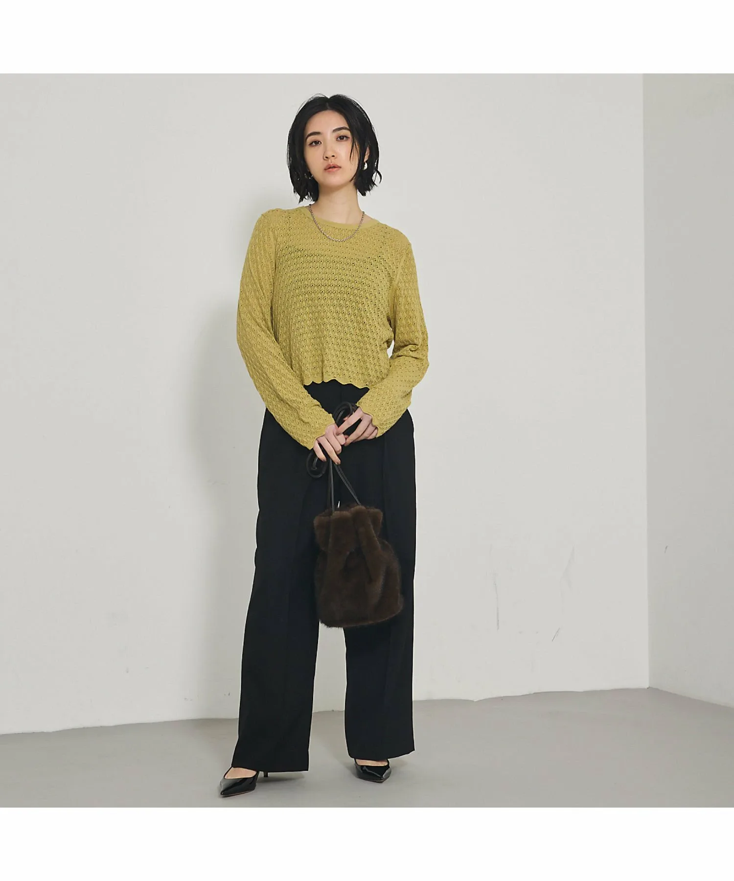 Немного укороченная длина хорошо сочетается с широкими брюками.