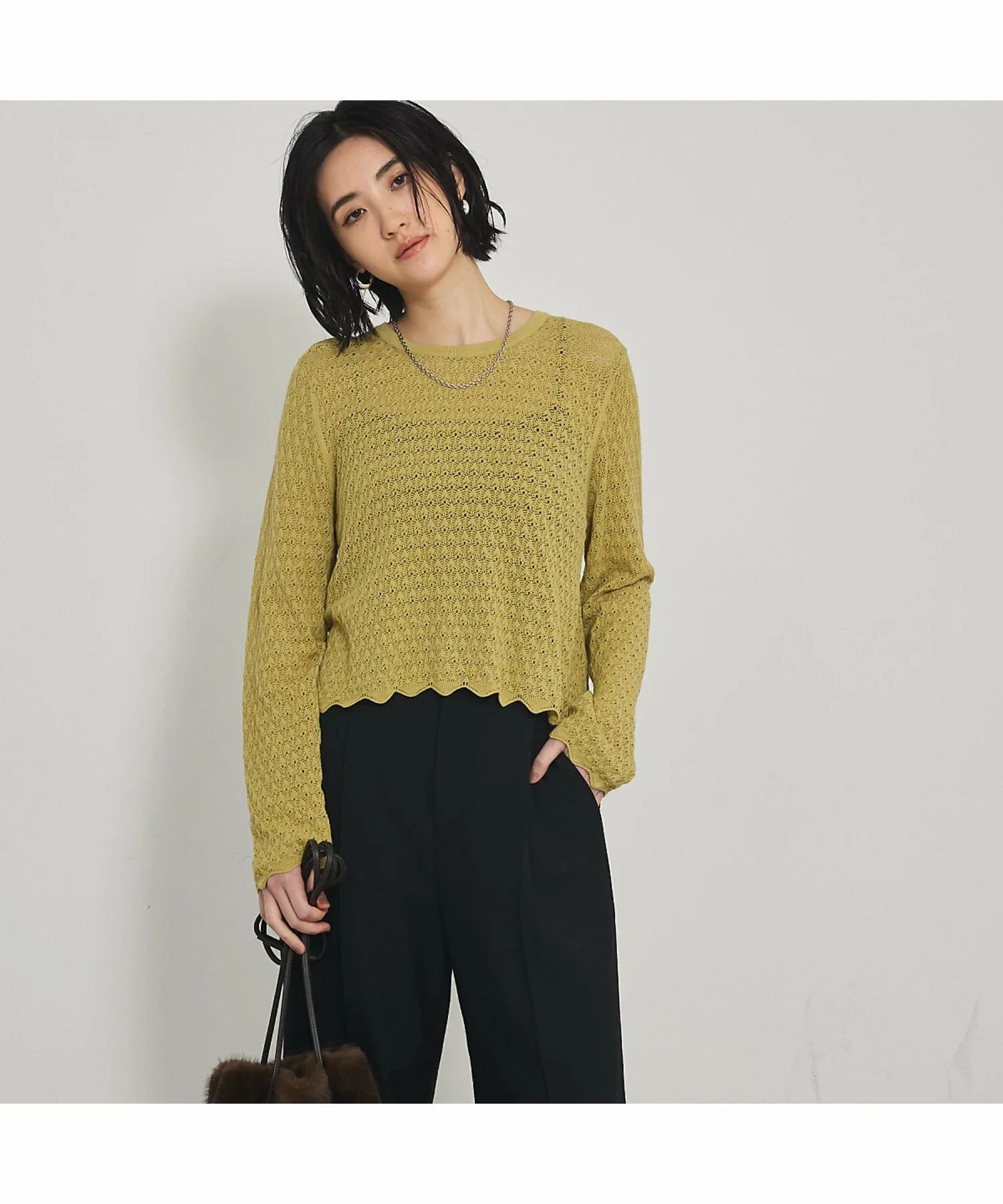 Ажурный узор и кружевная вязка с фестончатым краем создают женственный образ.